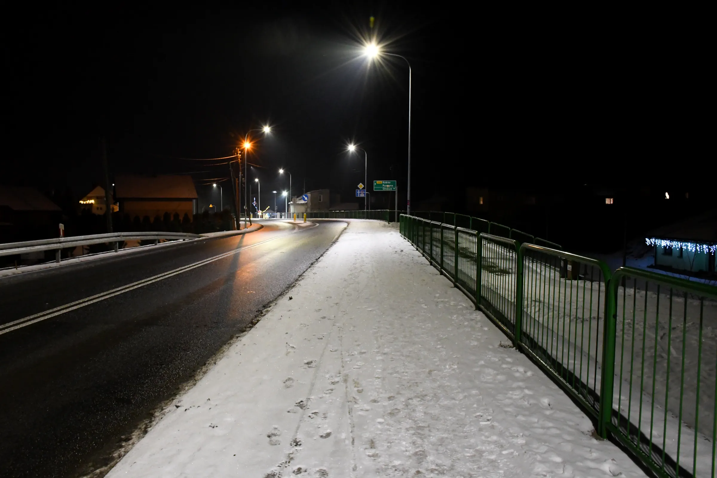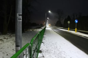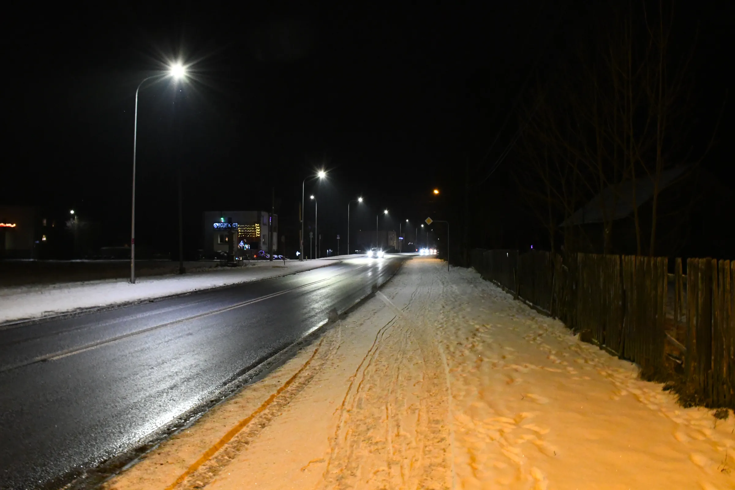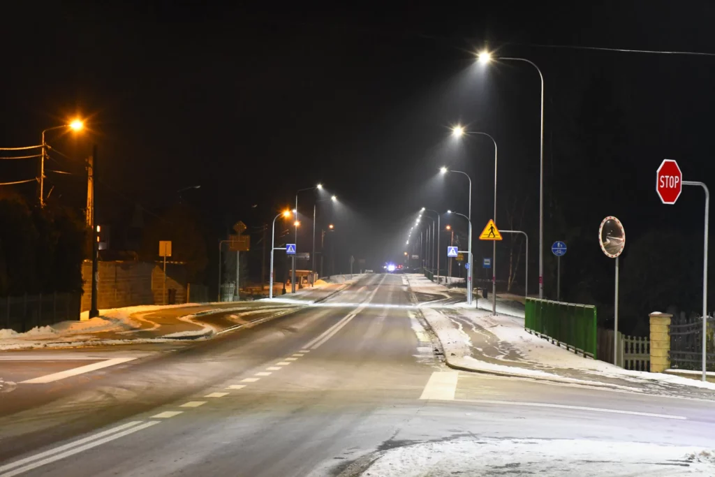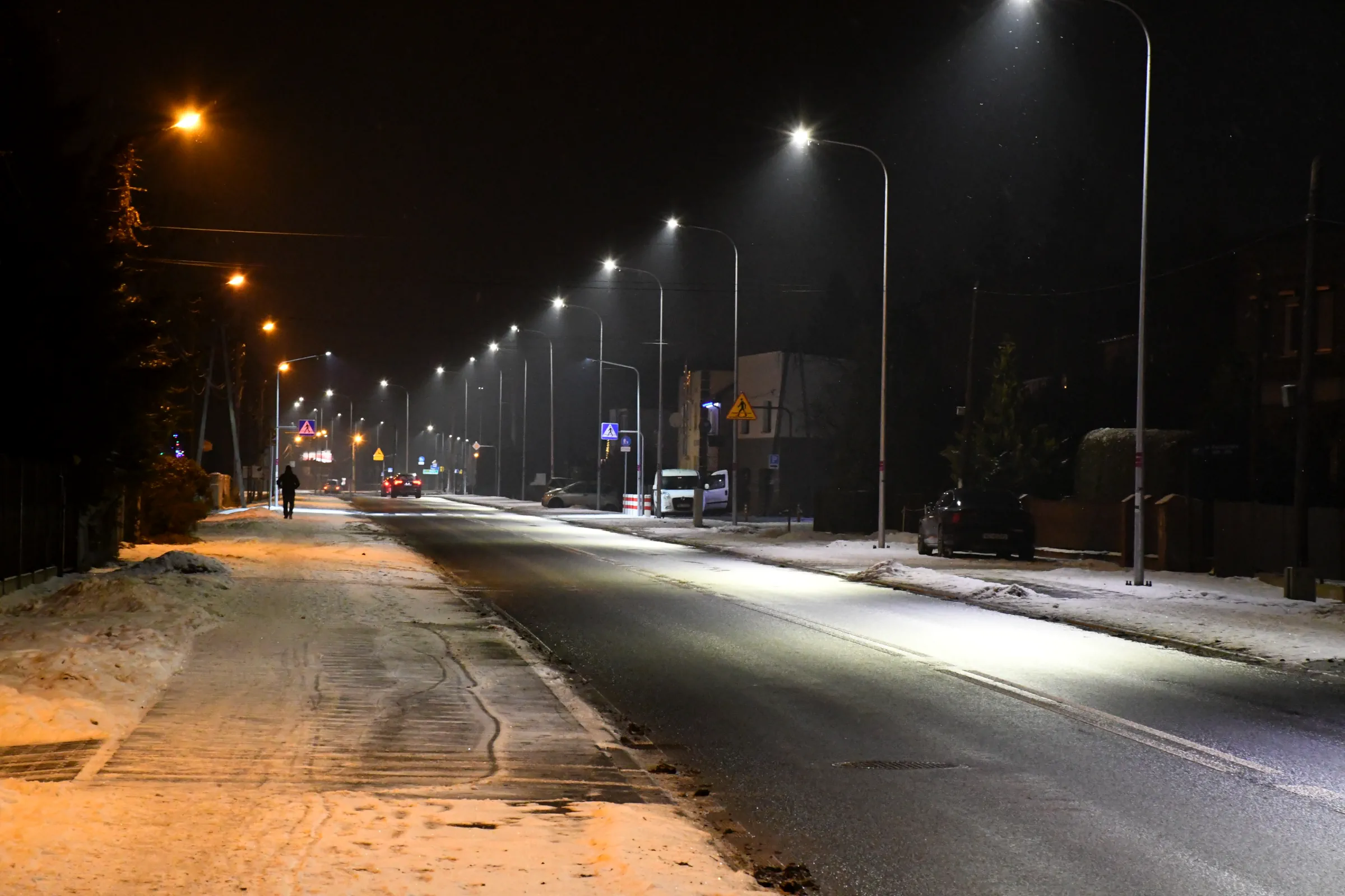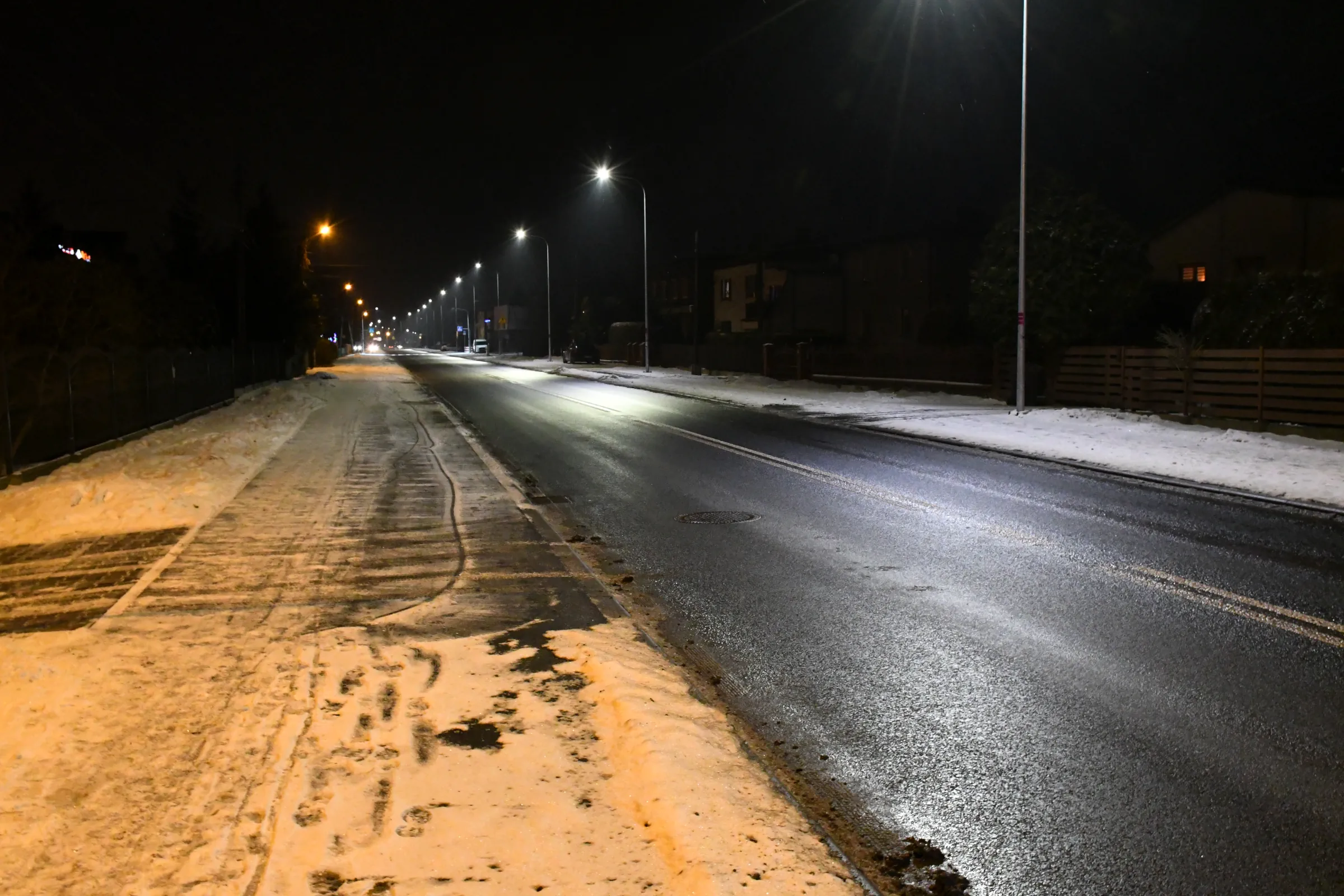 Obecnie drogę oświetlają również stare oprawy sodowe, których ze względu na trwający remont nie wymieniono podczas akcji wymiany oświetlenia w grudniu 2023 roku.