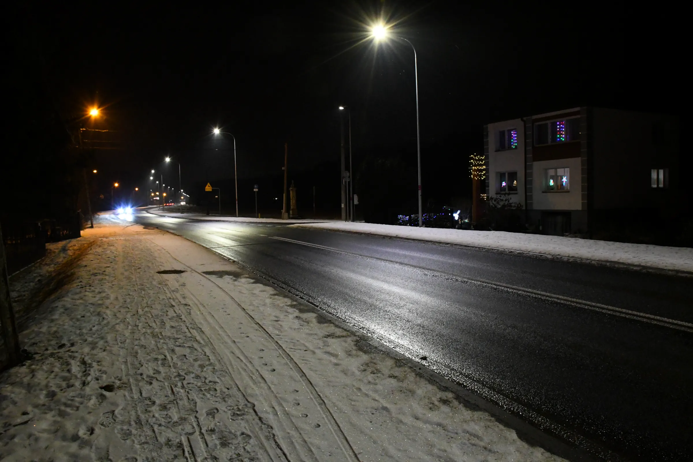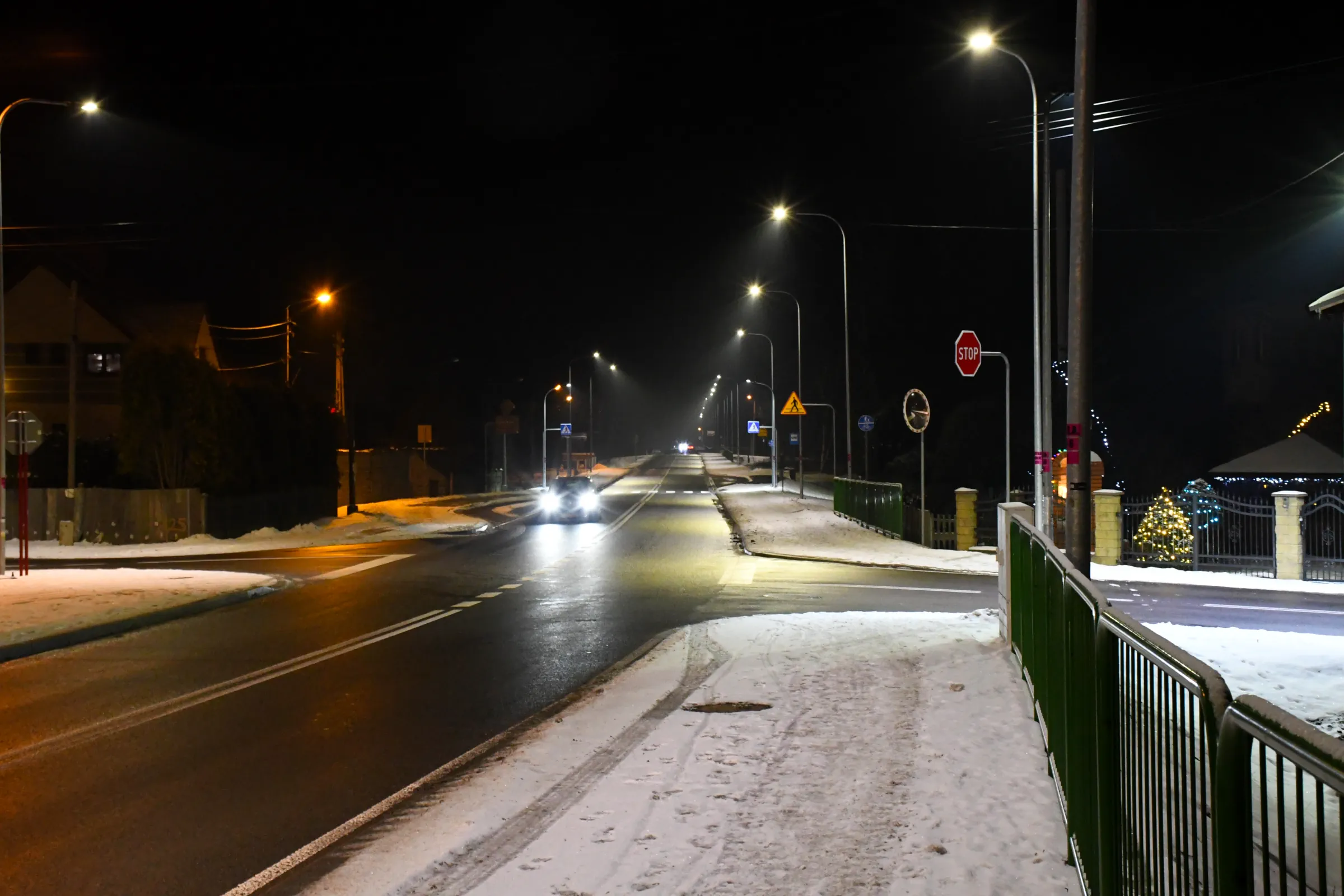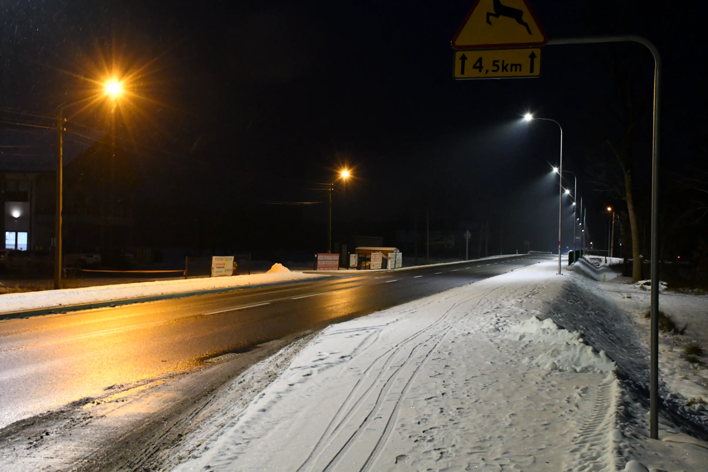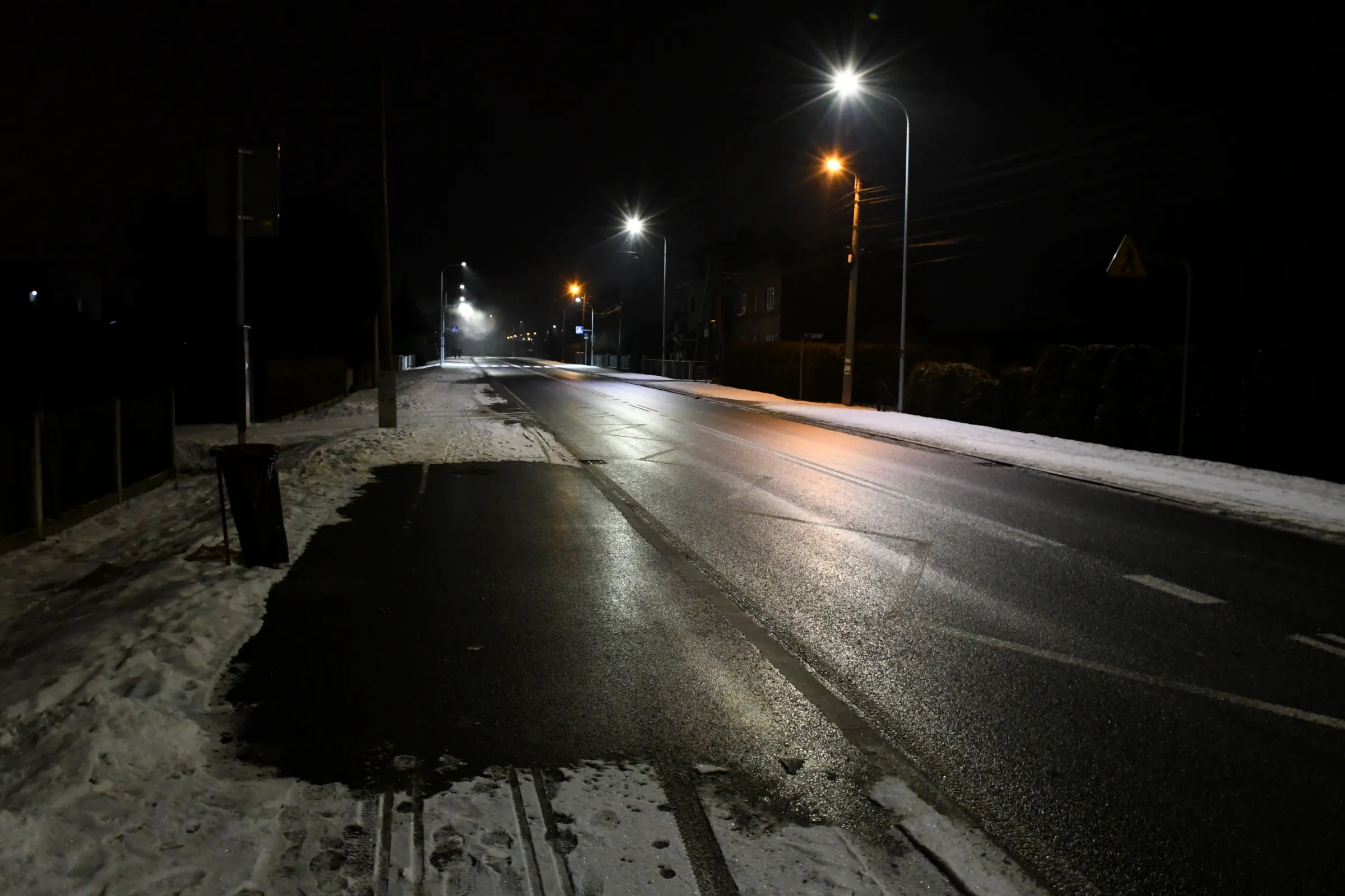 Obecnie drogę oświetlają również stare oprawy sodowe, których ze względu na trwający remont nie wymieniono podczas akcji wymiany oświetlenia w grudniu 2023 roku.