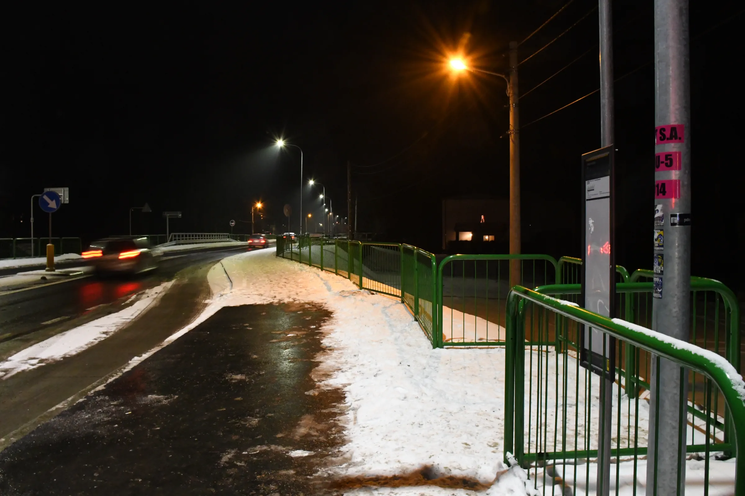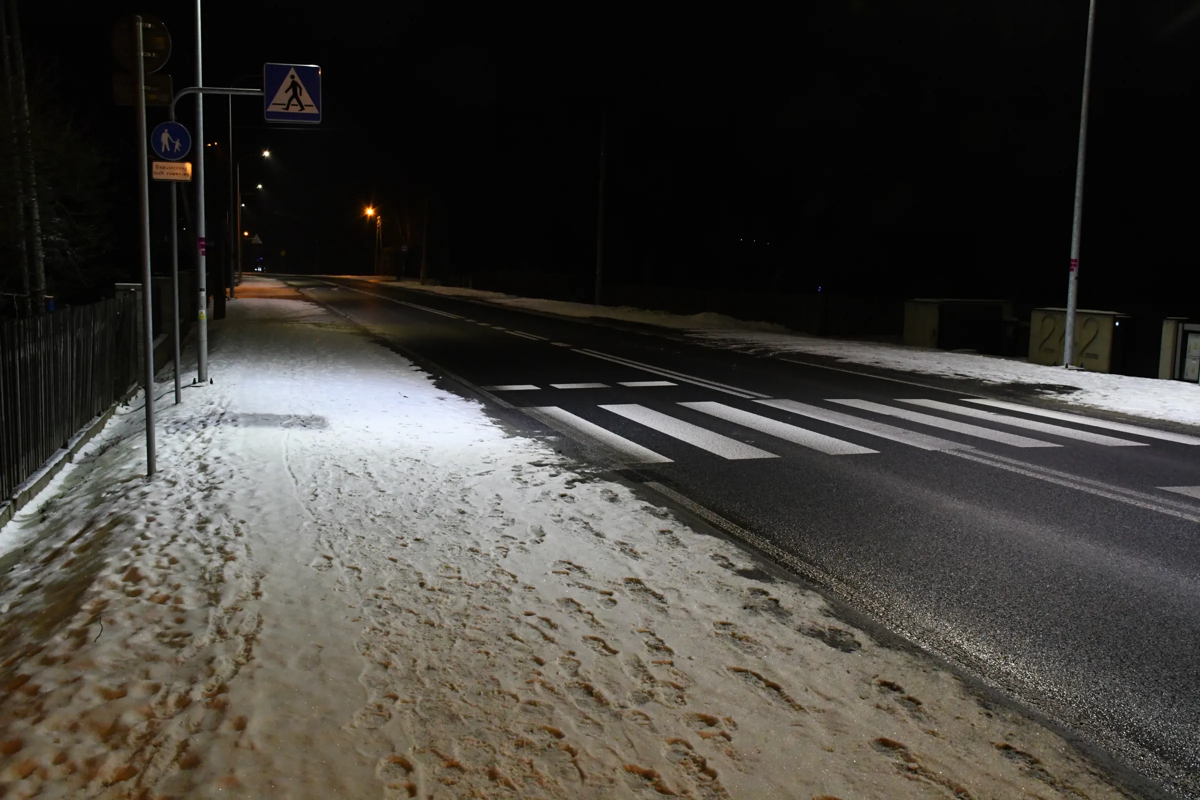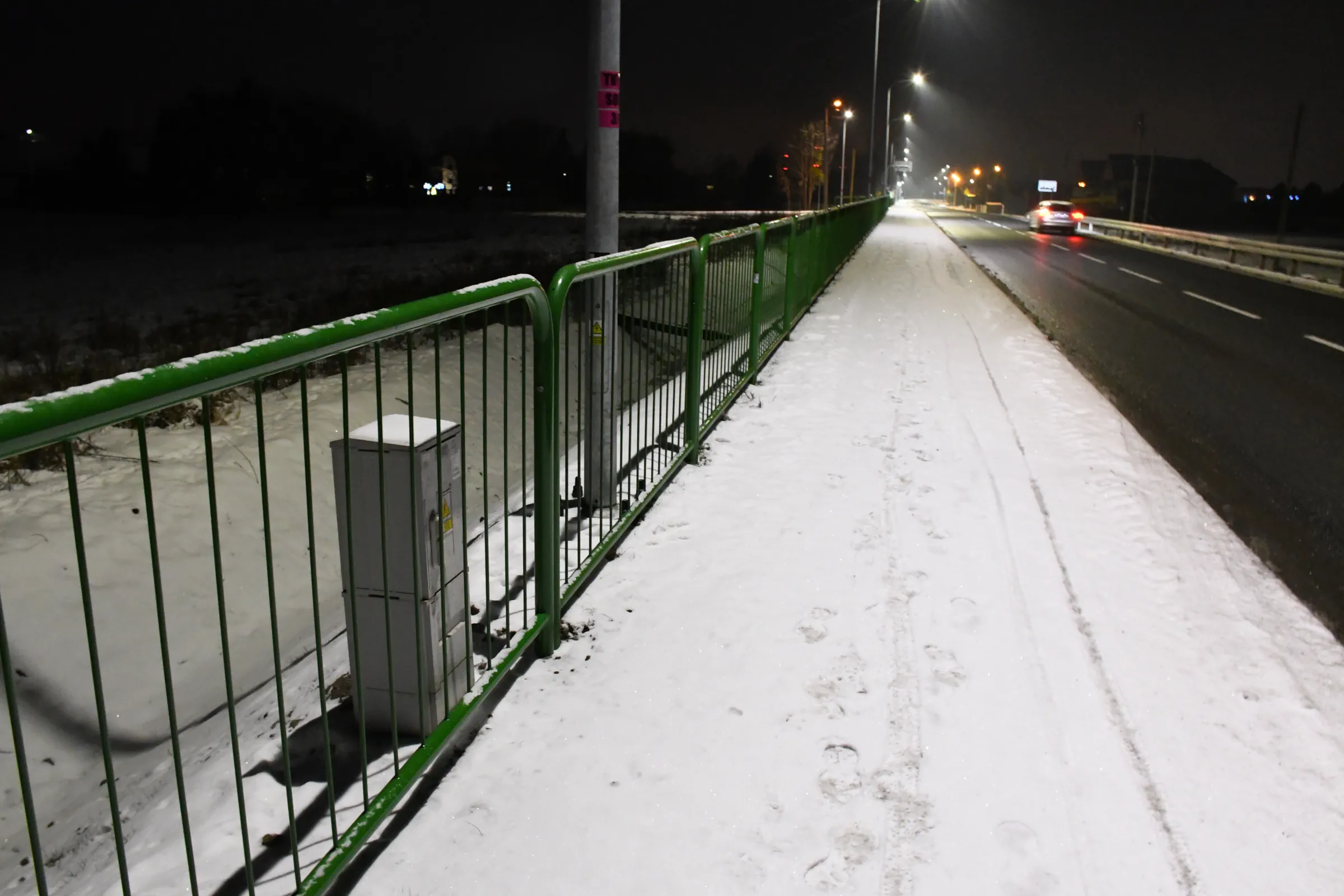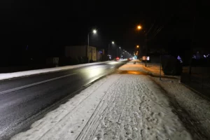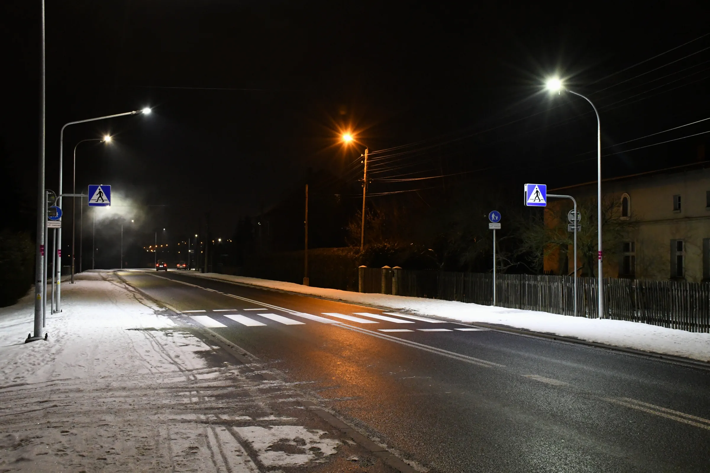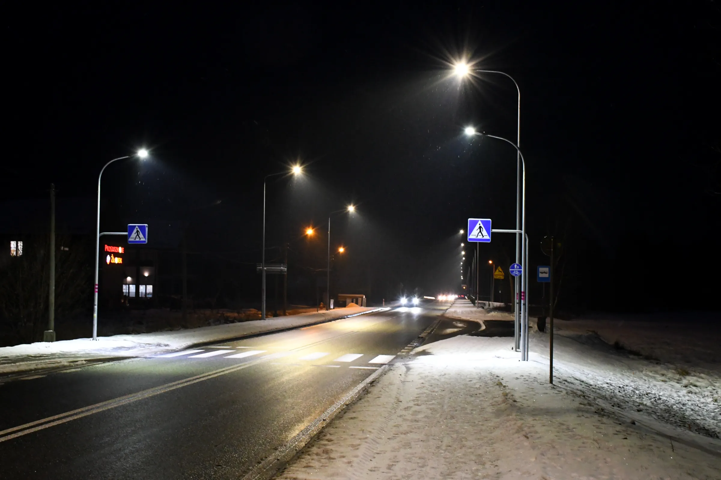 Obecnie drogę oświetlają również stare oprawy sodowe, których ze względu na trwający remont nie wymieniono podczas akcji wymiany oświetlenia w grudniu 2023 roku.