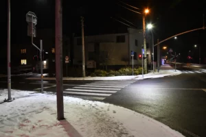 Nowe oświetlenie emituje czyste, białe światło. Ta zmiana sprawia, że droga po zmroku prezentuje się nowocześnie, a widoczność na drodze jest porównywalna z warunkami dziennymi.