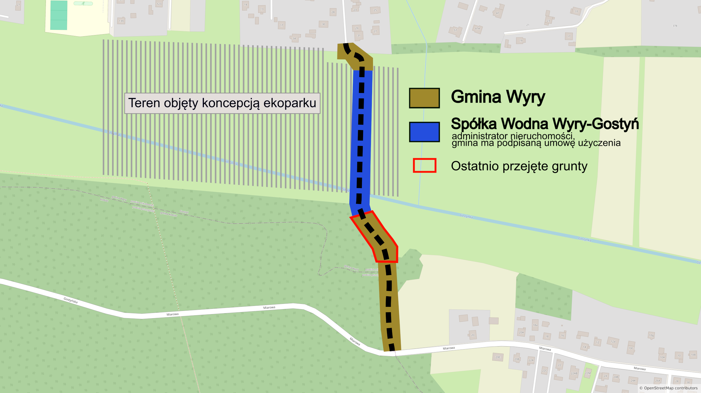 Wytyczona kilka dekad temu droga w dolinie rzeki Gostynki, łącząca ul. Miarową z ul. kpt. Jana Rybczyńskiego, z końcem 2025 roku znalazła się pod pełnym zarządem gminy Wyry. Samorząd wykupił dwie działki stanowiące fragment drogi, aby uporządkować kwestie własnościowe i w przyszłości wyremontować ten popularny ciąg.