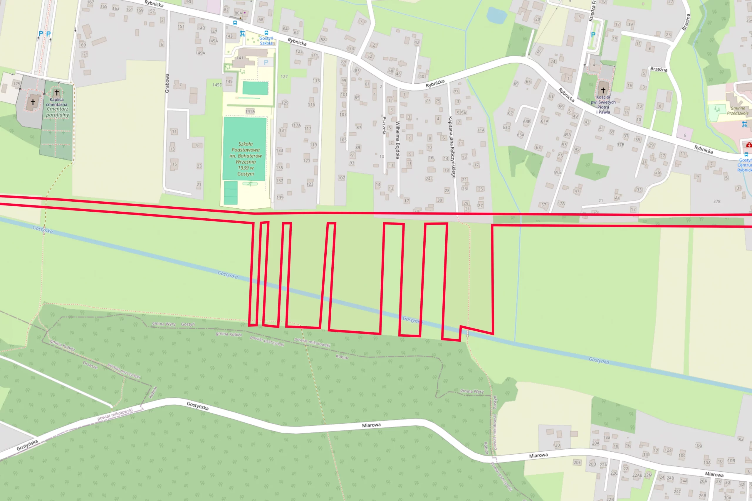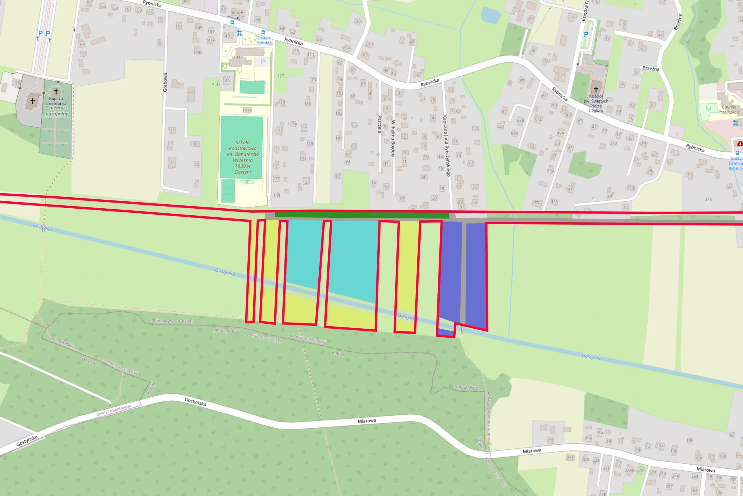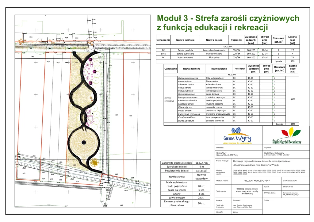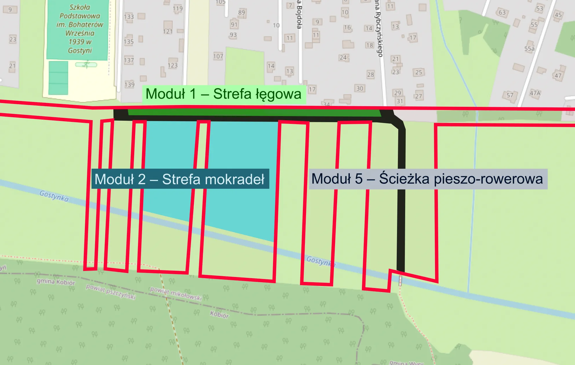 - Moduł 1 – Strefa łęgowa (pas zieleni od ul. Rybczyńskiego do boiska za szkołą)