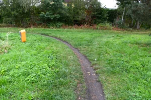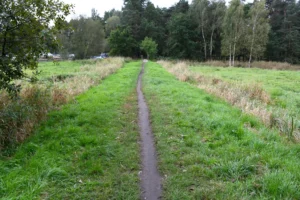 Obszar z nawierzchnią przepuszczalną w miejscach, w których już odbywał się ruch rowerowy i pieszy, wykonany np. z wykorzystaniem kruszywa naturalnie stabilizowanego lub bruku na podbudowie żwirowej. Dopuszcza się utwardzenie głównych ciągów komunikacyjnych kruszywem stabilizowanym lub inną technologią zapewniającą równą, dostępną powierzchnię dla wózków i rowerów