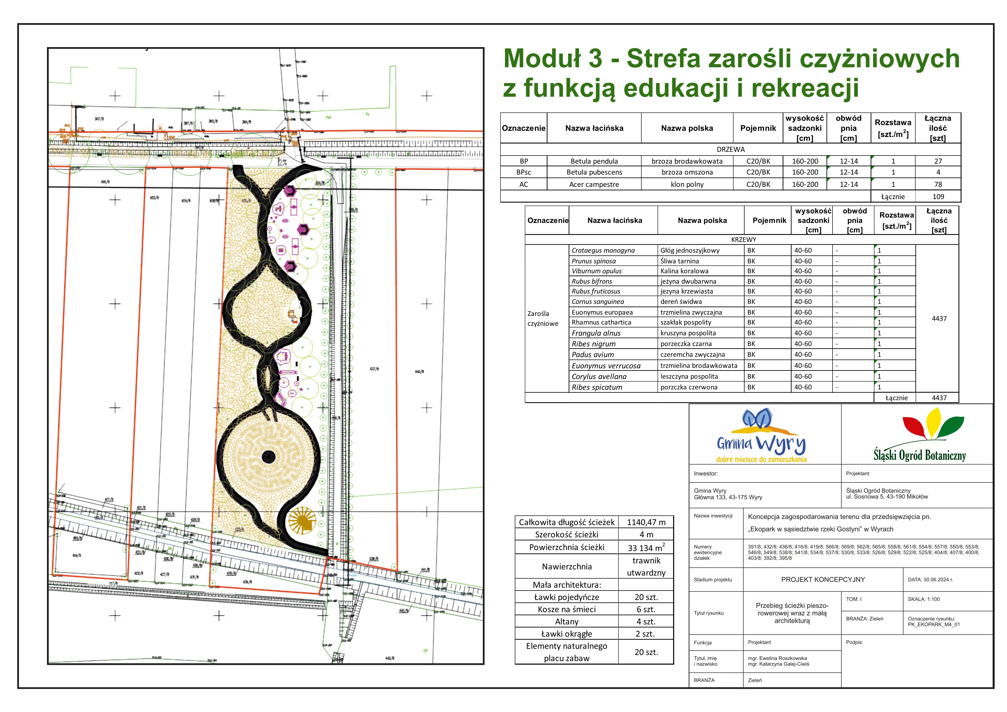 Sporządzono na podstawie programu funkcjonalno użytkowego stworzonego na zlecenie gminy Wyry ze środków publicznych przez Śląski Ogród Botaniczny w Mikołowie (załącznik nr 10) wyłącznie w celu skrótowego omówienia zaplanowanych działań.