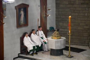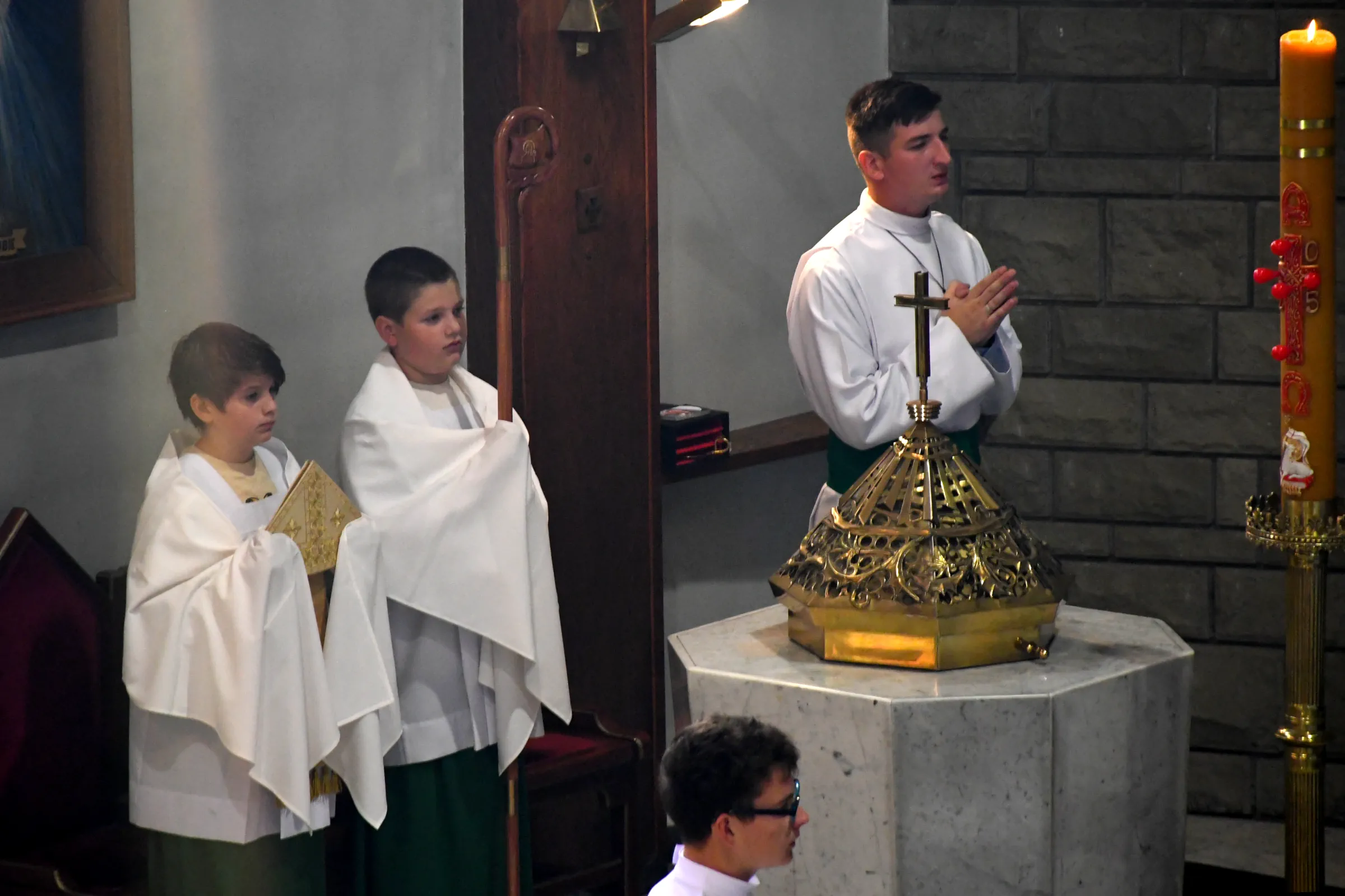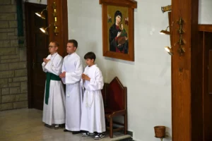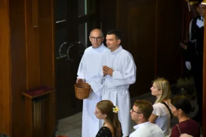 Asysta biskupa – obsługa insygniów: mitry i pastorału