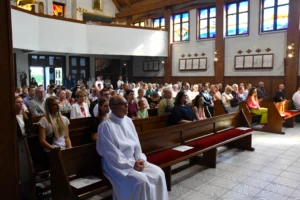 Po Eucharystii wszyscy odśpiewali uroczyste „Te Deum” – „Ciebie Boże wielbimy” (3 zwrotki), czyli śląski hymn wdzięczności i uwielbienia, a potem udali się pod Krzyż Misyjny, gdzie zakończono tydzień misyjny w parafii Podwyższenia Krzyża Św. (więcej tutaj).