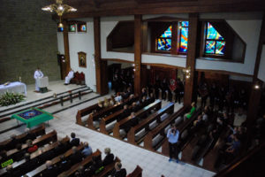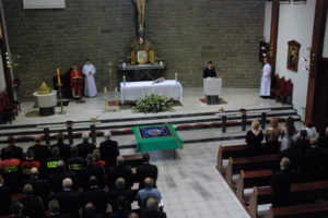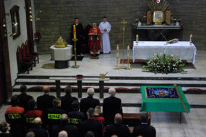 – Dzisiejsza uroczystość poświęcenia sztandaru niech pomoże wam na nowo uświadomić sobie wasze powołanie, bo to też jest powołanie, służba. Pan Bóg was na tej drodze właśnie postawił, i wam na tej drodze służenia ludziom pragnie dziś błogosławić – mówił ks. proboszcz do zgromadzonych w kościele strażaków.