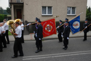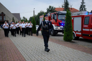 Z kościoła parafialnego wszyscy uczestnicy udali się ul. Rybnicką na miejsce oficjalnego przekazania sztandaru na rzecz jednostki – na teren obiektu sportowo-rekreacyjnego zlokalizowanego za Szkołą Podstawową w Gostyni.
