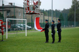 Celem rozpoczęcia oficjalnych uroczystości, dowódca złożył meldunek członkowi Prezydium Zarządu Oddziału Wojewódzkiego Związku Ochotniczych Straży Pożarnych RP. Na wezwanie dowódcy poczet flagowy przestąpił do podniesienia na masz flagi państwowej z okazji wręczenia sztandaru dla OSP Gostyń.