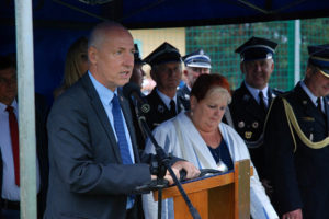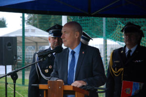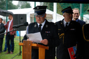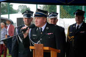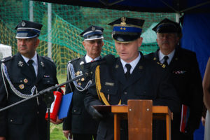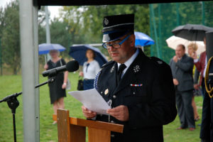 – Ochotnicza Straż Pożarna w Gostyni została założona w roku 1926. Potrzeba istnienia tej organizacji wynikała z częstych pożarów, jakie nękały zabudowania gospodarcze w naszej miejscowości. Zebrała się wtedy grupa ponad 30 ludzi, którzy postanowili przeciwdziałać tym zagrożeniom. Dzisiaj, po 93 latach istnienia OSP w Gostyni, nasza jednostka i druhowie niosą pomoc przy pożarach, wypadkach drogowych, klęskach żywiołowych, podejmując interwencję kilkadziesiąt razy rocznie. Dzisiejszy dzień zapisze się w kartach naszej kroniki jako dzień objęcia nowego sztandaru, stanowiącego szczególne wyróżnienie dla naszej ponad 90-letniej służby. Już nie tylko naszej miejscowości, ale też gminy oraz powiatu – mówił prezes Fityka.