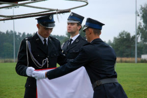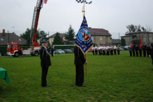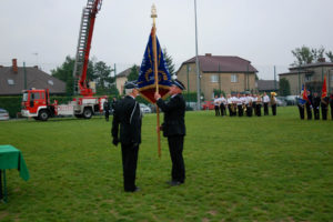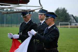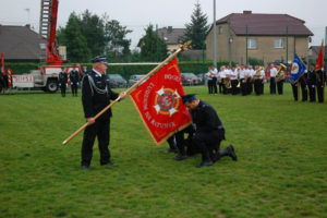 Następnie, po odmówieniu stosownej modlitwy, ks. proboszcz poświęcił nowy sztandar OSP Gostyń, zawierający wizerunek św. Floriana, oznaczenie roku powstania jednostki i roku objęcia nowego sztandaru, a także hasło „Bogu na chwałę, ludziom na ratunek” i herb Związku Ochotniczych Straży Pożarnych RP.