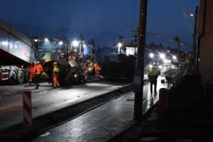 10. Wykonawca poinformował 21 października, że zakończył w Gostyni budowę konstrukcji wszystkich jezdni i mostów, a także realizację kanalizacji deszczowej, kanalizacji teletechnicznej, oświetlenia ulicznego i sygnalizacji świetlnej.