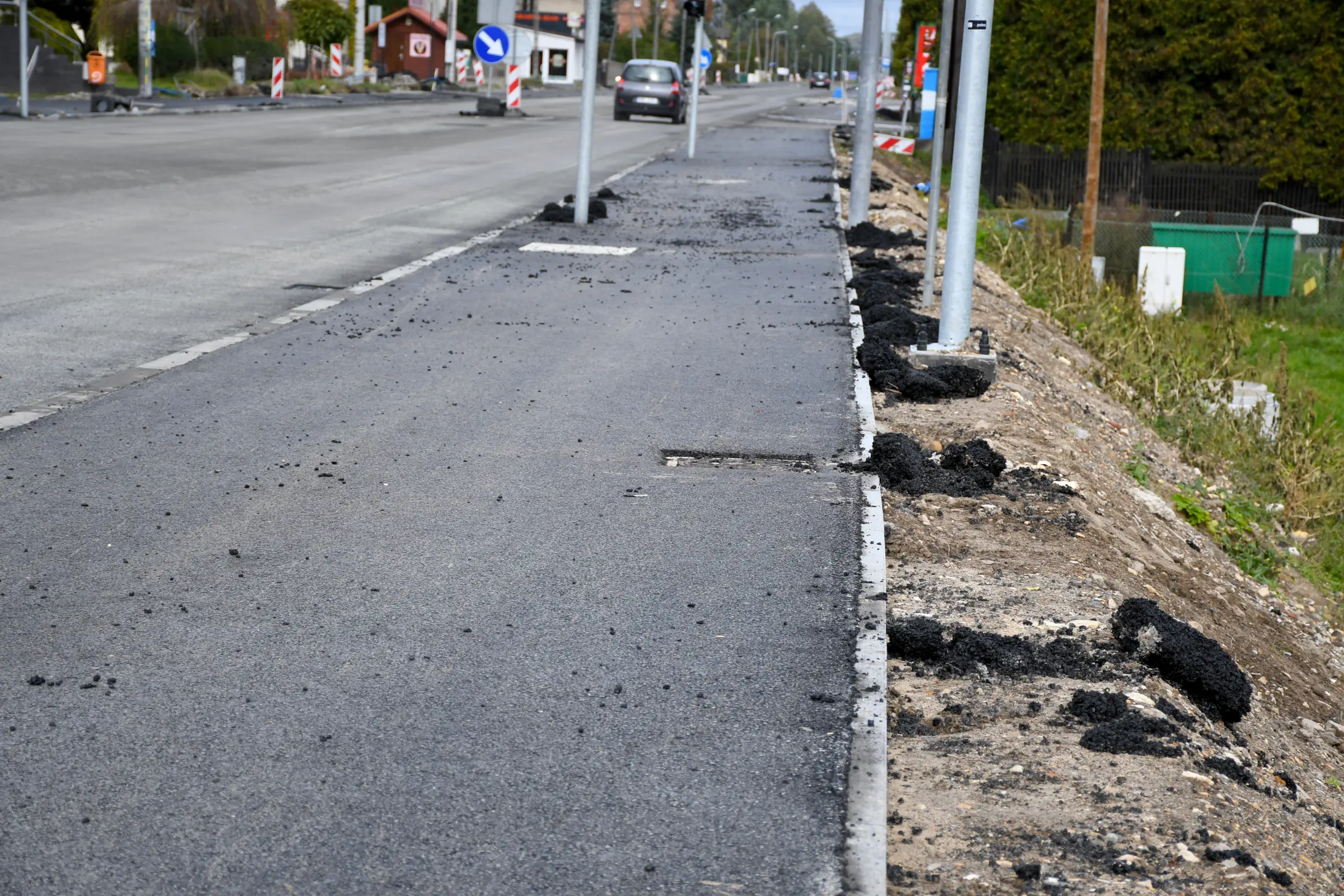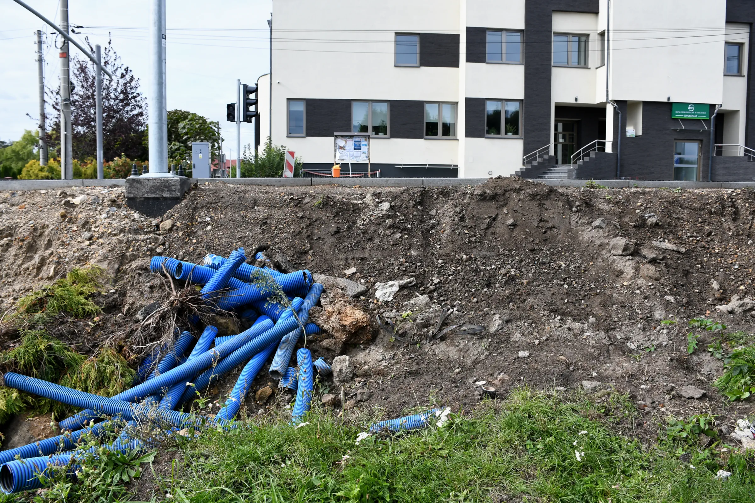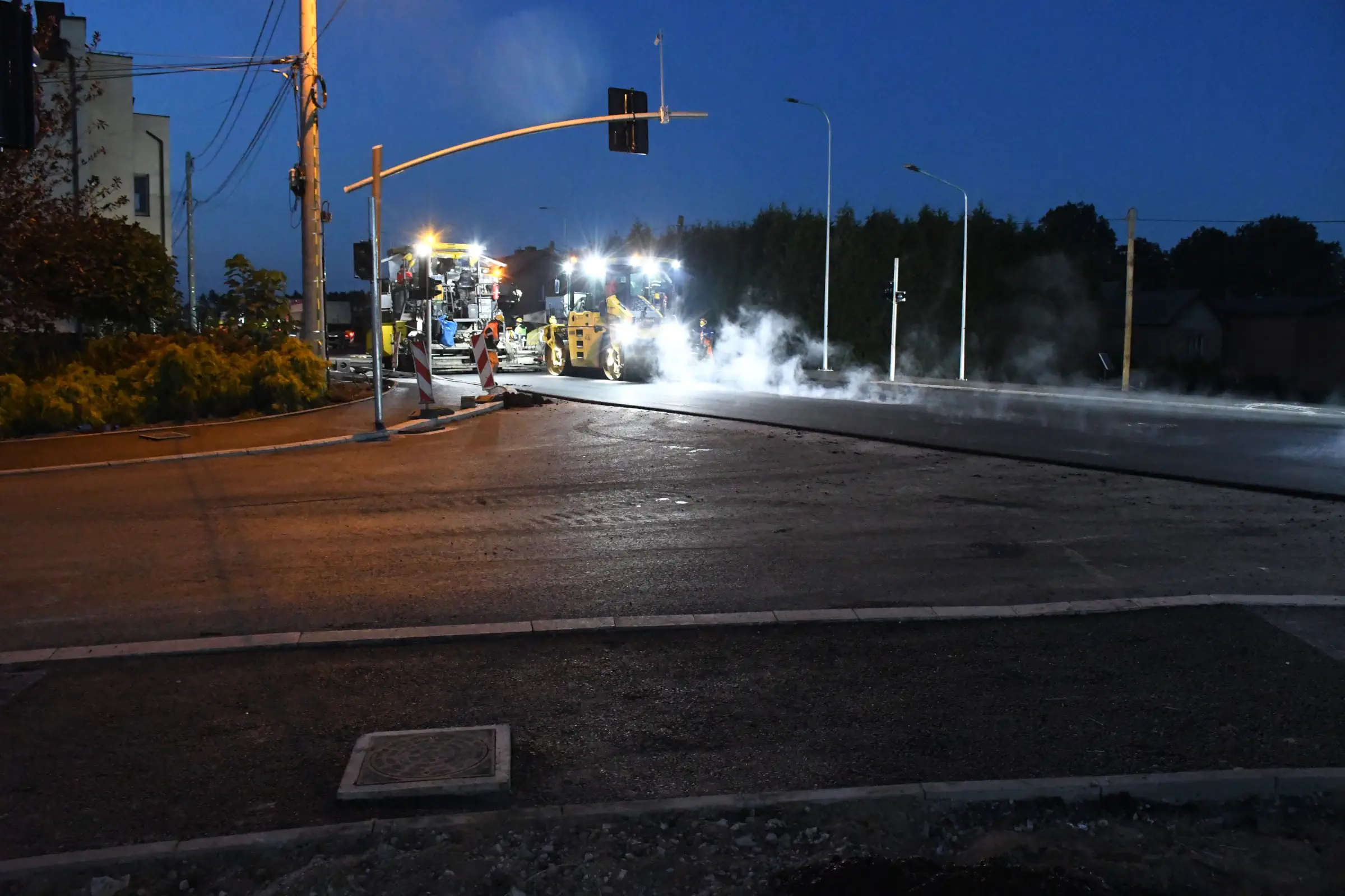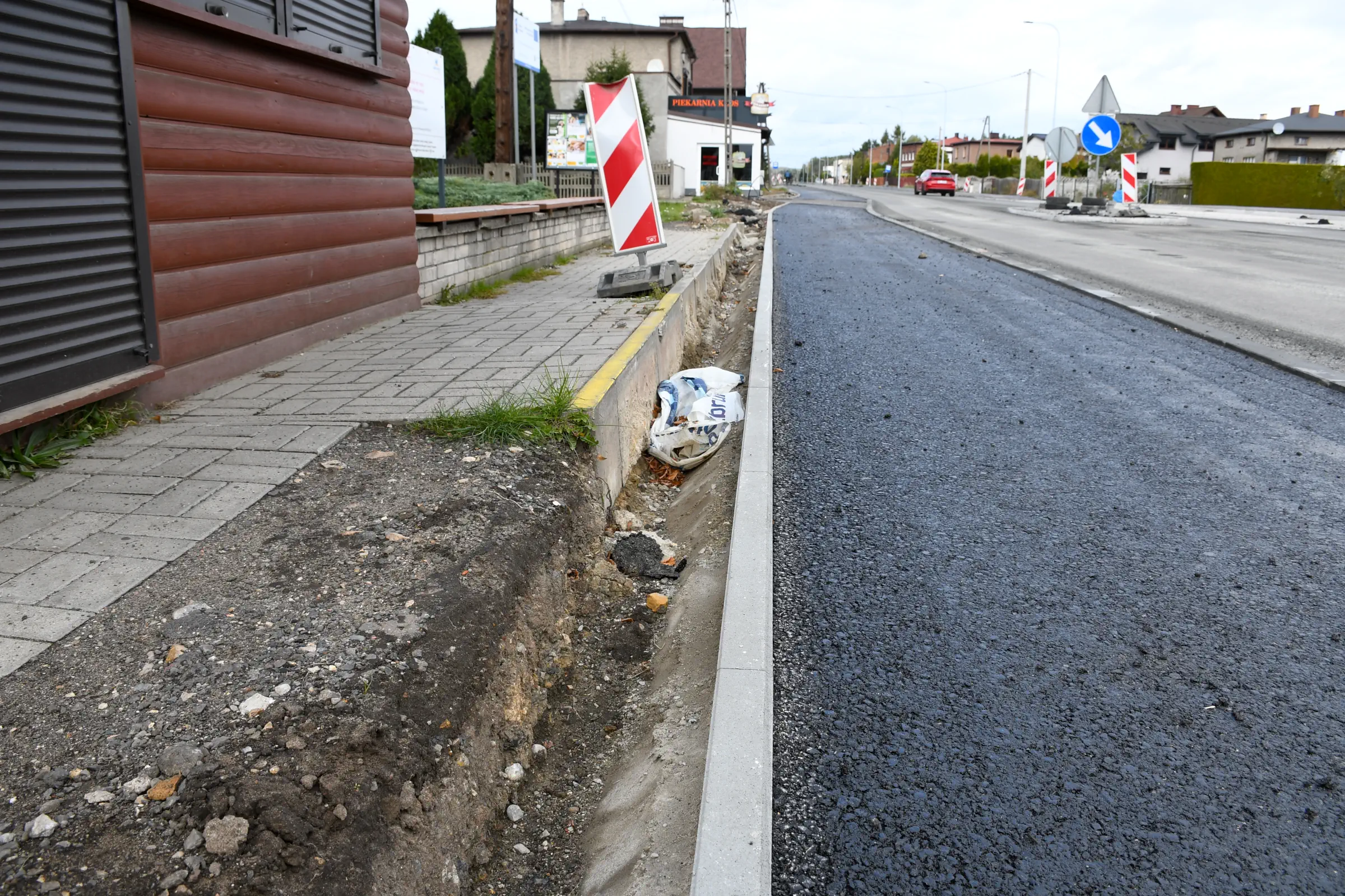 7. Na odcinku pomiędzy głównym skrzyżowaniem a ul. Franciszka Fityki dokończono budowę zjazdu na tę ulicę (warstwa ścieralna) i zakończono budowę ciągu pieszo-rowerowego po stronie zachodniej. Wykonano ponadto pełne oznakowanie pionowe i poziome, a pod koniec miesiąca pobocza wyrównano i obsiano trawą.