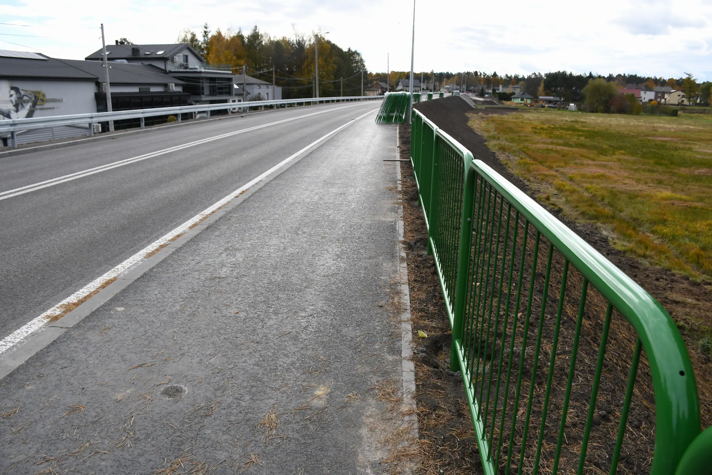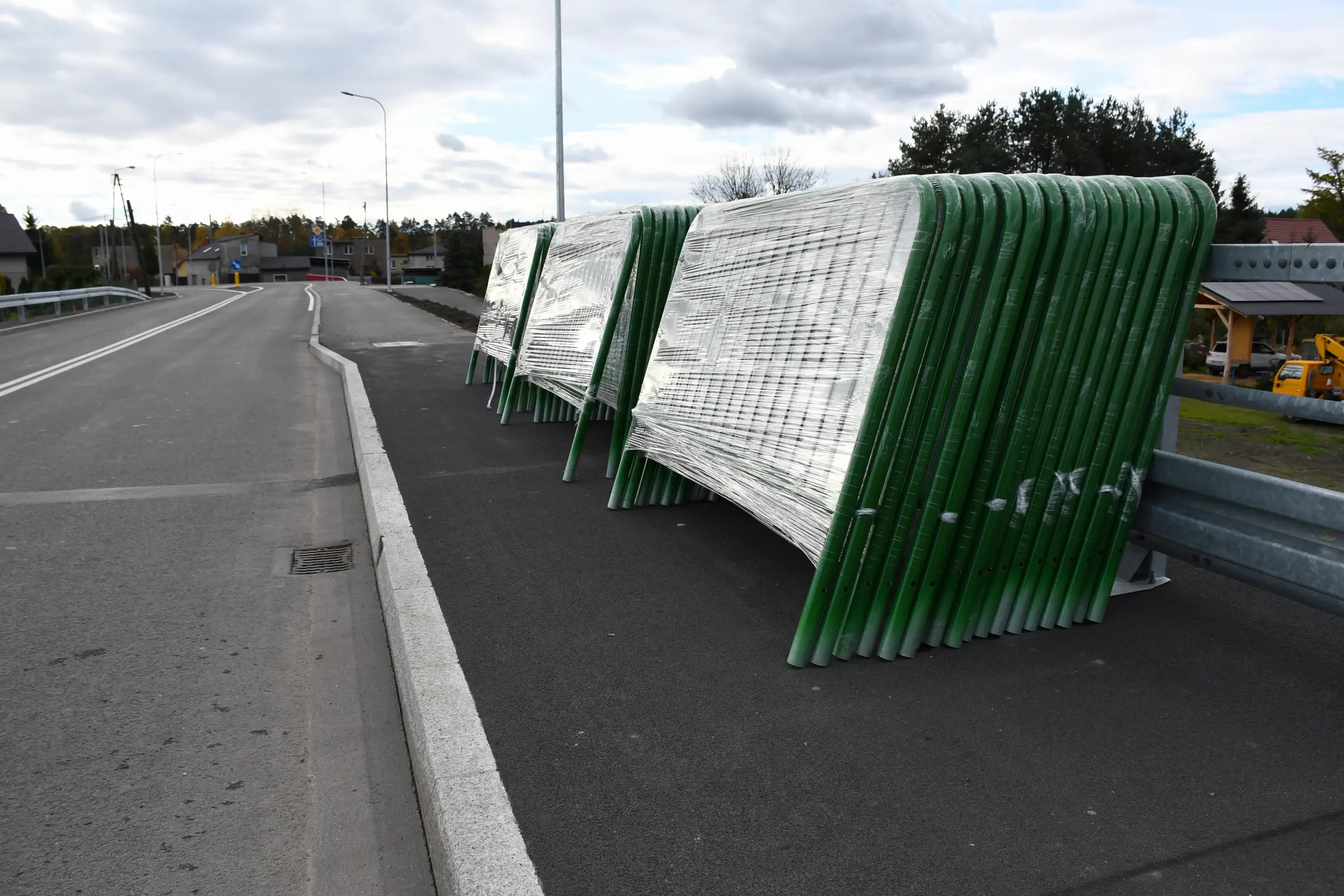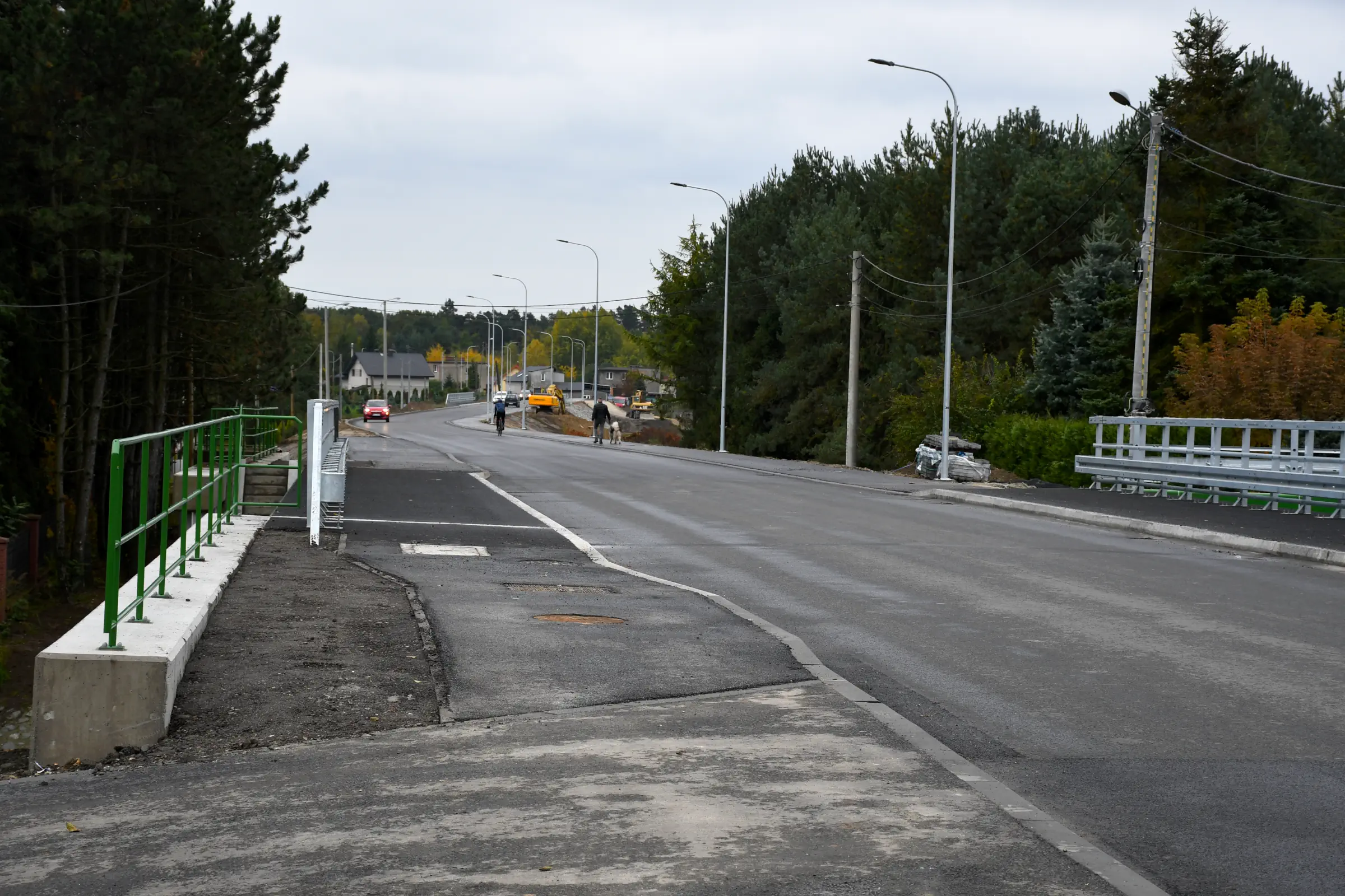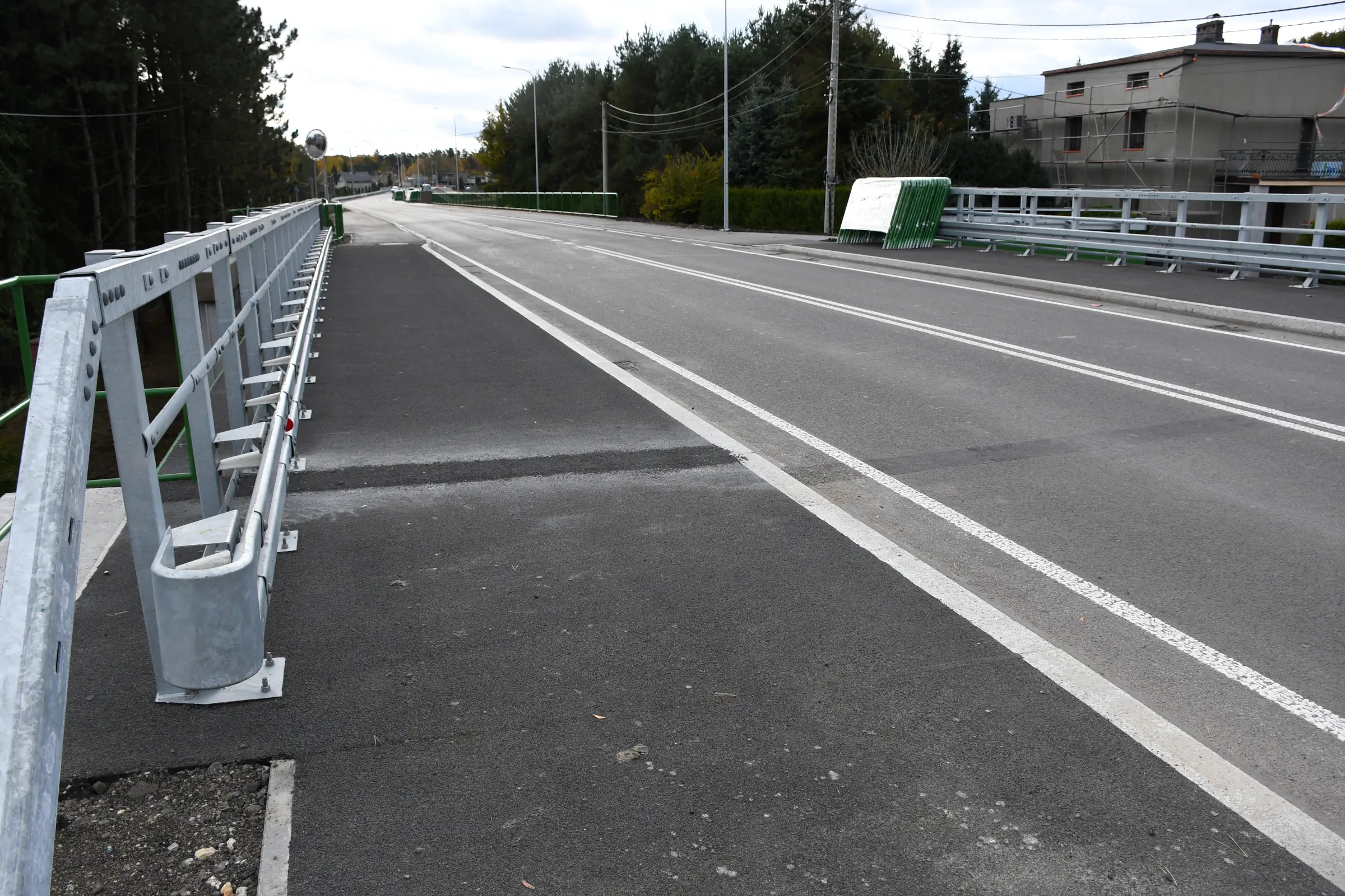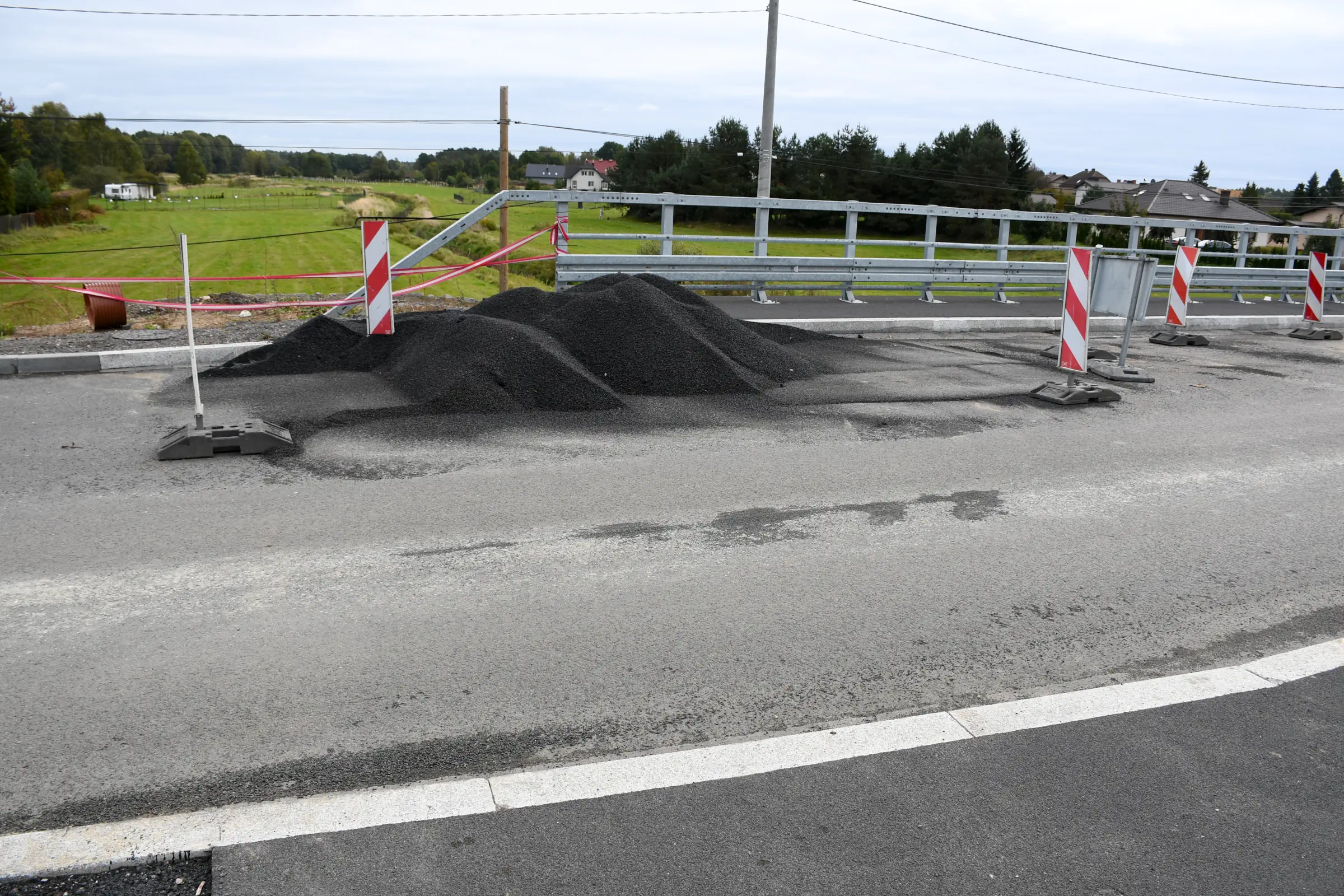 Niedziela, 5 październikaUformowano koryto rzeki w miejscu po rozebranej drodze objazdowejPozostałość po asfaltowaniuWidok na most od strony zachodniejJeszcze kilka miesięcy temu w tym miejscu był zjazd na drogę objazdowąNiedziela, 26 październikaZabezpieczono wylot kanalizacjiSkarpę uformowano i obsiano trawąWidok na most od strony wschodniejBariery energochłonne wzdłuż wschodniej strony jezdniSkarpa i poboczeMagazyn barierek drogowychNa jezdni wykonano linie osioweKażdy komplet zawiera 18 sztuk