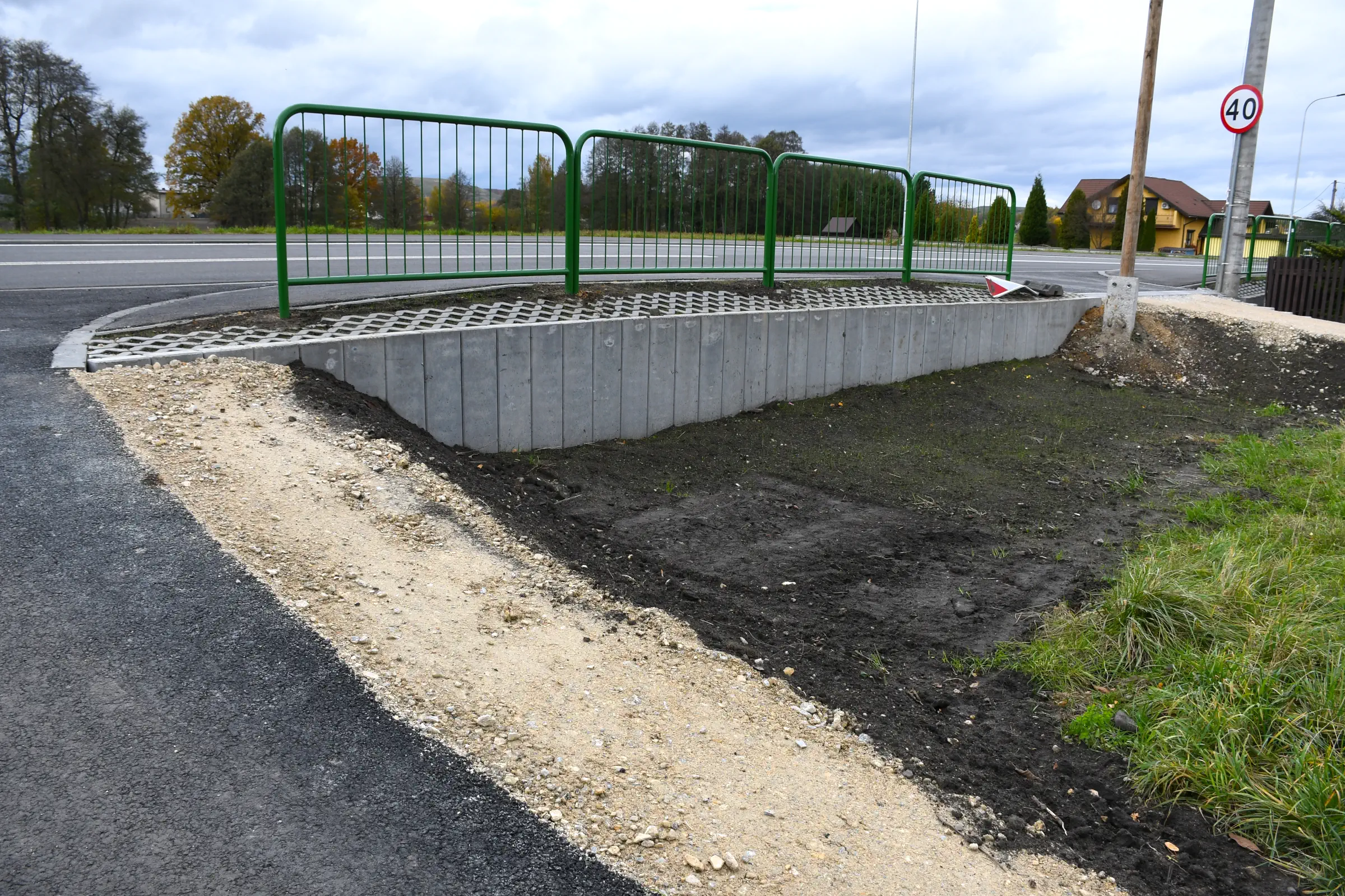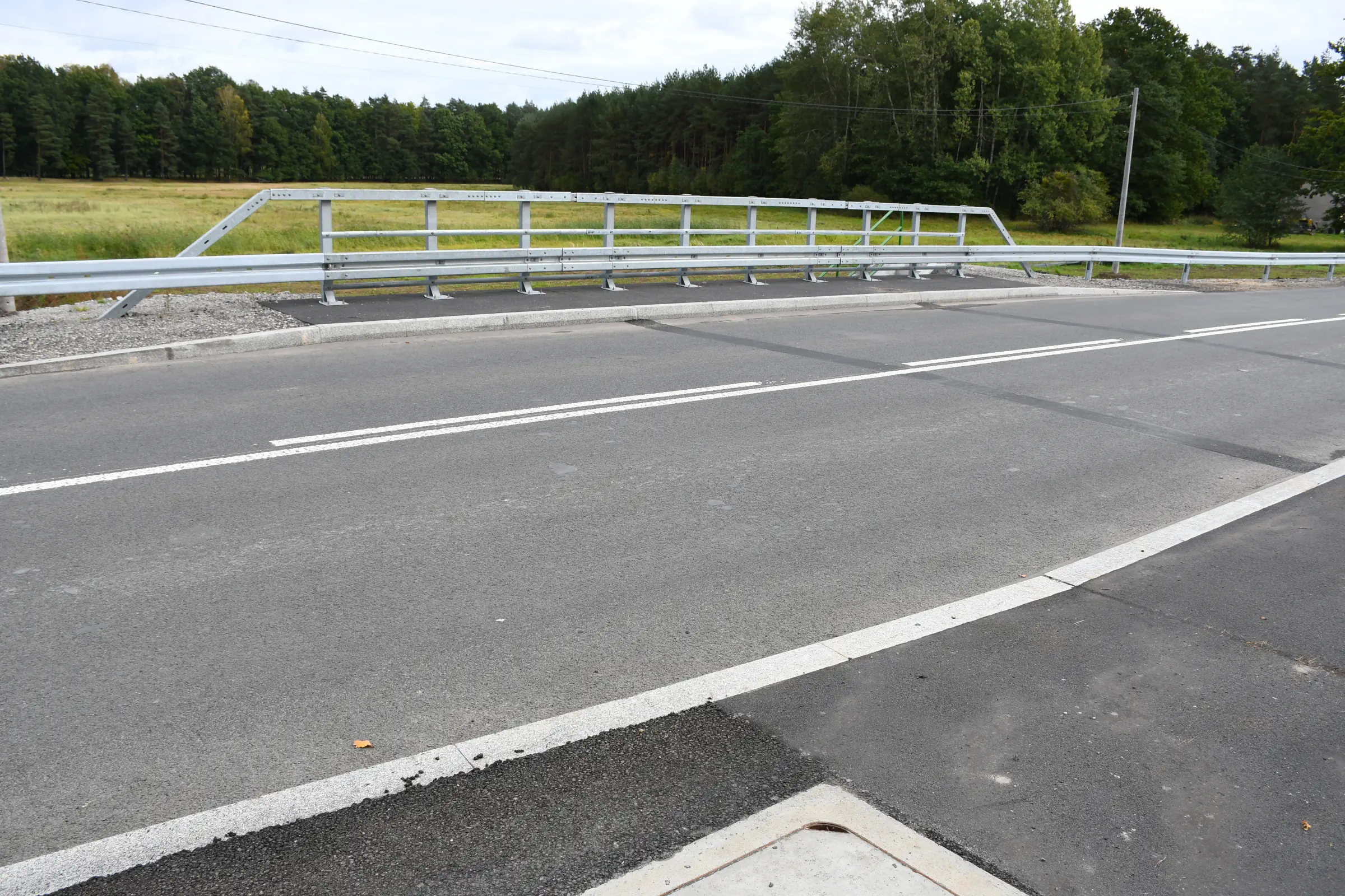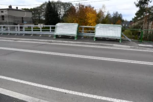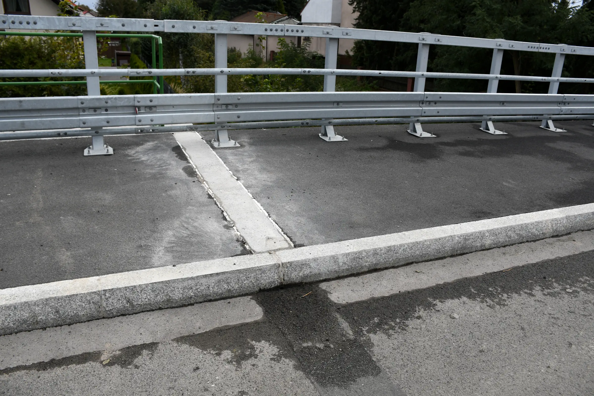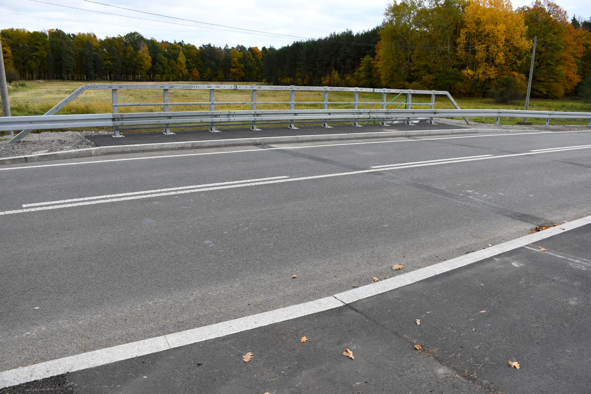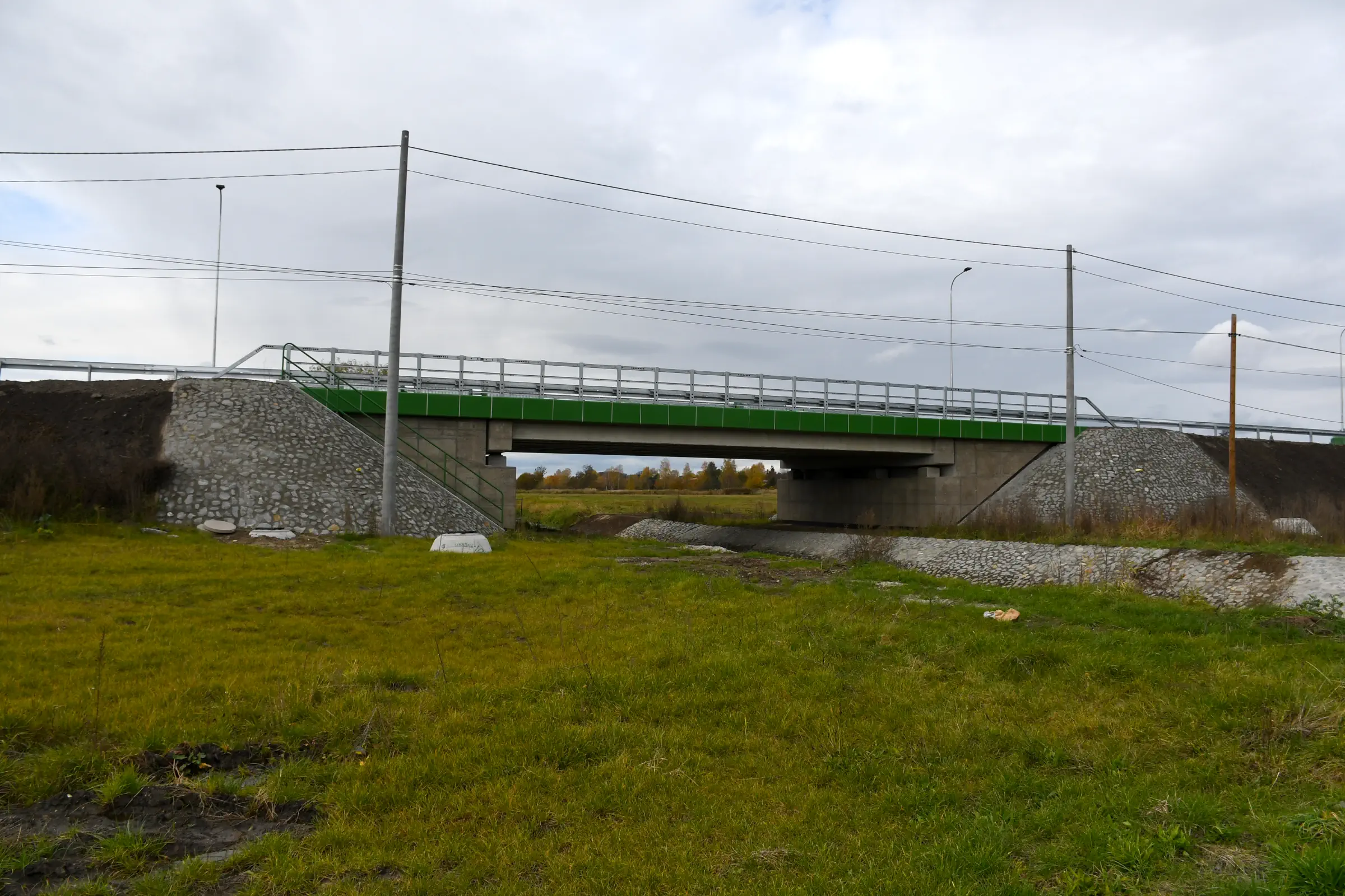 Niedziela, 5 październikaUformowano koryto rzeki w miejscu po rozebranej drodze objazdowejPozostałość po asfaltowaniuWidok na most od strony zachodniejJeszcze kilka miesięcy temu w tym miejscu był zjazd na drogę objazdowąNiedziela, 26 październikaZabezpieczono wylot kanalizacjiSkarpę uformowano i obsiano trawąWidok na most od strony wschodniejBariery energochłonne wzdłuż wschodniej strony jezdniSkarpa i poboczeMagazyn barierek drogowychNa jezdni wykonano linie osioweKażdy komplet zawiera 18 sztuk