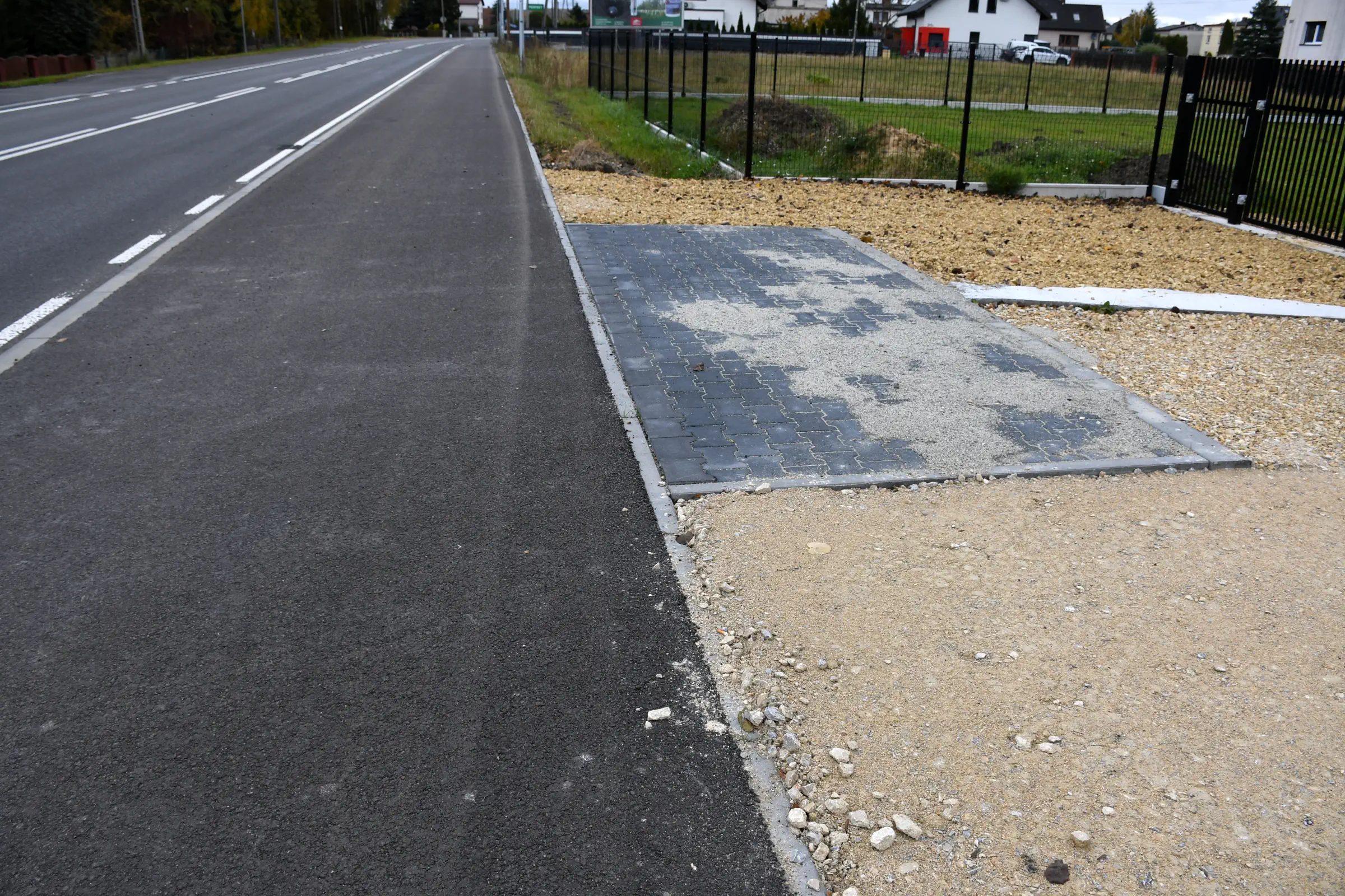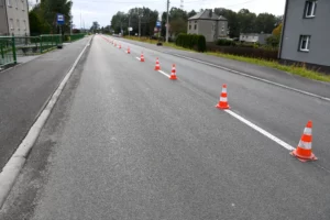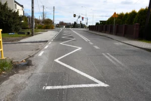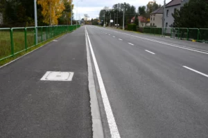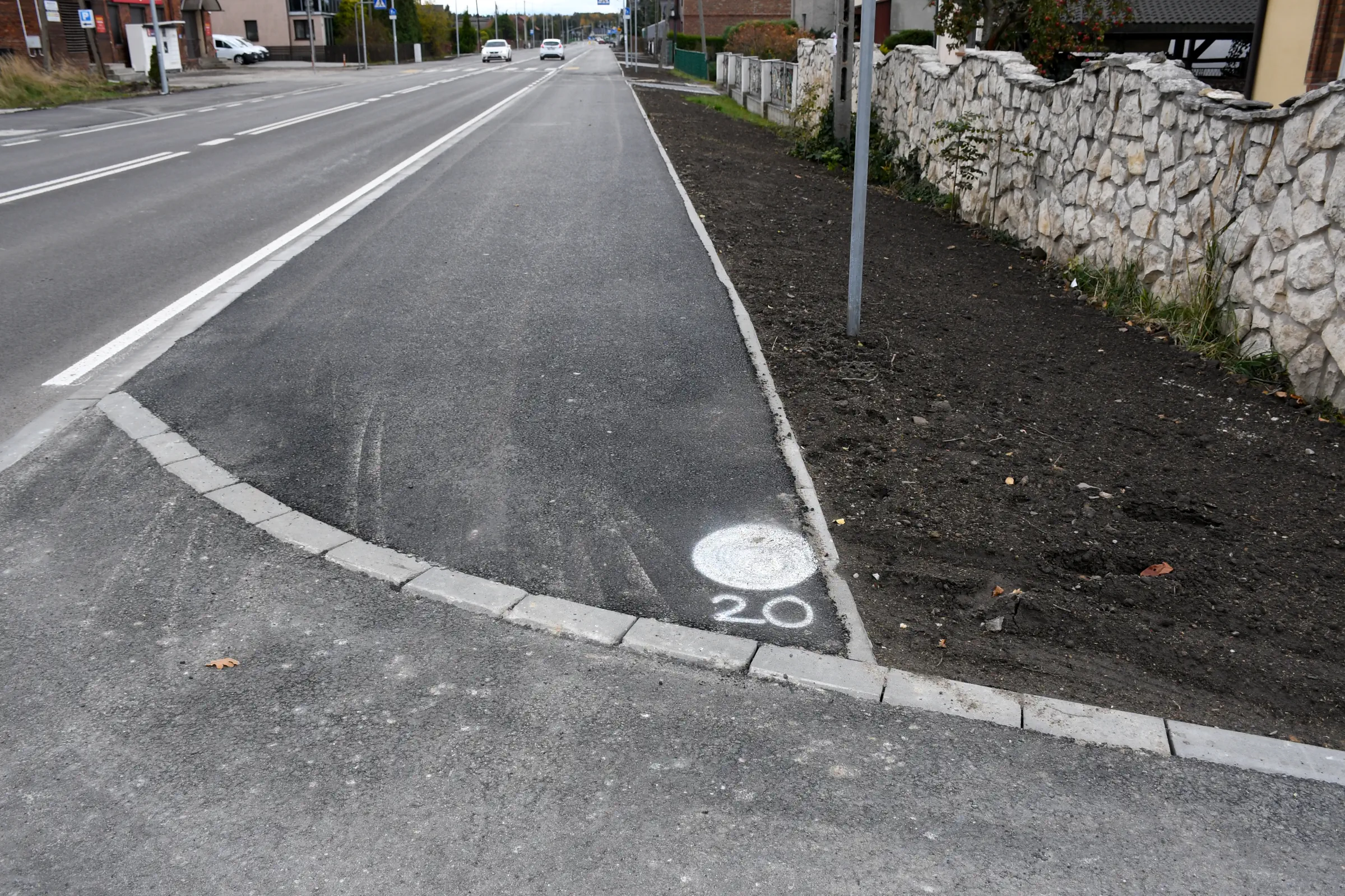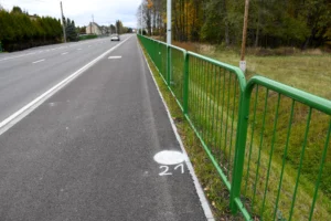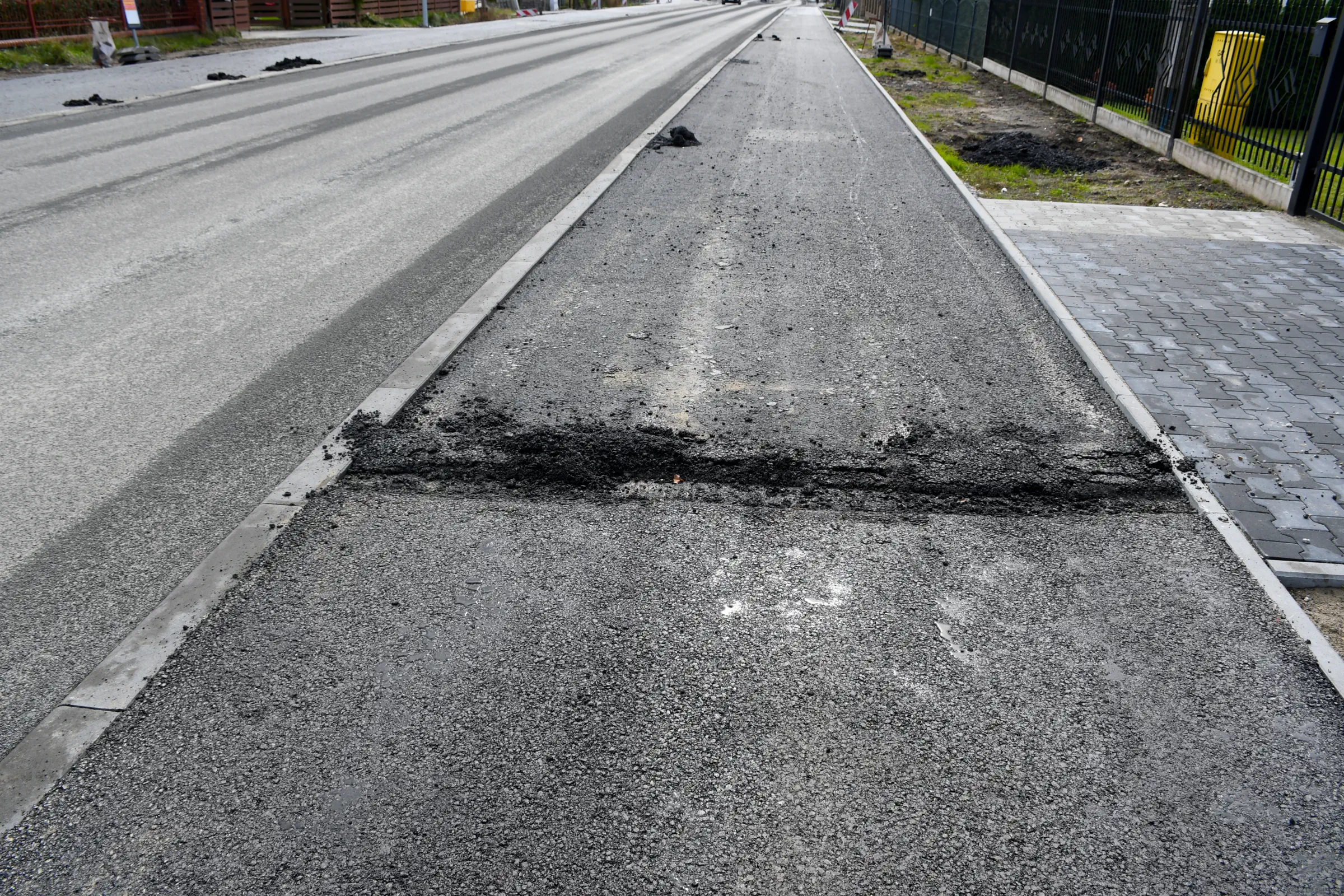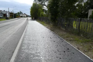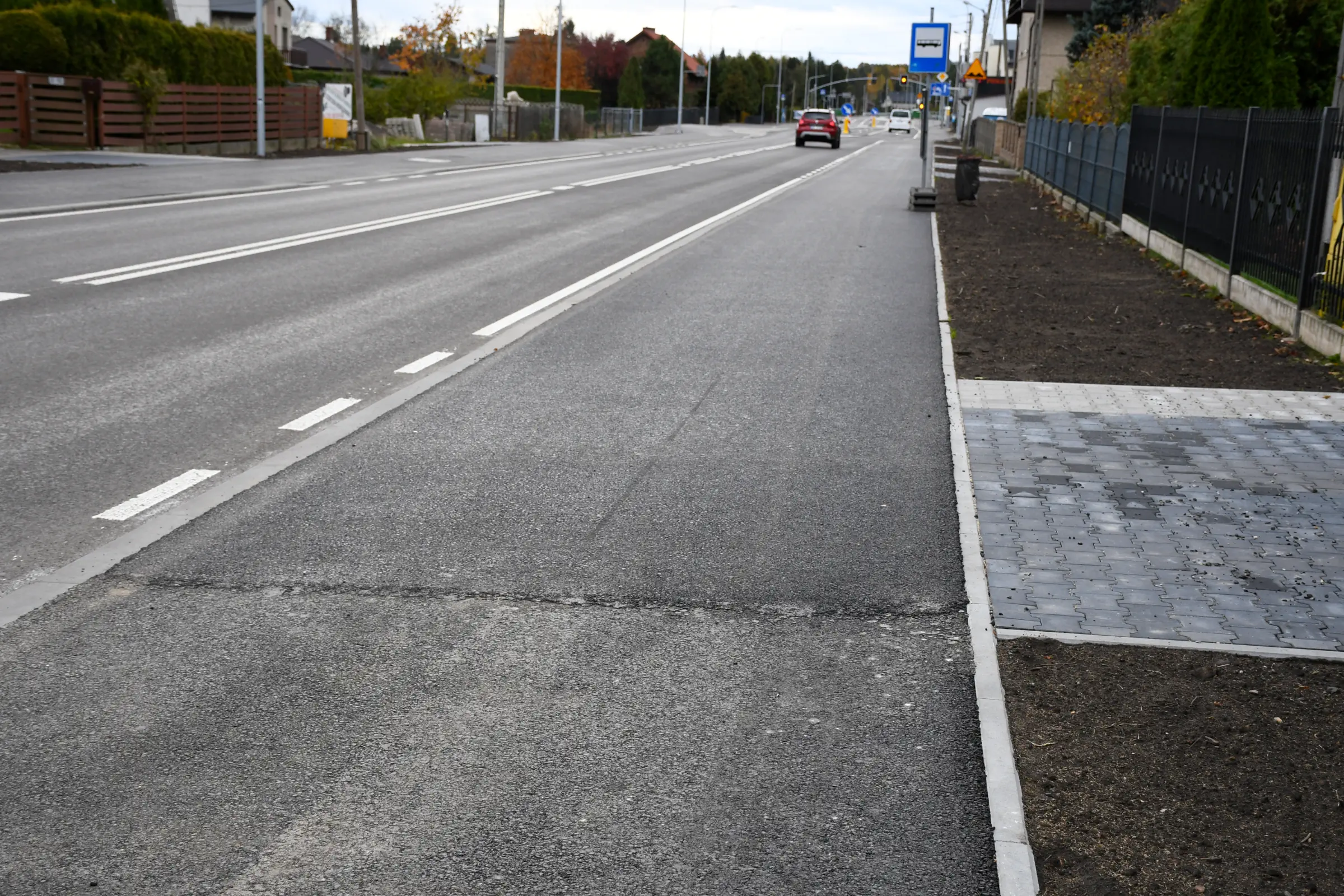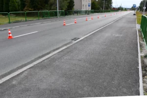 Niedziela, 5 październikaCiąg pieszo-rowerowy gotowy – warstwa ścieralna po stronie wschodniejCiąg po przeciwnej stronie gotowy częściowoFragment ciągu w kierunku centrum po stronie zachodniej jeszcze bez warstwy ścieranejZjazd na drogę bocznąZjazd na parking przy sklepieZjazd na ul. Fityki przed ułożeniem warstwy ścieralnejCiąg pieszo-rowerowy przy zjeździe na ul. Fityki gotowyPo drugiej stronie jezdni dokończono nawierzchnię ciągu pieszo-rowerowegoFragment obok BrandysówkiŁączenie gotowych odcinków – tj. z warstwą ścieralnąNiedziela, 26 października Linia podwójna ciągłaPrzed „Masorzem” i „Spożywczokiem”Zjazd do budynku wielorodzinnegoLinia krawędziowa ciągłaKostka integracyjna przed przejściem dla pieszychZ perspektywy wyjazdu z ul. FitykiZnak ostrzegawczy na wysięgnikuLinia krawędziowa ciągłaLinia pojedyncza przerywana