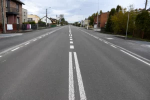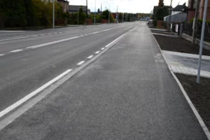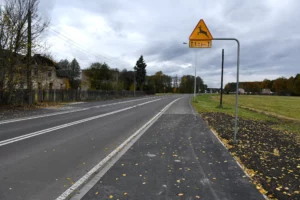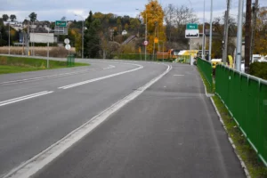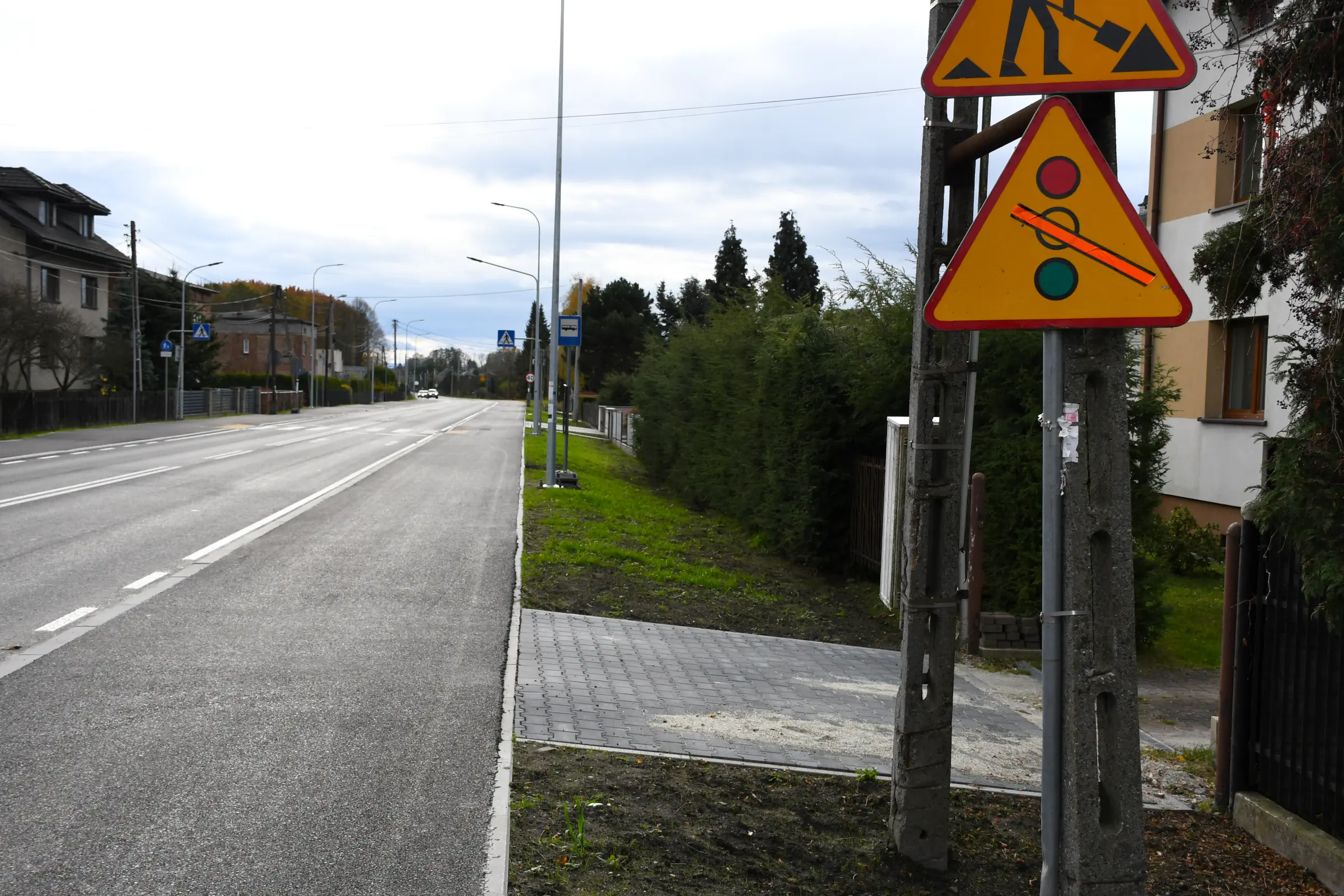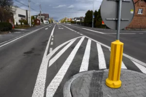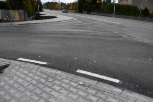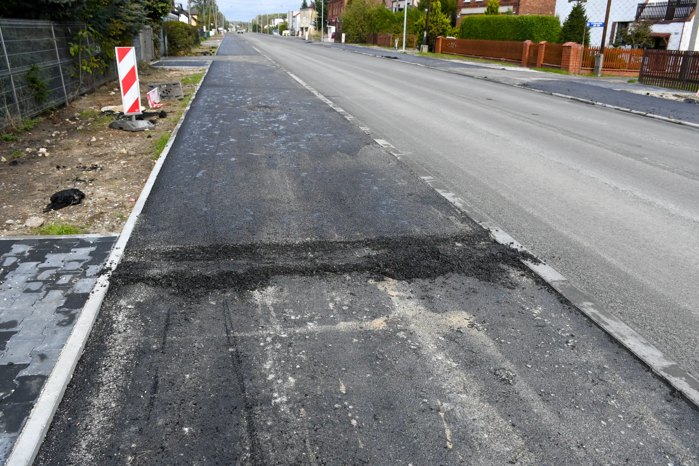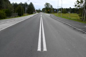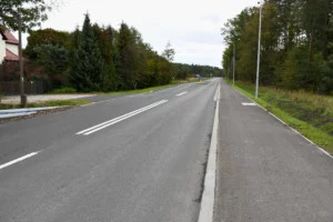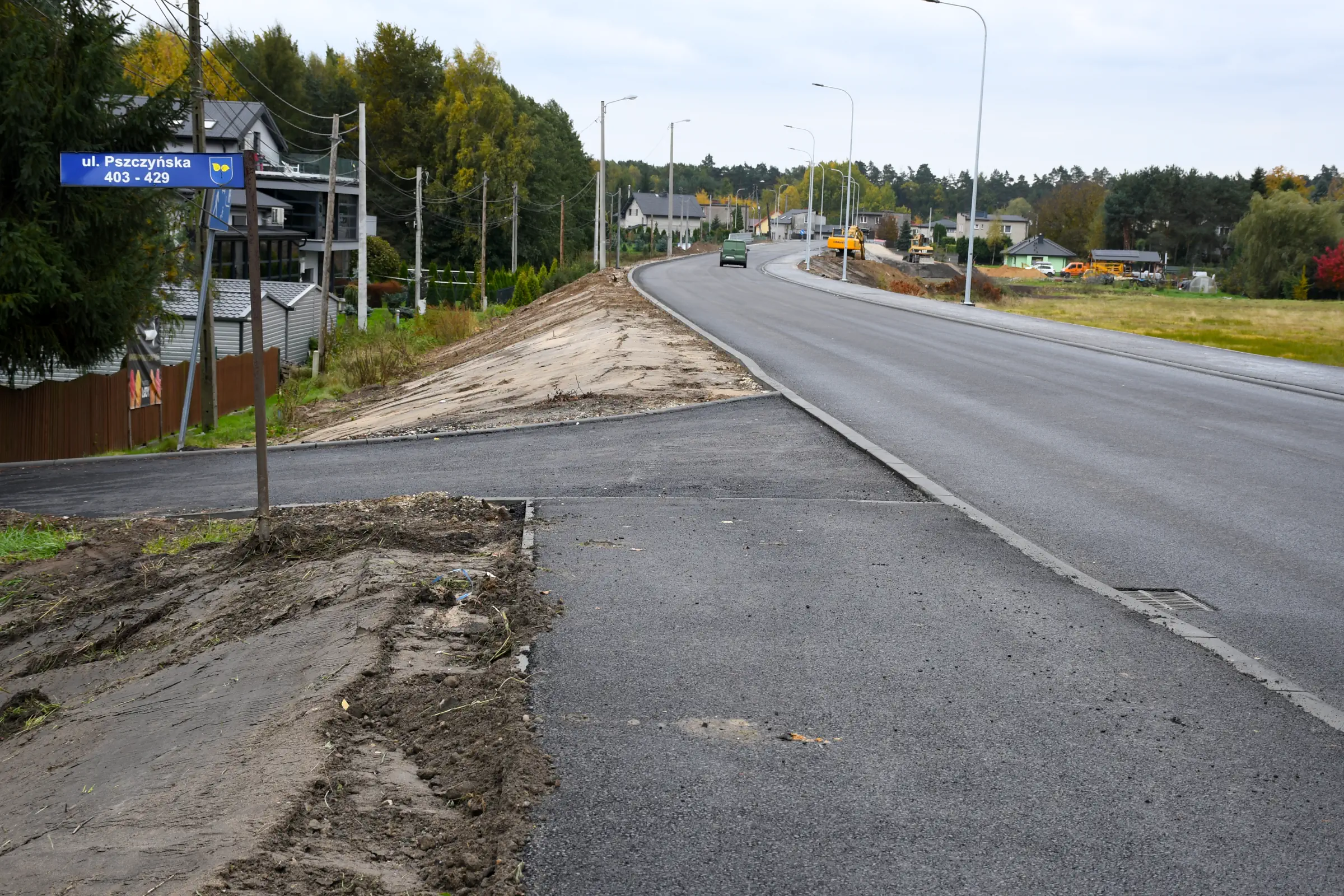 Niedziela, 5 październikaCiąg pieszo-rowerowy gotowy – warstwa ścieralna po stronie wschodniejCiąg po przeciwnej stronie gotowy częściowoFragment ciągu w kierunku centrum po stronie zachodniej jeszcze bez warstwy ścieranejZjazd na drogę bocznąZjazd na parking przy sklepieZjazd na ul. Fityki przed ułożeniem warstwy ścieralnejCiąg pieszo-rowerowy przy zjeździe na ul. Fityki gotowyPo drugiej stronie jezdni dokończono nawierzchnię ciągu pieszo-rowerowegoFragment obok BrandysówkiŁączenie gotowych odcinków – tj. z warstwą ścieralnąNiedziela, 26 października Linia podwójna ciągłaPrzed „Masorzem” i „Spożywczokiem”Zjazd do budynku wielorodzinnegoLinia krawędziowa ciągłaKostka integracyjna przed przejściem dla pieszychZ perspektywy wyjazdu z ul. FitykiZnak ostrzegawczy na wysięgnikuLinia krawędziowa ciągłaLinia pojedyncza przerywana