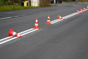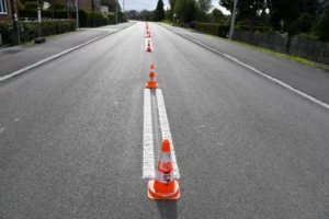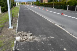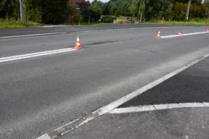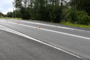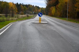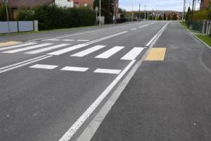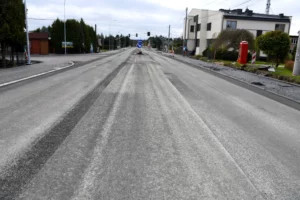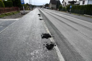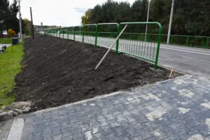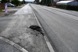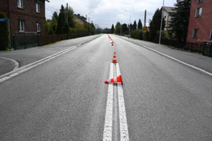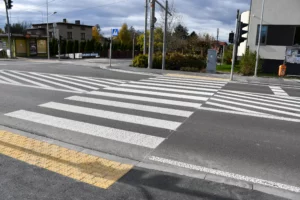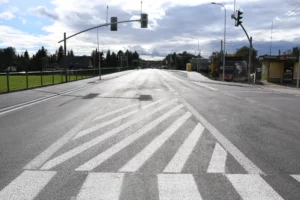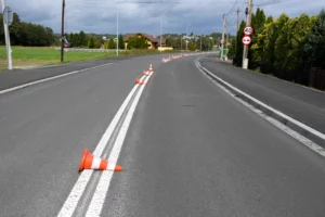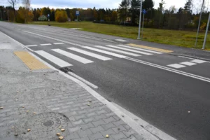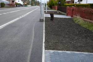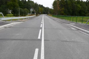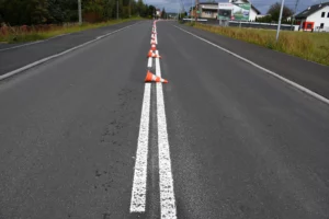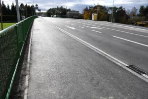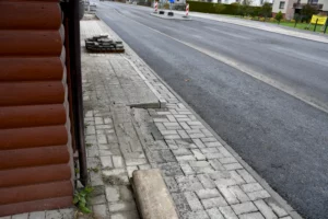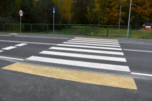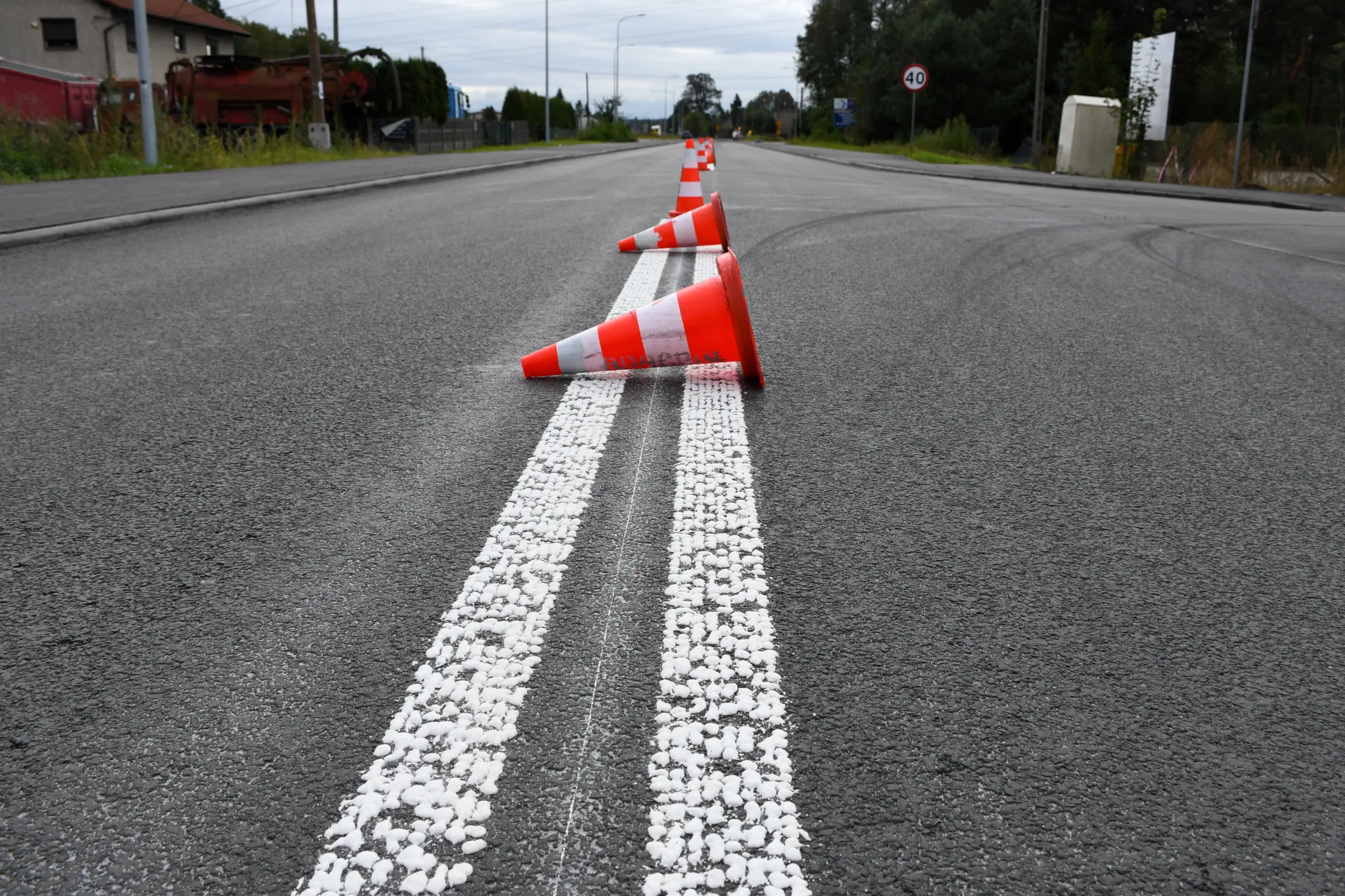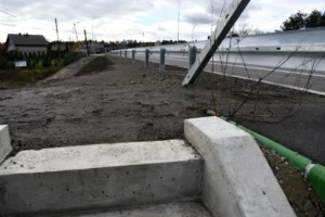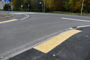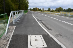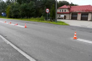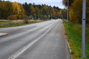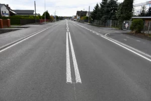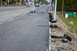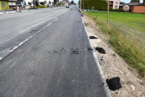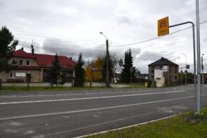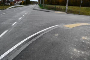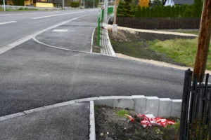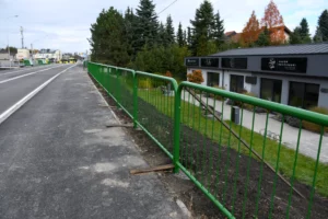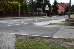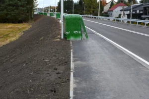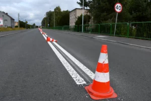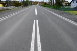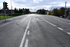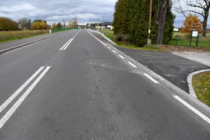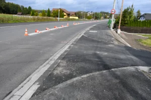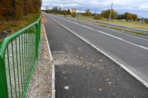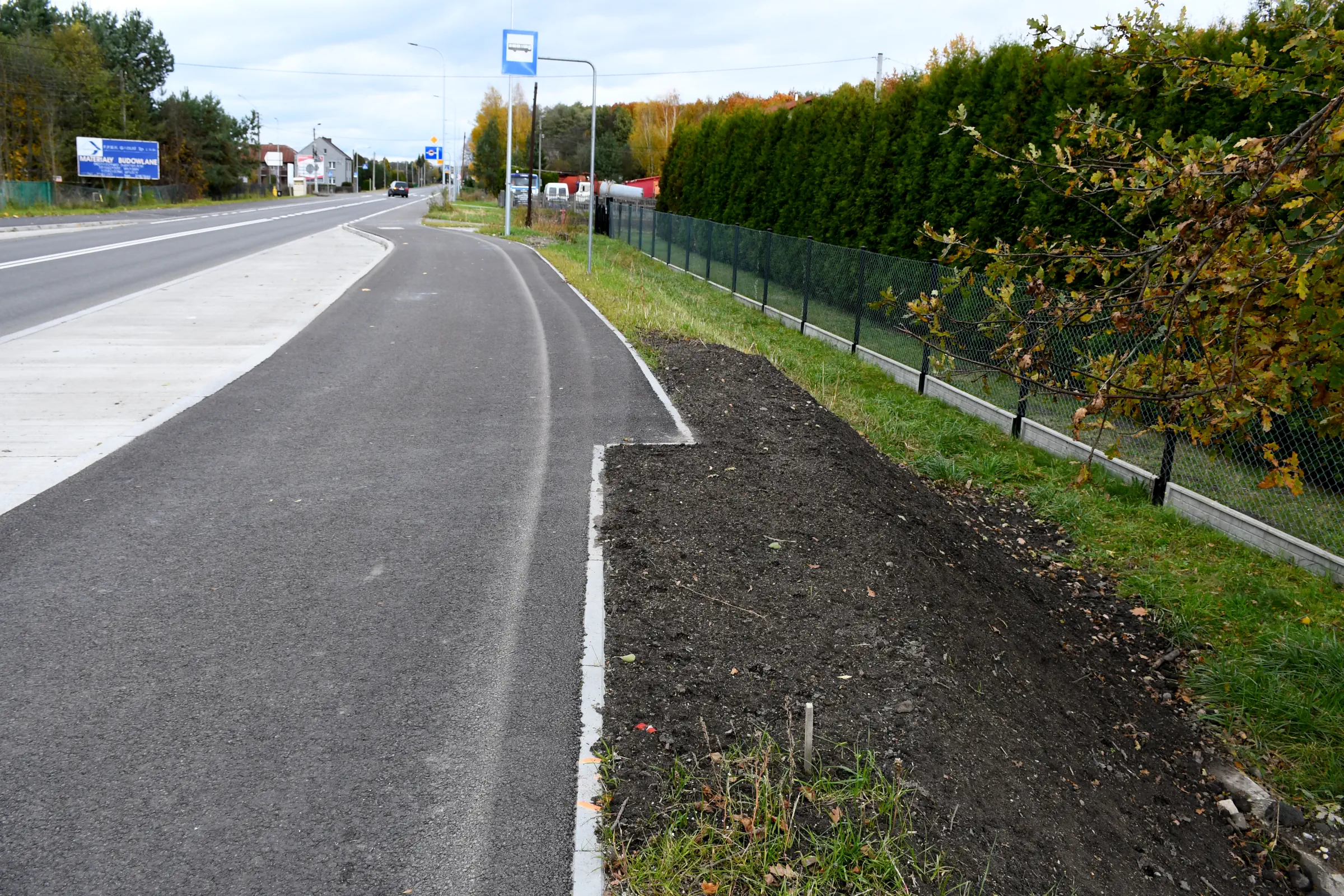 Niedziela, 5 październikaCiąg pieszo-rowerowy gotowy – warstwa ścieralna po stronie wschodniejCiąg po przeciwnej stronie gotowy częściowoFragment ciągu w kierunku centrum po stronie zachodniej jeszcze bez warstwy ścieranejZjazd na drogę bocznąZjazd na parking przy sklepieZjazd na ul. Fityki przed ułożeniem warstwy ścieralnejCiąg pieszo-rowerowy przy zjeździe na ul. Fityki gotowyPo drugiej stronie jezdni dokończono nawierzchnię ciągu pieszo-rowerowegoFragment obok BrandysówkiŁączenie gotowych odcinków – tj. z warstwą ścieralnąNiedziela, 26 października Linia podwójna ciągłaPrzed „Masorzem” i „Spożywczokiem”Zjazd do budynku wielorodzinnegoLinia krawędziowa ciągłaKostka integracyjna przed przejściem dla pieszychZ perspektywy wyjazdu z ul. FitykiZnak ostrzegawczy na wysięgnikuLinia krawędziowa ciągłaLinia pojedyncza przerywana