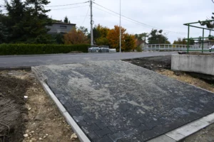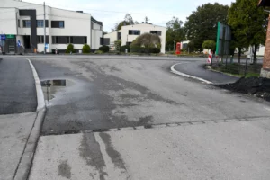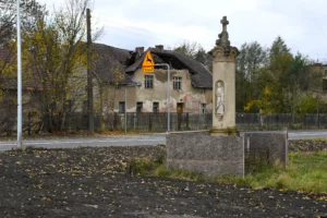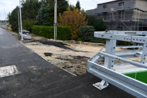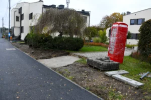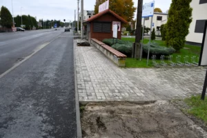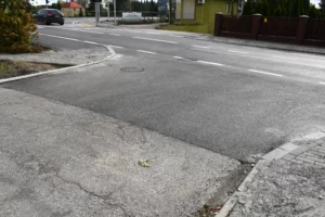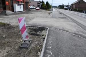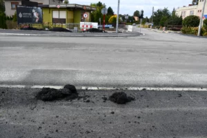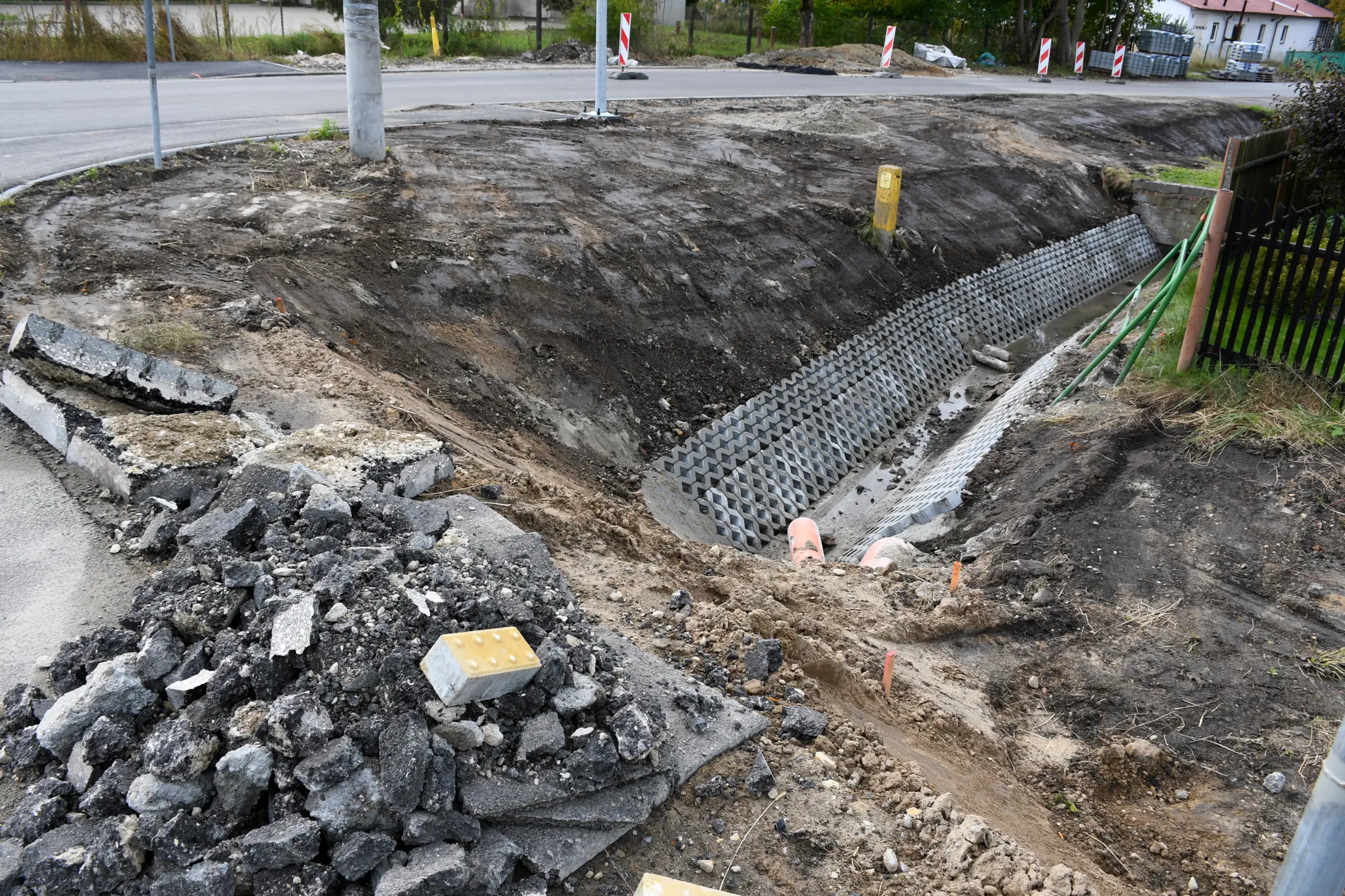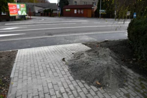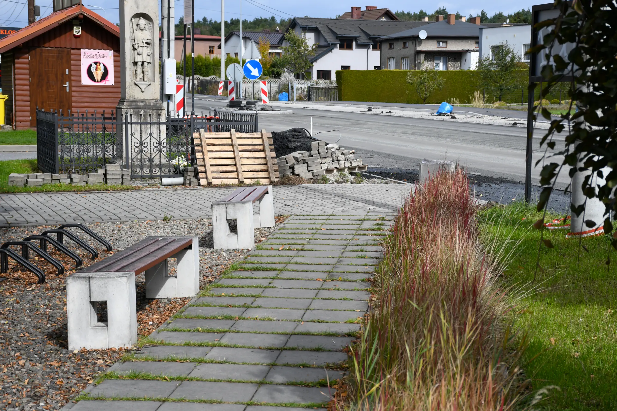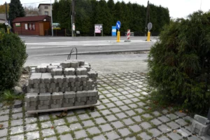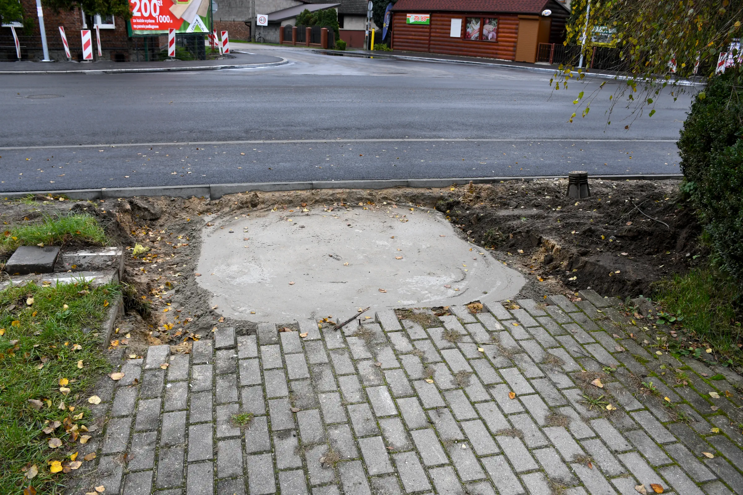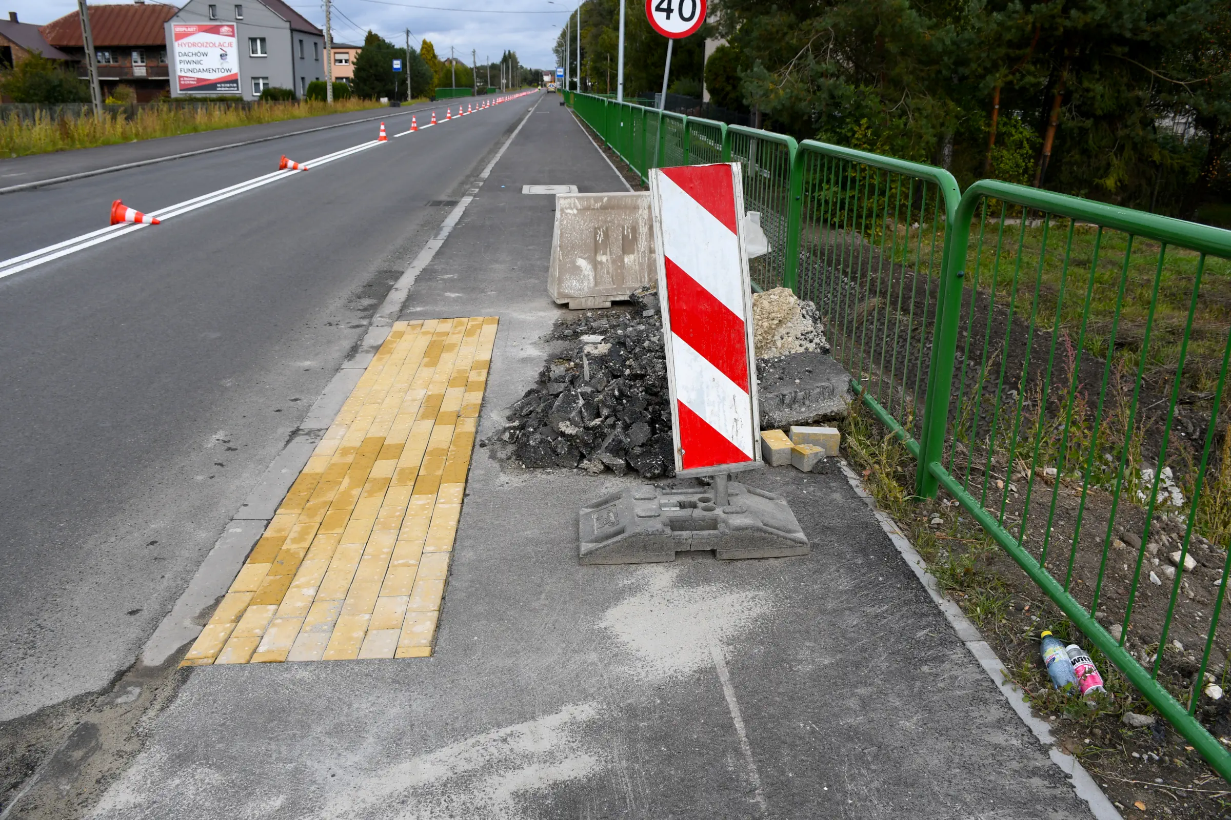 Piątek, 3 październikaBudimex ok. 19.00 rozpoczął układanie warstwy ścieralnej przy głównym skrzyżowaniuPrzy zjeździe na ul. RybnickąOd strony ul. RybnickiejOd strony mostu nad ciekiem „S”Działania trwały do późnych godzin, ale planu na ten dzień nie wykonano – asfalt wylano tylko do okolic sklepu SpożywczokNiedziela, 5 październikaPozostałości po pracach bitumicznychCiąg pieszo-rowerowy po stronie wschodniej z warstwą ścieralnąNa przełomie września i października kontynuowano montaż sygnalizacji świetlnejSygnalizatory na wysięgniku – jadąc od strony KobióraJedna z kamer do monitorowania ruchu na drodzeBałagan na ciągu pieszo-rowerowym po nocnych działaniachSkrzynka sterownika przy przejściu dla pieszychTylko najstarsi pamiętają, że przed biblioteką rosło kiedyś drzewo (!)Pojedynczy sygnalizator ze strzałką nad pasem w stronę KobióraW tym miejscu powstaną schody do stacji redukcyjno-pomiarowej gazuŚrodek jezdni z perspektywy nieoznakowanego jeszcze przejścia dla pieszychWidok w drugą stronęZjazd na ul. RybnickąPrzejście dla pieszych przy ul. Rybnickiej również regulowała będzie sygnalizacja – to nowośćSygnalizacja z perspektywy wyjeżdzających z ul. RybnickiejŁączenie z chodnikiem w trakcie budowyPrzebudowa ul. Rybnickiej przy ośrodku zdrowiaSygnalizator ze strzałką nad wyjazdem z ul. RybnickiejPrzejście przez ul. RybnickąSkładowisko obok piekarniWjazd na parking publiczny za ośrodkiem zdrowiaUłożono nowy chodnik przed ośrodkiem zdrowiaZjazd do garażuTutaj jeszcze niedawno stała wiata autobusowa przystanku „Gostyń Centrum” (kier. Tychy/Łaziska)Dobrze widać różnicę terenuZ perspektywy wejścia do bibliotekiWysepka w dość opłakanym stanieWszystkie wysięgniki na jednym zdjęciuZ perspektywy ul. TyskiejZjazd na ul. Tyską jeszcze bez warstwy ścieralnejPas między jezdniamiTeren wokół Kolumny Trójcy Świętej wyglądał „interesująco”Ogrodzenie ochroniło zabytekTeren przy Słodkiej ChatceEfekty pierwszych prac porządkowychBrakujący fragment nawierzchni wjazdu na parking za DKNiedziela, 12 październikaFragment jezdni ul. Rybnickiej z pierwszą warstwą nowego asfaltuZjazd na parkingZjazd na ul. Rybnicką gotowy w połowie (warstwa ścieralna) – bez zamykania drogiCzy finalnie dobrze będzie to wyglądało… to się okażeSkarpa i ciąg pieszo-rowerowy z warstwą ścieralnąKury wróciłyOdbudowano schody do stacji redukcyjno-pomiarowejPrzygotowania do połączenia ciągu pieszo-rowerowego z chodnikiemTen chodnik (prowadzący pierwotnie do poczty) to teraz najstarsza utwardzona nawierzchnia w centrumTeren wokół Kolumny Trójcy Świętej uprzątniętoPrzygotowania do montażu oświetleniaChodnik do przedszkola odbudowany, dojście do zabytku obok jeszcze nieWyregulowano nawierzchnię przy Słodkiej ChatceZ perspektywy głównego wejścia do Domu Kultury w GostyniChodnik podłączony do ciągu pieszo-rowerowegoPrzy zjeździe do Zagrody ŚląskiejZaplecze budowy za piekarniąZamontowano przyciski zgłoszeniowe dla pieszychDroga w okolicy mostuRzut oka na park maszyn z perspektywy mostuNiedziela, 26 październikaDroga główna i widok na domy położone przy ul. Tyskiej w tlePrzy nowej zatoce autobusowej została tylko przenośna toaletaStrzałka w lewo – zjazd na ul. RybnickąSpojrzenie na główne skrzyżowanieSygnalizacja jest gotowa, ale jeszcze nie kieruje ruchemRów melioracyjnyZjazd na ul. RybnickąNa środku bardzo szerokiej jezdniPrzejście dla pieszych – ul. PszczyńskaŚrodek jezdni z perspektywy przejścia dla pieszychSkrót z ul. Rybnickiej do przejścia dla pieszych podłączony na nowoLinia przystankowa na ul. RybnickiejTutaj będą zatrzymywały się autobusy linii M12 i 294Wjazd na parking za ośrodkiem zdrowiaTeren przy piekarni na rogu Pszczyńskiej i RybnickiejPrzejście dla pieszych – ul. RybnickaRóżnica poziomów na przykładzie przedpola piekarni „Tradycja”Niewielki pas buforowy między ciągiem pieszo-rowerowym a jezdnią główną czeka na wypełnienieDojście do schodów zostało ponownie utwardzoneWysepka przed bibliotekąZejście do przyziemia budynkuŁącznik z placem centralnymPrzejście obok budki z książkami, którą zabezpieczono na zimęChodnik prowadzący do przedszkola podłączony do ciągu pieszo-rowerowegoWidok na wysepkę przy bibliotece od strony północnejWysepkę wyposażono w oznakowanie pionoweStrzałka w lewo wskazuje na zjazd na ul. Tyską – pas środkowyLinia krawędziowa ciągła i znak tonażowy na wysięgnikuDo ciągu pieszo-rowerowego podłączono też chodnik przy niewielkim parkingu obok DKOznakowanie poziome i pionowe wyspy przed DKWidok w drugą stronę