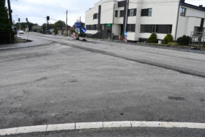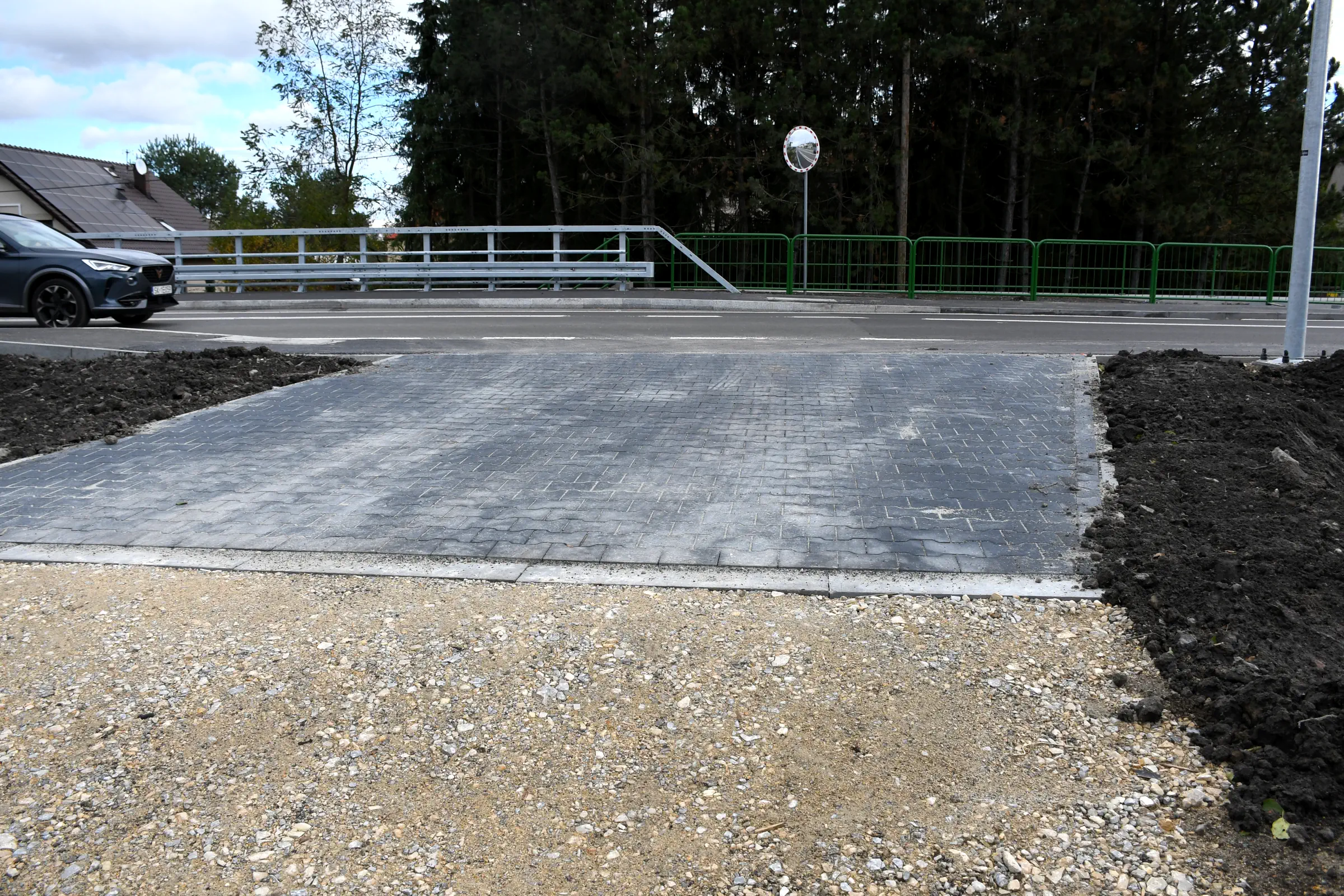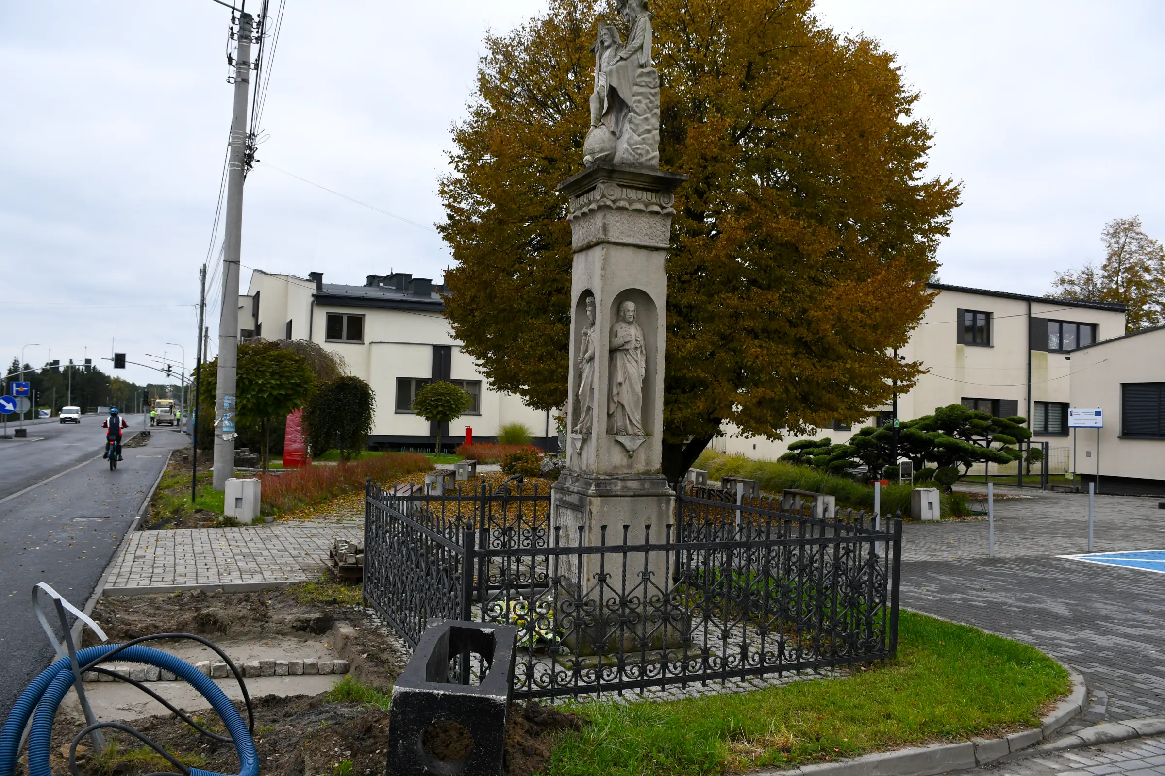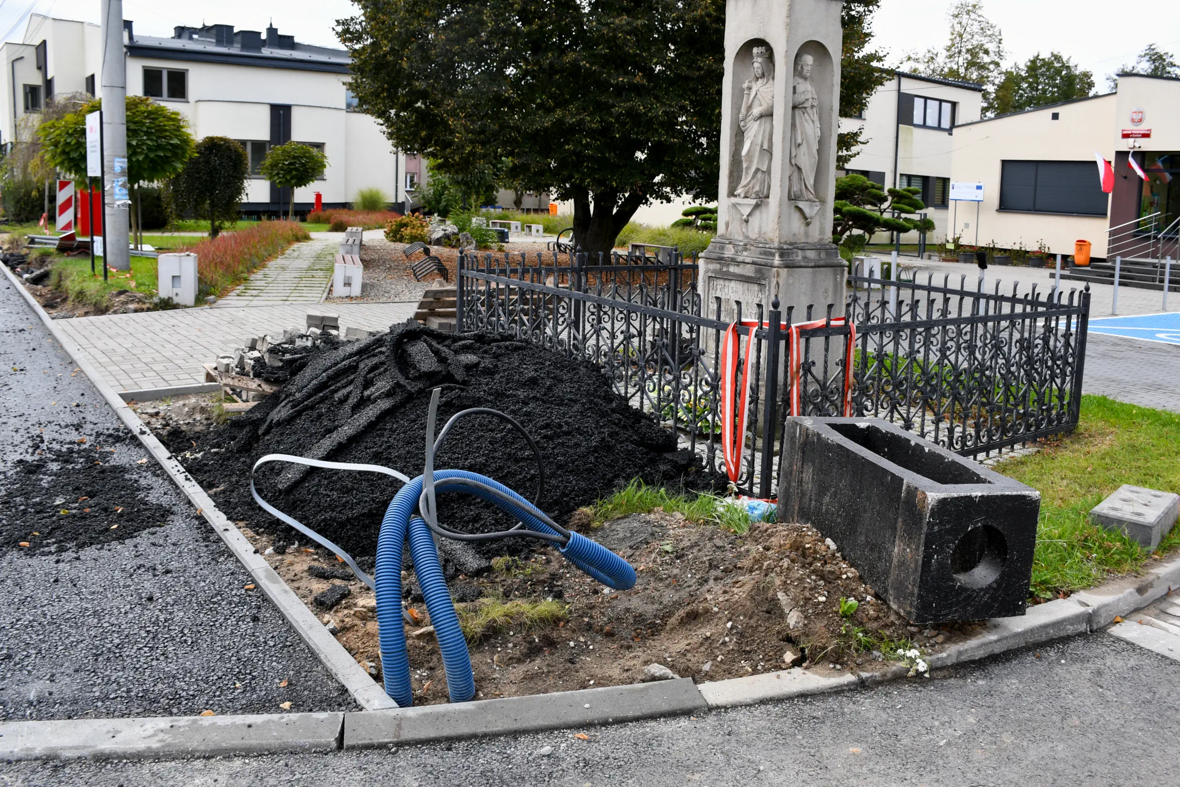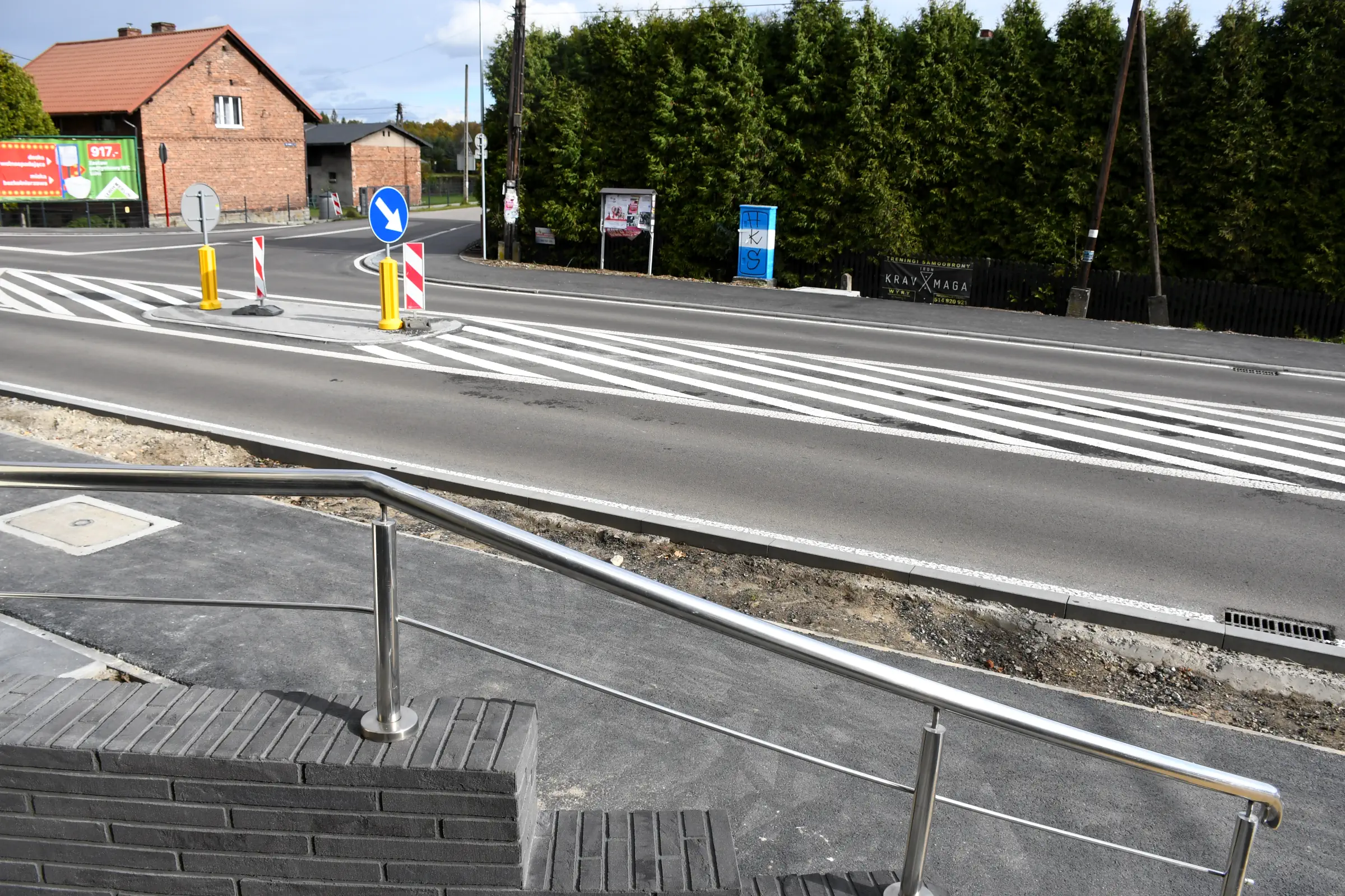 6. Sporo zmieniło się też przy skrzyżowaniu ul. Pszczyńskiej z ul. Rybnicką i ul. Tyską tuż obok gostyńskich budynków użyteczności publicznej. Na przełomie września (30 września) i października przeprowadzono montaż sygnalizacji świetlnej w centrum, która po zakończeniu prac zaczęła działać w trybie ostrzegawczym (migające światło żółte), informując kierowców o zachowaniu szczególnej ostrożności do czasu pełnego uruchomienia w listopadzie. W kolejnych dniach, 3-4 października (piątek i sobota), ułożono warstwę ścieralną jezdni głównej, a w ciągu następnego tygodnia dokończono prace przy nawierzchni ciągu pieszo-rowerowego po stronie biblioteki. Poza tym wykonano warstwę ścieralną zjazdów na drogi publiczne i wjazdów na parkingi, przy czym zjazd na ul. Rybnicką zrealizowano w trybie wahadłowym, bez zamykania tej drogi na cały dzień. Pod koniec miesiąca wykonano oznakowanie pionowe i poziome odcinka z uwzględnieniem krótkiego fragmentu ul. Rybnickiej przed ośrodkiem zdrowia, gdzie wyznaczono linię przystankową dla linii autobusowych M12 i 294 jadących w kierunku szkoły. W międzyczasie zbudowano schody do stacji redukcyjno-pomiarowej gazu i uregulowano wysokość istniejących w centrum chodników z kostki brukowej.