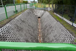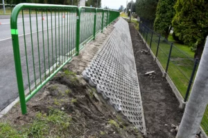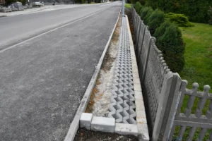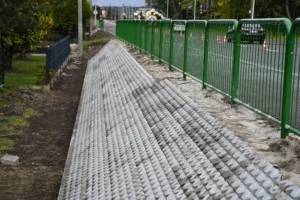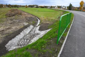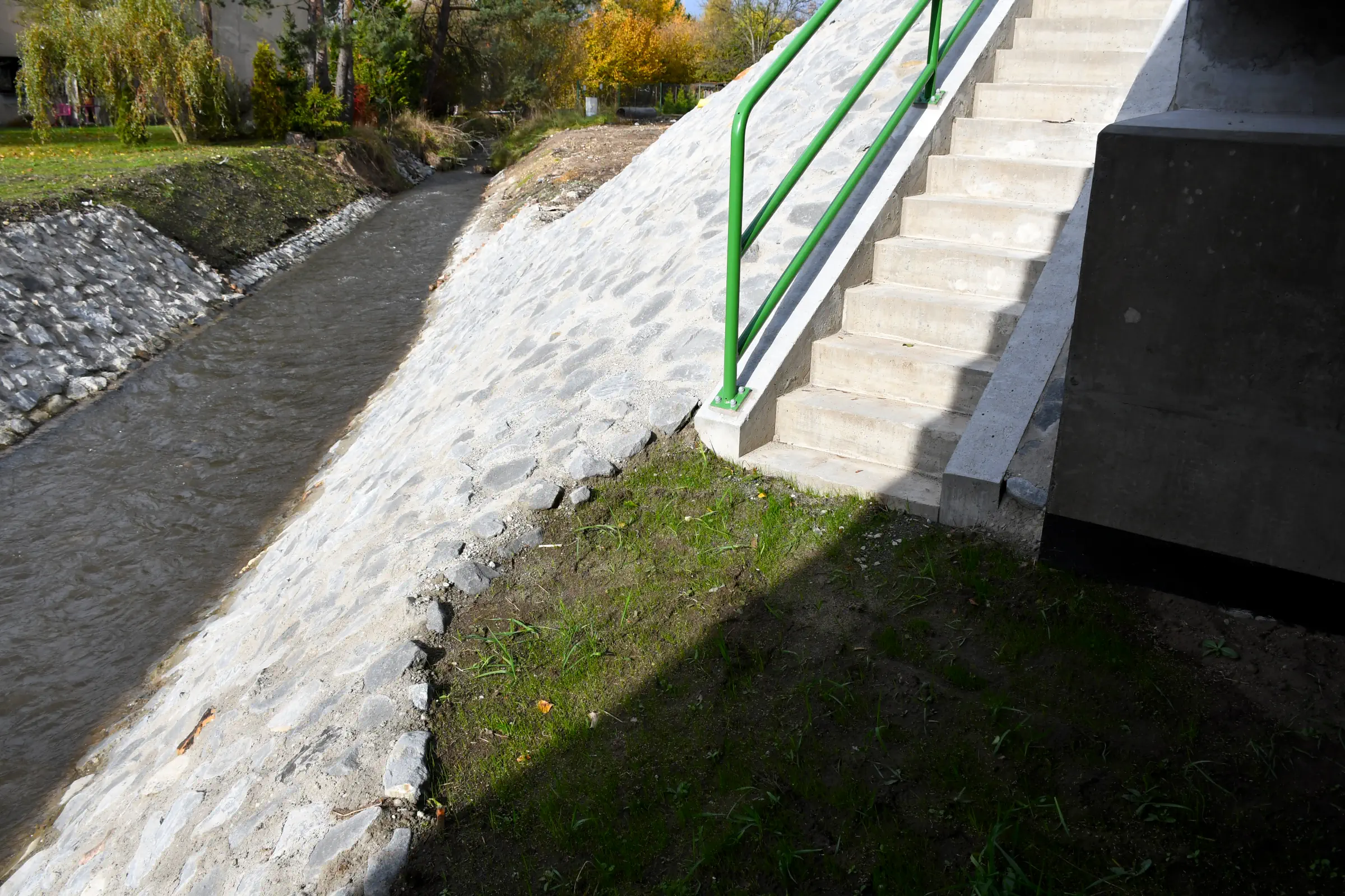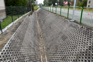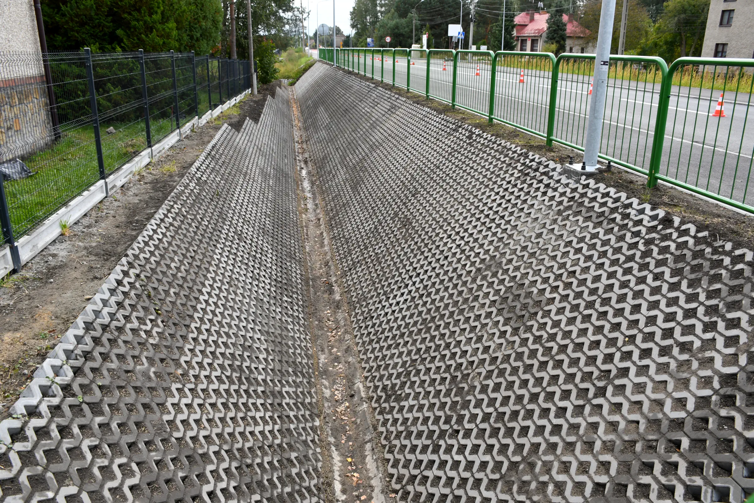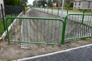 Niedziela, 5 październikaKoryto kanału od ul. RybnickiejKapa chodnikowa po naprawie dylatacjiNiedziela, 12 październikaZamontowano barierkiJesienne barwyNiedziela, 26 październikaMagazyn barierek drogowych na mościeMur oporowy przy drodze bocznej i teren poniżejSkarpa po stronie zachodniejZ perspektywy schodów monolitycznychUmocnione koryto ciekuPatrząc w stronę centrum GostyniNa drugim planie lustro drogowe pod kątem wyjazdu z drogi bocznej