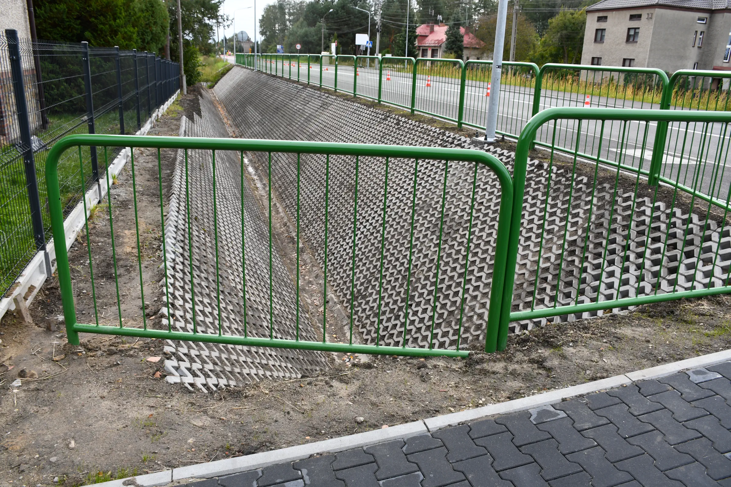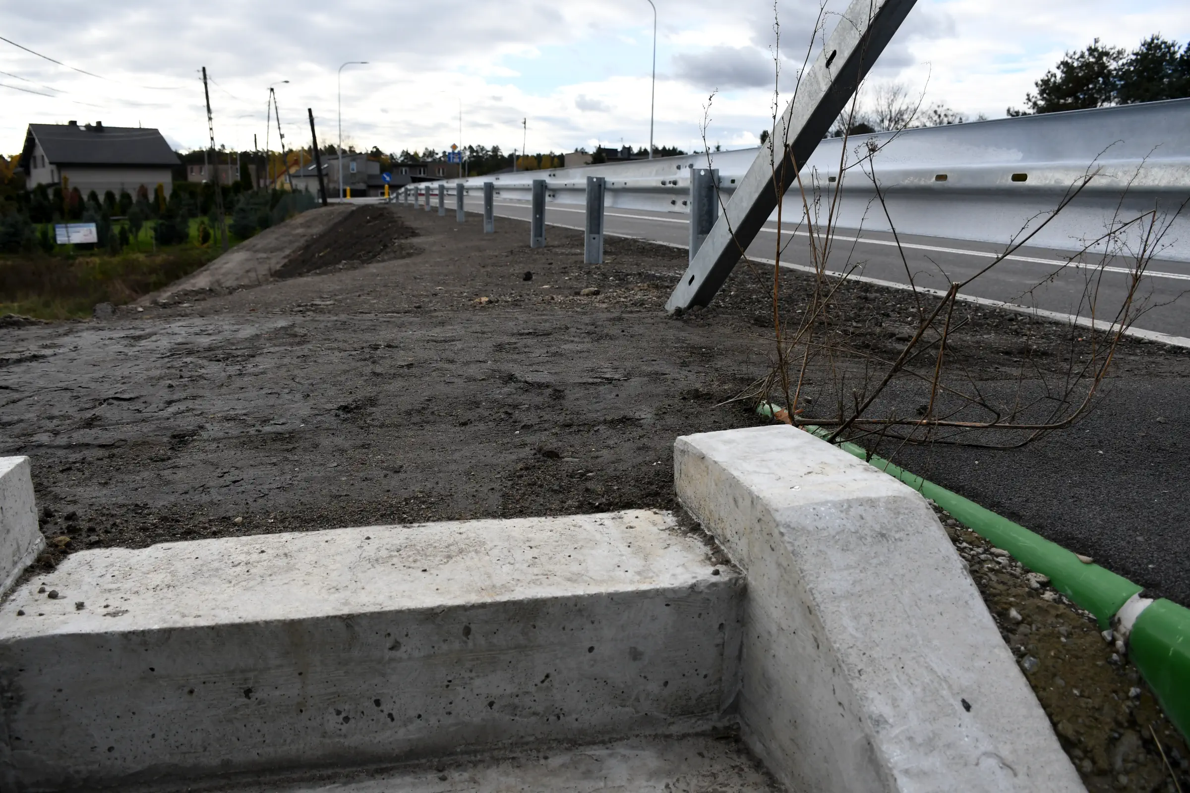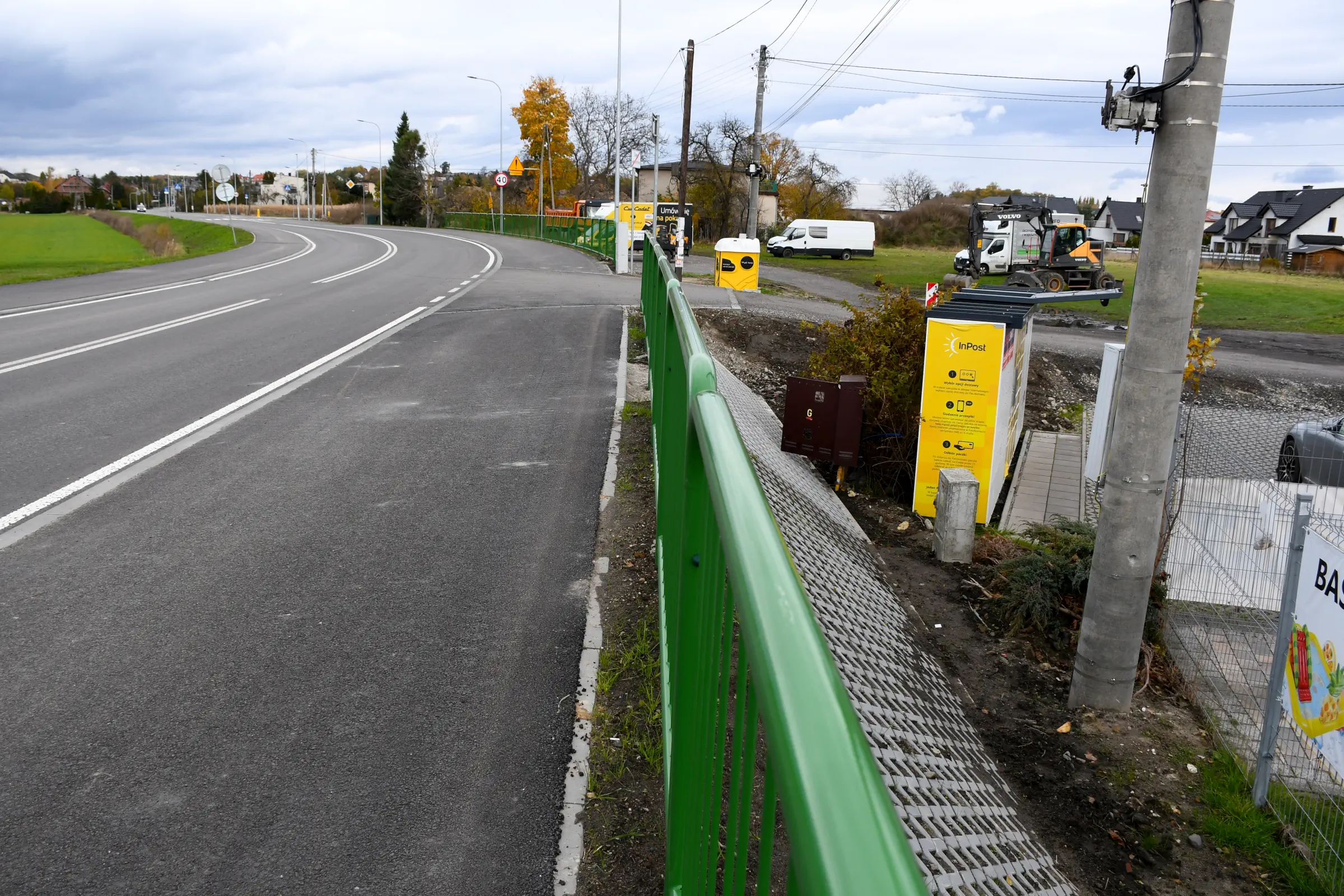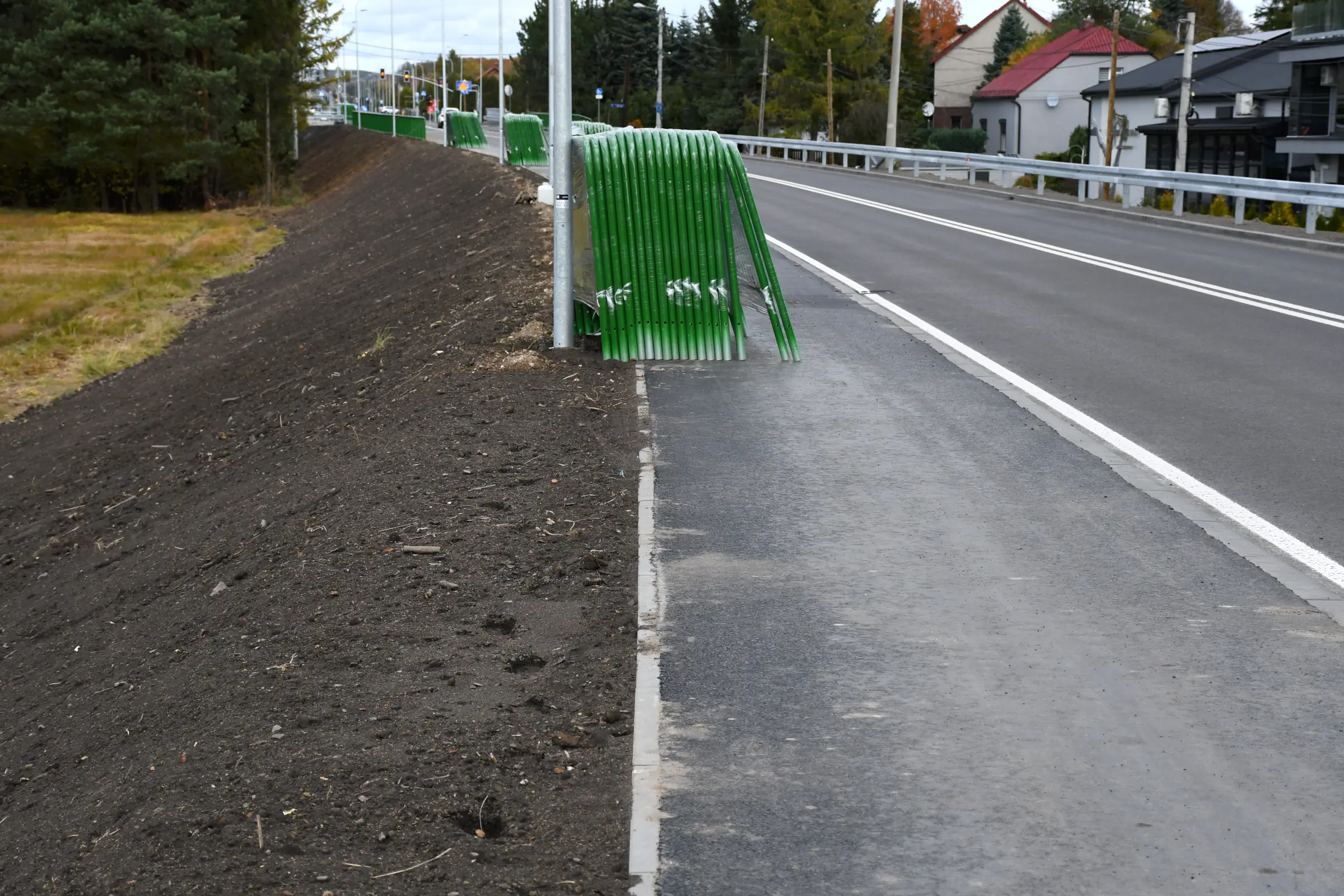Niedziela, 5 październikaOdcinek zyskał warstwę ścieralną – jezdnia główna i ciąg pieszo-rowerowy przy ul. Pszczyńskiej bocznejNieukończony zjazd na ul. Pszczyńską bocznąFormowanie skarpyCiąg pieszo-rowerowy po stronie doliny rzeki Gostynki bez warstwy ścieralnejZamontowano fundamenty słupów oświetleniowychPoprawki przy ciągu pieszo-rowerowymŁączenie dwóch odcinków głównej jezdni z warstwą ścieralnąNiedziela, 12 październikaZjazd na drogę boczną w budowieZjazd do posesji prywatnej gotowySkarpa przy Munimentum PointPrzy zjeździe na ul. Pszczyńską bocznąZamontowano słupy oświetlenia ulicznego wraz z oprawamiSkarpa po stronie zachodniej……i wschodniejDroga z zamontowanymi słupami oświetlenia ulicznego – kierunek centrum GostyniSłupy nie zostały jeszcze podłączone do sieciNiedziela, 26 październikaLustro drogowe, które ułatwi wyjazd z drogi bocznej po przeciwnej stronieSkarpę obsypano dodatkową warstwą ziemi i obsiano trawąDojście do schodów serwisowych mostuSkarpa przy Munimentum PointWyjazd z ul. Pszczyńskiej bocznejBarierki na tle doliny rzeki GostynkiPo stronie wschodniej zamontowano bariery energochłonnePrzygotowania do montażu barierekOdwiert pod betonową podstawęNa miejsce nowe barierki przywieziono kilka dni wcześniejNa upartego tym poboczem można przejść – jest szerzej niż wcześniejOznaczenie producentaLinia krawędziowa ciągłaSkarpa obsypana dodatkową warstwą ziemiBariery energochłonne na skarpie zintegrowano z zabezpieczeniem mostu nad Gostynką