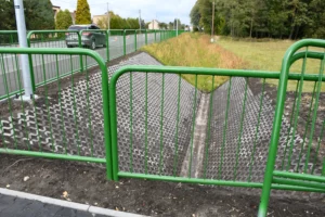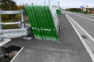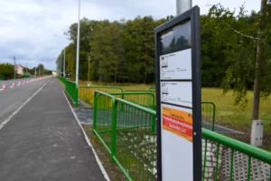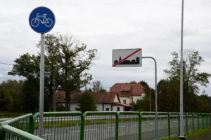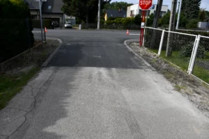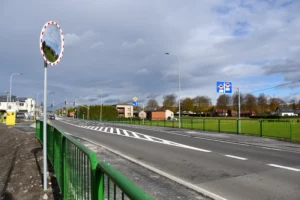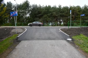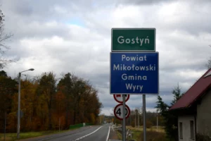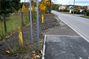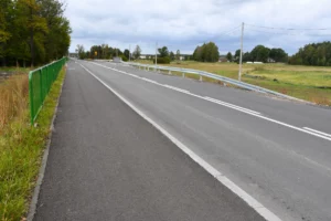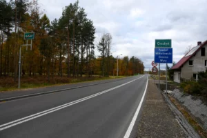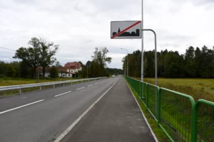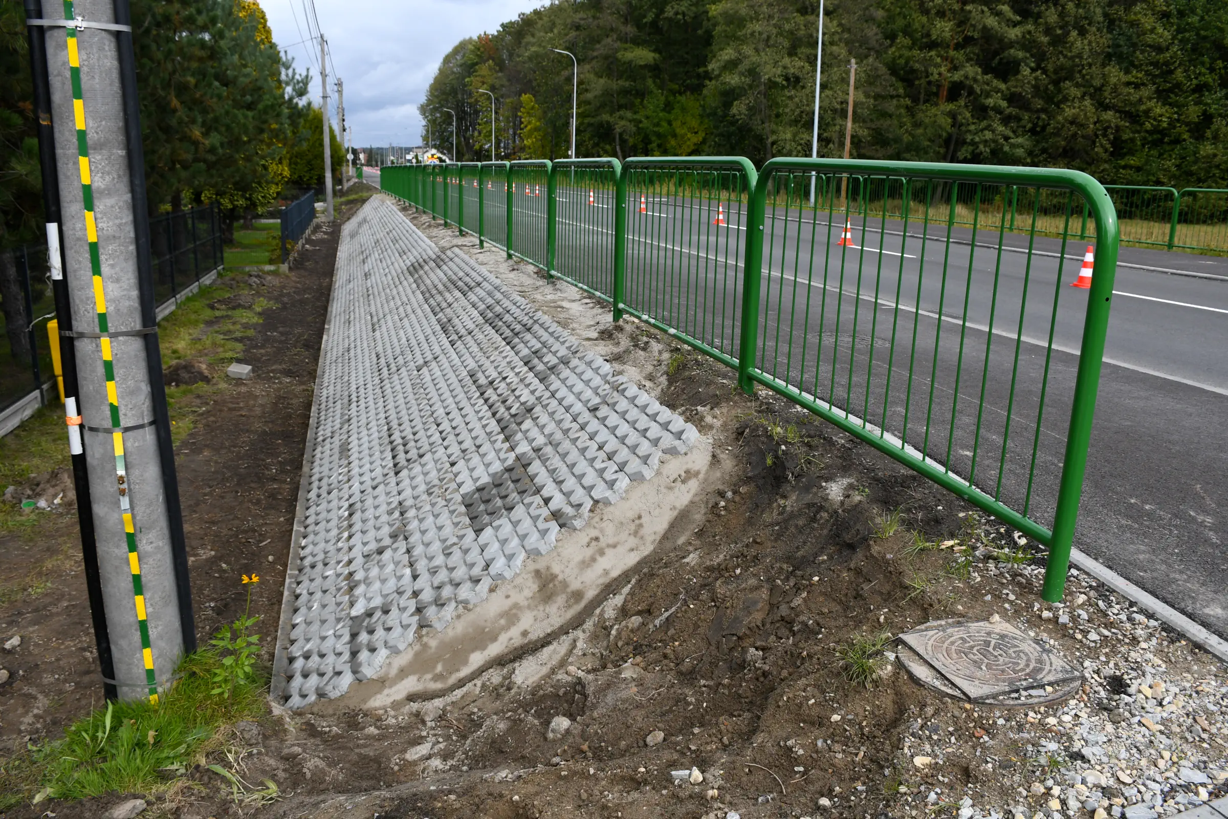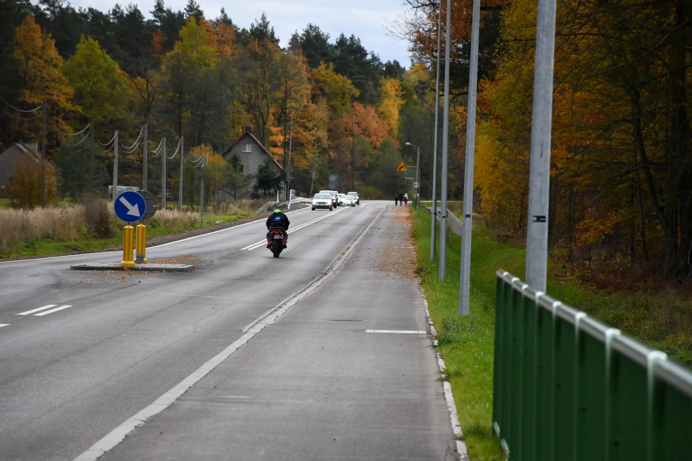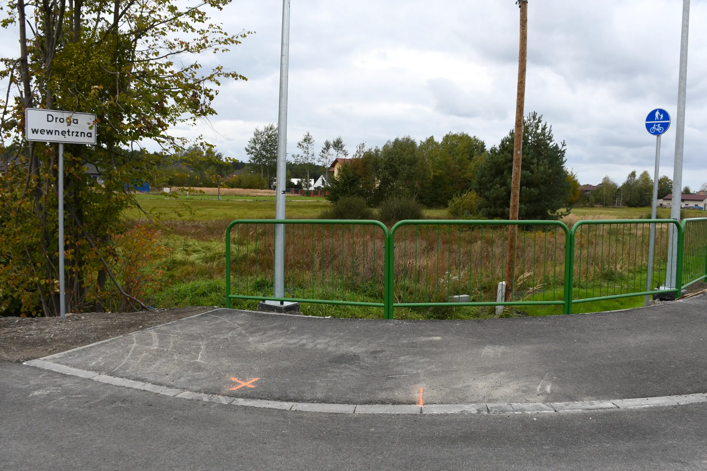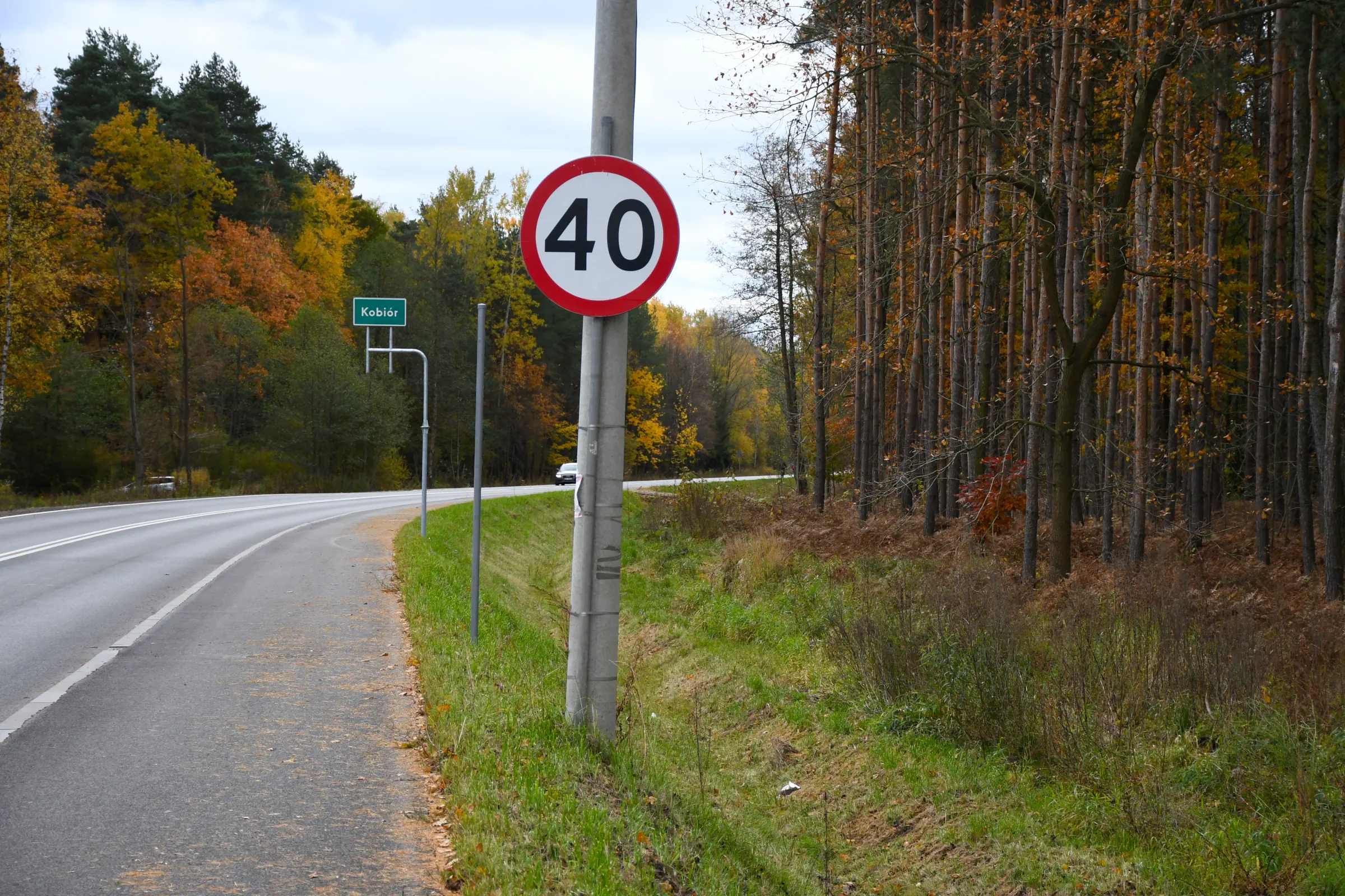 Niedziela, 5 październikaBudowa palisady przy zjeździe na ul. Miarową powiatowąWzdłuż odcinka do Kobióra zamontowano elementy oznakowania pionowegoSchody do posesji gotoweW stronę skrzyżowania z ul. MiarowąW kierunku leśniczówki i gajówkiPóki co tylko linia osiowaOznakowanie przystanku – tymczasowe i stałeW tym miejscu oznaczone zostanie przejście dla pieszychOznakowanie ciągu pieszo-rowerowego na odcinku od ul. Miarowej do ul. ZaleśnejJest też informacja o dzikich zwierzętach na odcinku leśnymWszystkie elementy zostały zamontowane lub namalowaneLinia pojedyncza przerywanaKoniec terenu zabudowanego, początek drogi dla rowerówPrzy zjeździe na ul. ZaleśnąPrzy ul. Zaleśnej – kierunek centrumPrzy ul. Zaleśnej – kierunek Kobiór i widok na przedwojenną zabudowęKoniec obszaru zabudowanego za zjazdem na ul. Zaleśną w kierunku KobióraPoczątek obszaru zabudowanego przed zjazdem na ul. Zaleśną jadąc do centrum GostyniPrzy leśniczówceZamontowano docelowe oznakowanie wysepki spowalniającejWysepka przy leśniczówceLinia osiowa podwójna ciągła i przerywana obok siebieDwa znaki D-42 – tymczasowy (obok wysepki) i docelowy (w oddali)Dalej w stronę KobióraBarierki przy moście nad ciekiem leśnym w pobliżu gajówkiPrzy gajówceNiedziela, 26 październikaLinie wokół wysepkiZjazd na ul. Miarową powiatowąBrukowane zjazdy na posesje gotoweZjazd na ul. Miarową gminną jeszcze niegotowyMiejsce na wiatę przystankowąPrzejście dla pieszych oznakowaneUformowano końcowo skarpę wzdłuż chodnika do przedszkola i żłobkaPrzy zjeździe do przedszkola i żłobkaLinia krawędziowa ciągłaPrzepust pod ul. ZaleśnąPrzejście dla pieszych przy ul. Zaleśniej jeszcze bez pasówRów melioracyjny po stronie zachodniejZjazd do leśniczówkiWysepka jeszcze bez oznakowania poziomegoNie ma linii krawędziowej po stronie zachodniej jezdni ze względu na kanał ściekowyNiebezpieczny zakręt w prawoOznakowanie pionowe – elementy tymczasowe i doceloweWjazd do KobióraWjazd do GostyniNie tylko granica miejscowości, ale też gminy i powiatu