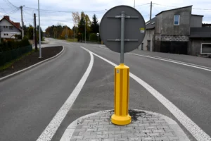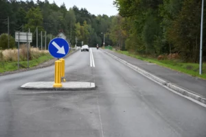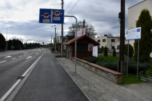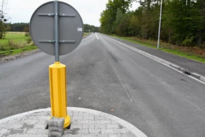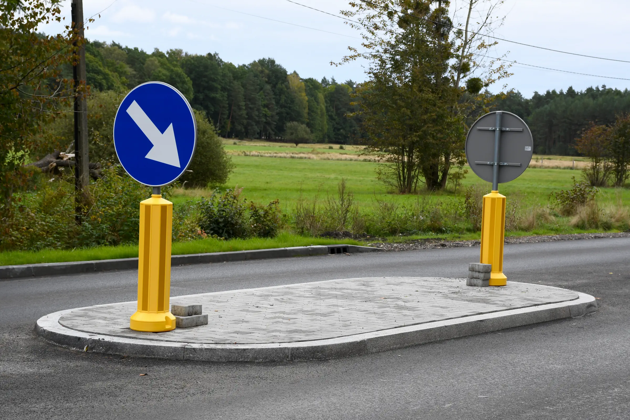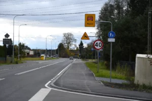 8. Na odcinku od okolic zatoki autobusowej przystanku „Gostyń Łuczników” do granicy z Wyrami wykonano oznakowanie pionowe i poziome.