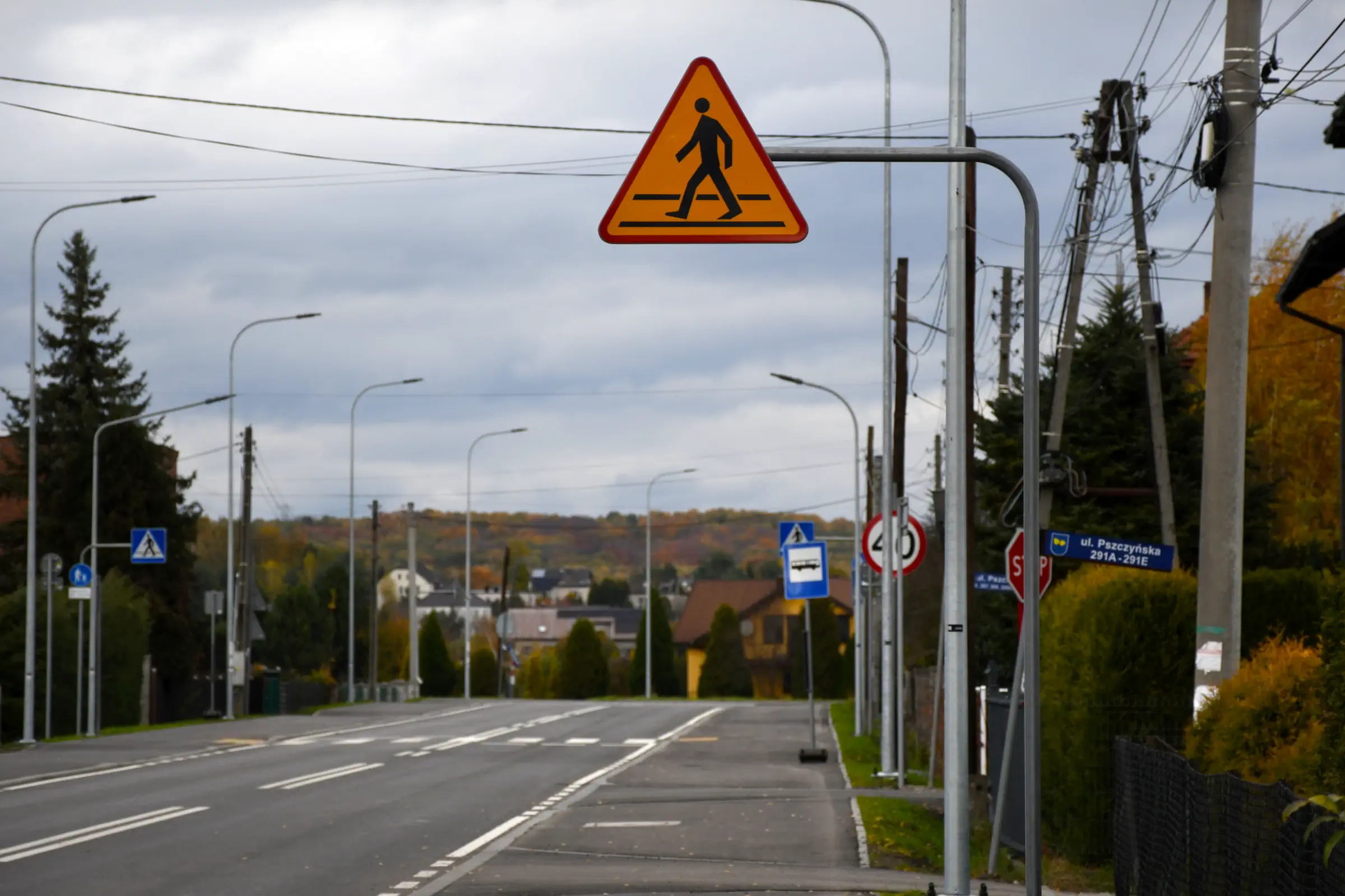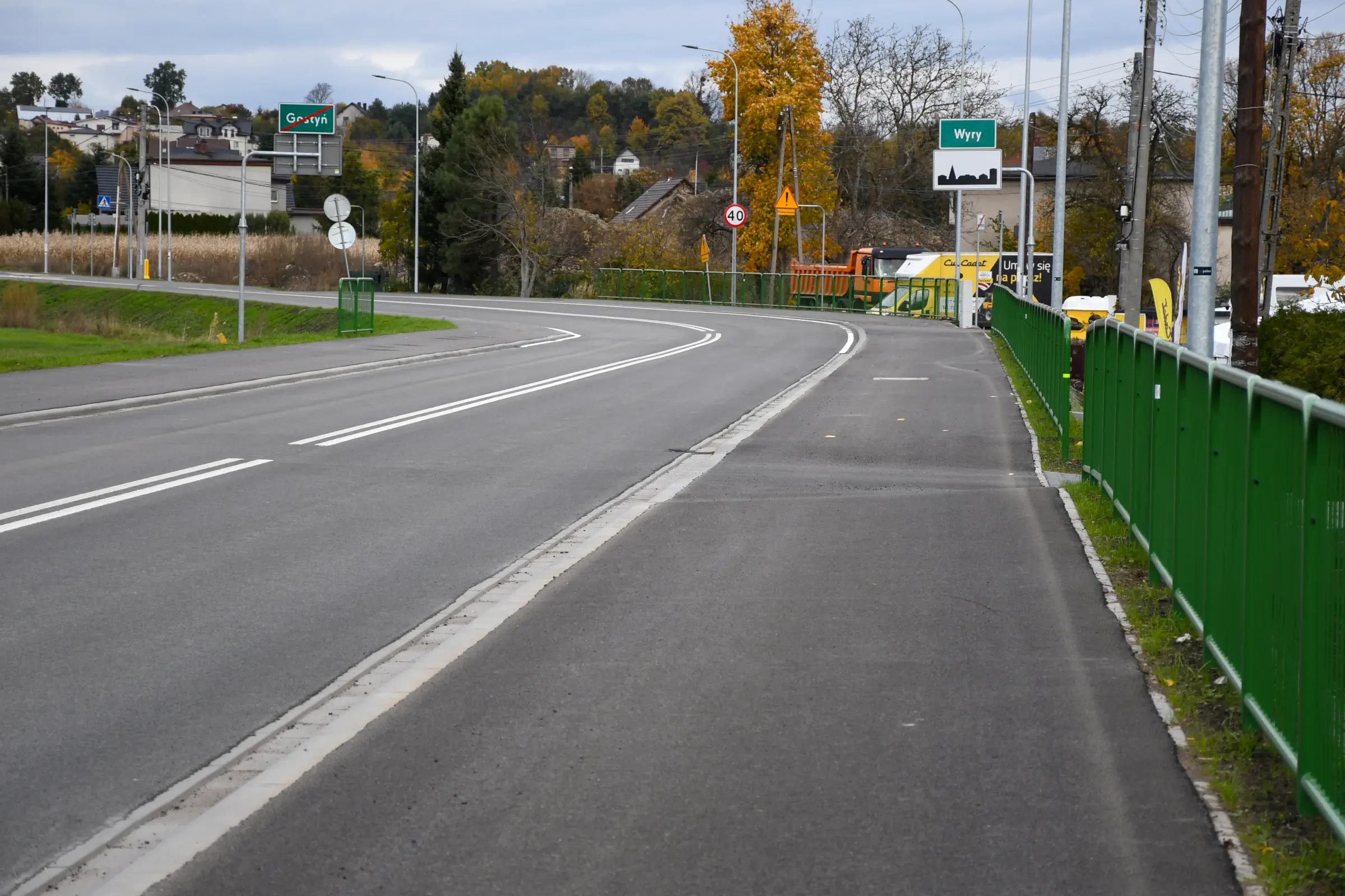 Niedziela, 5 październikaMalowanie pasówW ostatnich tygodniach podwykonawcy Budimexu pracowali również w niedzieleOdcinek przy OSP GostyńZjazd na ul. ŁucznikówW stronę centrum GostyniW stronę granicy z WyramiKostka integracyjna przy przejściu dla pieszych obok ul. ŁucznikówPrzejście dla pieszych jeszcze nieoznaczoneUmocnienie rowu melioracyjnego przy zjeździe na ul. ŁucznikówPobocze ul. Łuczników – skład materiałówLinia osiowa podwójna, ciągłaUmocniony rów melioracyjny po zasypce ażurówRów otoczono barierkamiTymczasowy przystanek „Gostyń Łuczników” – obowiązywał w czasie zamknięcia odcinka centralnego w piątek 3 październikaKolejny zestaw barierek po stronie zachodniej nad skarpą, którą utwardzono płytami ażurowymiW tym miejscu płyty nie zostały jeszcze obsypane ziemiąMalowanie pasów – ciąg dalszyZ perspektywy ul. Pszczyńskiej bocznejPrzy zjeździe na jedną z dróg bocznychPorządkowanie terenu – śmieci i odłamki zebrane z poboczaW stronę granicy z WyramiNiedziela, 26 październikaUporządkowano skarpę przy zatoce przystanku „Gostyń Łuczników”W tym miejscu linia osiowa podwójna ciągła„Gostyń Łuczników”. Przystanek jeszcze bez wiat przystankowychUwaga, straż wyjazdPobocze przy OSPPrzejście dla pieszych przy ul. ŁucznikówInformacje zarządu dróg i producentaLinia krawędziowa ciągłaLinia osiowa pojedyncza, przerywanaZjazd do lasu JastrzębiecNietypowy zjazd na styku dwóch oddzielnych posesjiPrzejście dla pieszych, znak na wysięgnikuPrzejście dla pieszych obok przystanku „Gostyń Pszczyńska”Ostatni ślad po wahadłach i sterowaniu ruchemBarierki i palisada obok zjazdu na ul. Pszczyńską bocznąLinia osiowa podwójna ciągłaW tym miejscu nie ma linii krawędziowych ze względu na kanał ściekowy po obu stronachKraniec Gostyni i spojrzenie w kierunku WyrWjazd do WyryObok Centrum Ogrodu i przygranicznego PaczkomatuWjazd do Gostyni. Środek jezdni i nadjeżdżający radiowóz policjiRów melioracyjny przy znakach wjazdowych. Lewy brzeg Gostyń, prawy brzeg Wyry