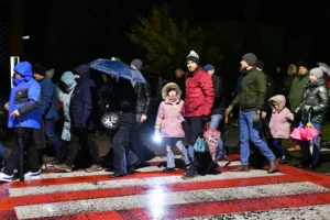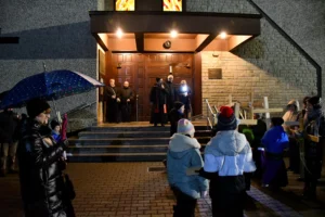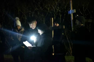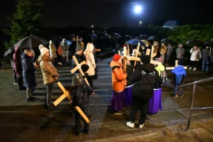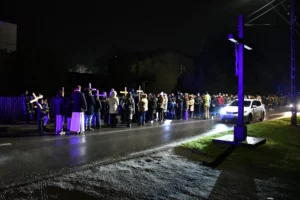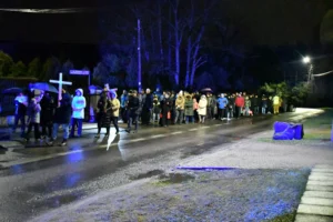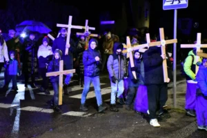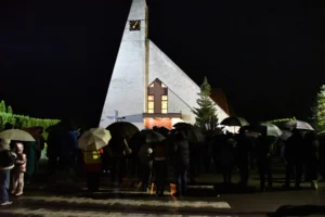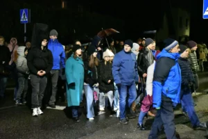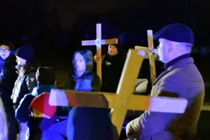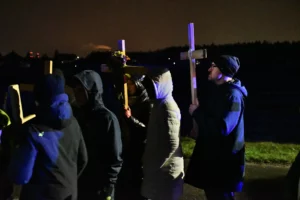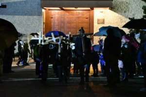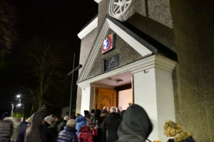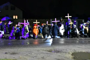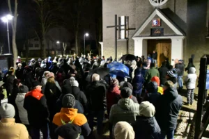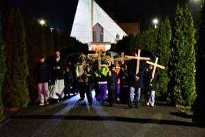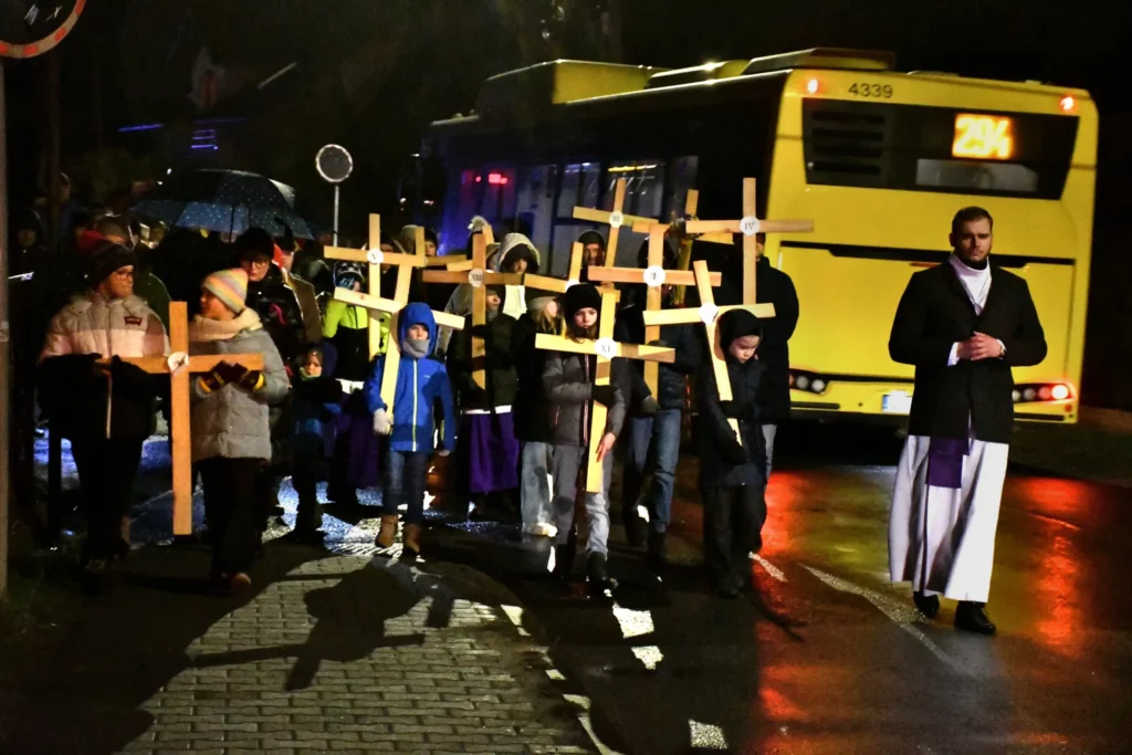 Przed wyruszeniem w drogę do czternastu stacji Drogi Krzyżowej część wiernych odebrała przygotowane wcześniej drewniane krzyże – te same, które towarzyszą Gostynianom od pierwszego przemarszu w 2022 roku – a inni, zgodnie z tą samą tradycją, zapalili przyniesione przez siebie świece, głównie ledowe. W tym roku najwięcej krzyży stacyjnych zdecydowało się nieść najmłodsze pokolenie parafian, choć nie zabrakło też nieco starszych wiekiem osób, które czynią to z najwyższą czcią każdego roku.