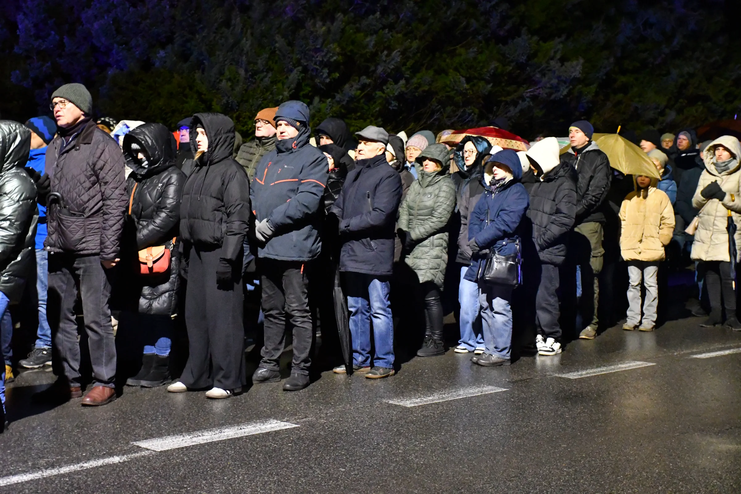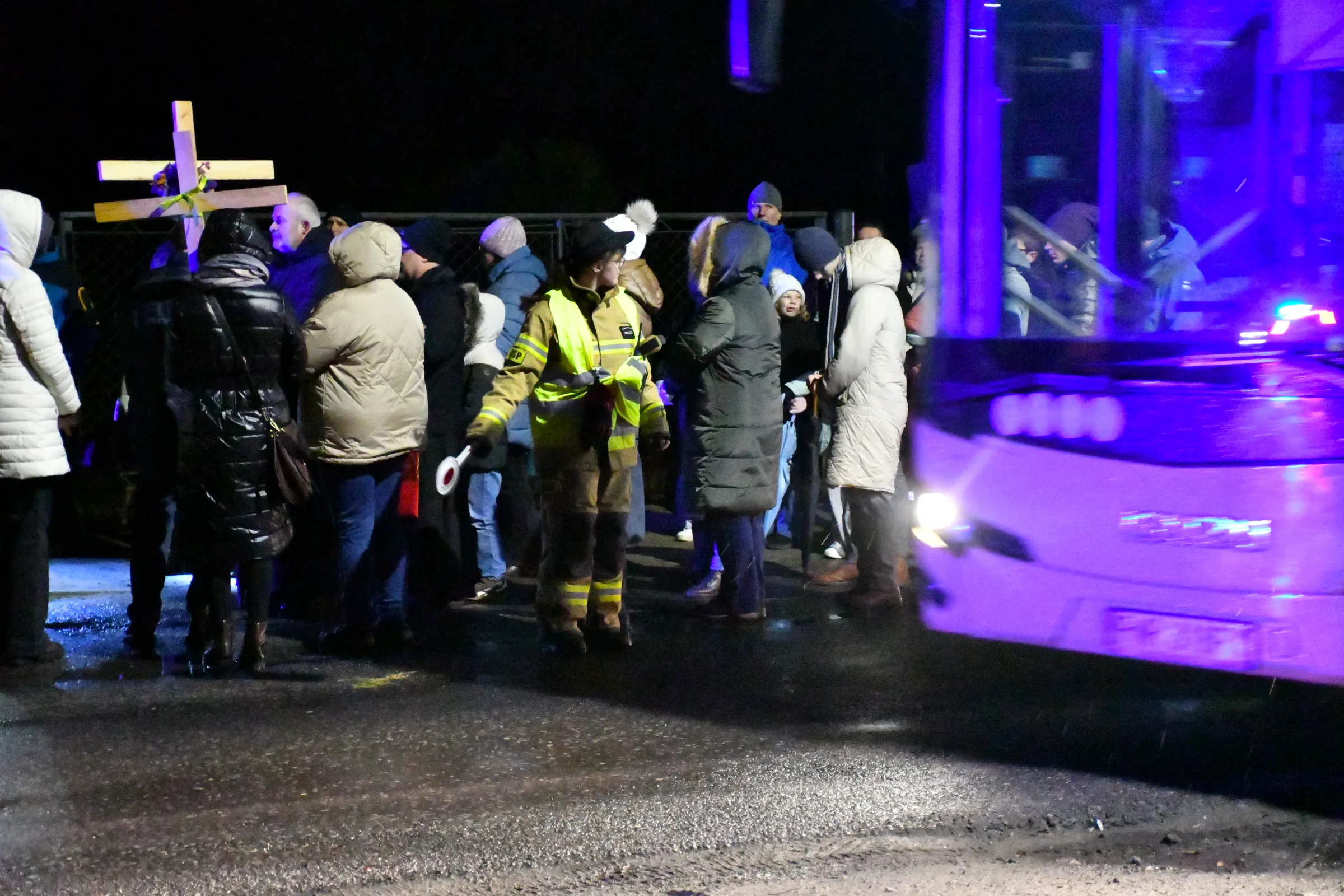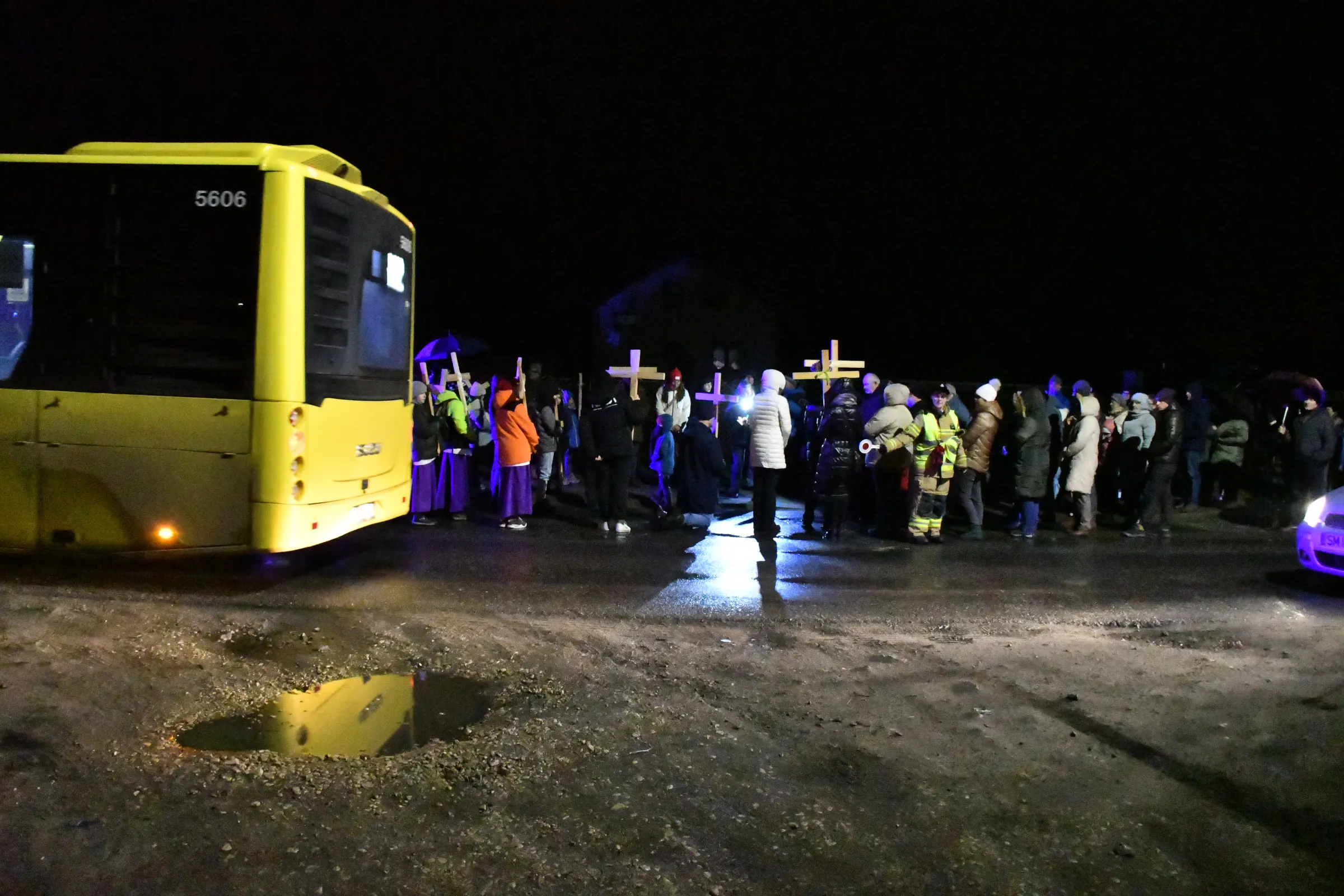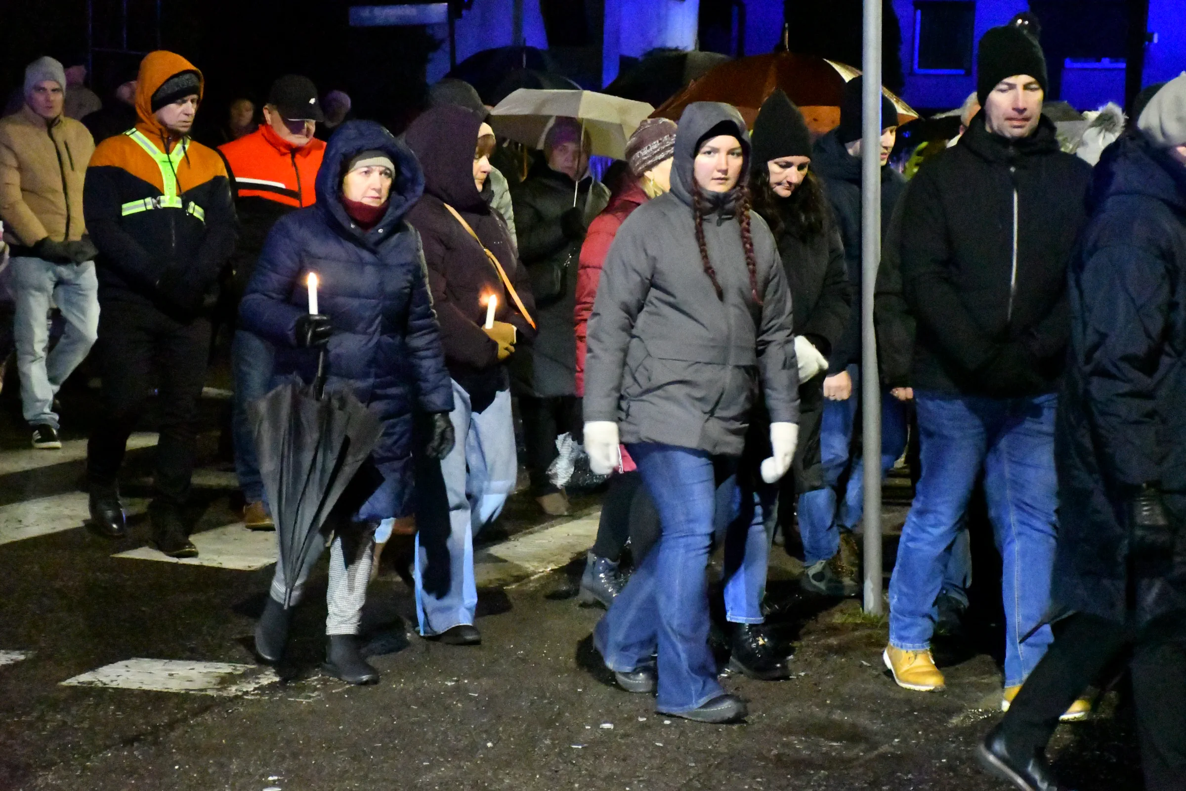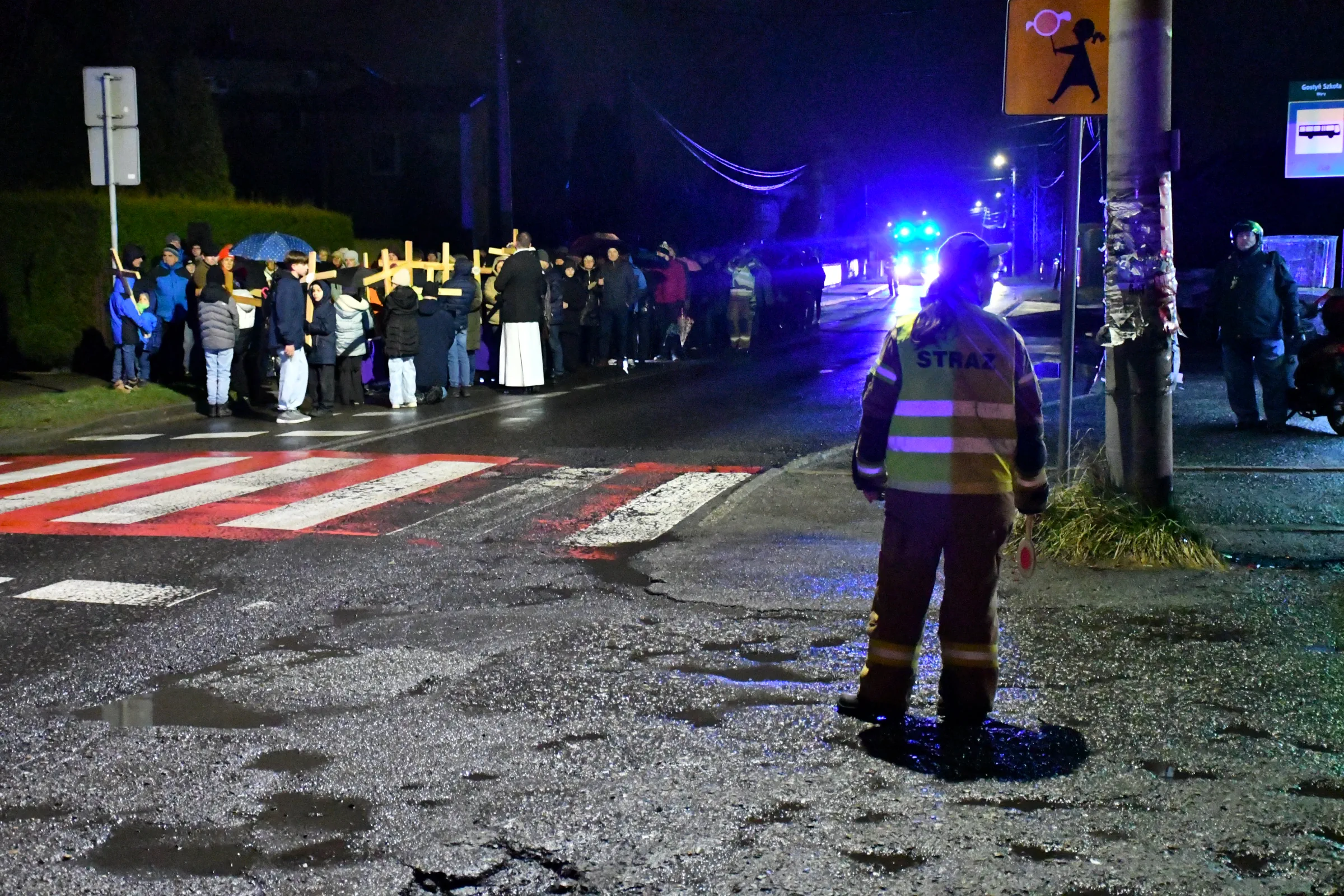 Przed wyruszeniem w drogę do czternastu stacji Drogi Krzyżowej część wiernych odebrała przygotowane wcześniej drewniane krzyże – te same, które towarzyszą Gostynianom od pierwszego przemarszu w 2022 roku – a inni, zgodnie z tą samą tradycją, zapalili przyniesione przez siebie świece, głównie ledowe. W tym roku najwięcej krzyży stacyjnych zdecydowało się nieść najmłodsze pokolenie parafian, choć nie zabrakło też nieco starszych wiekiem osób, które czynią to z najwyższą czcią każdego roku.