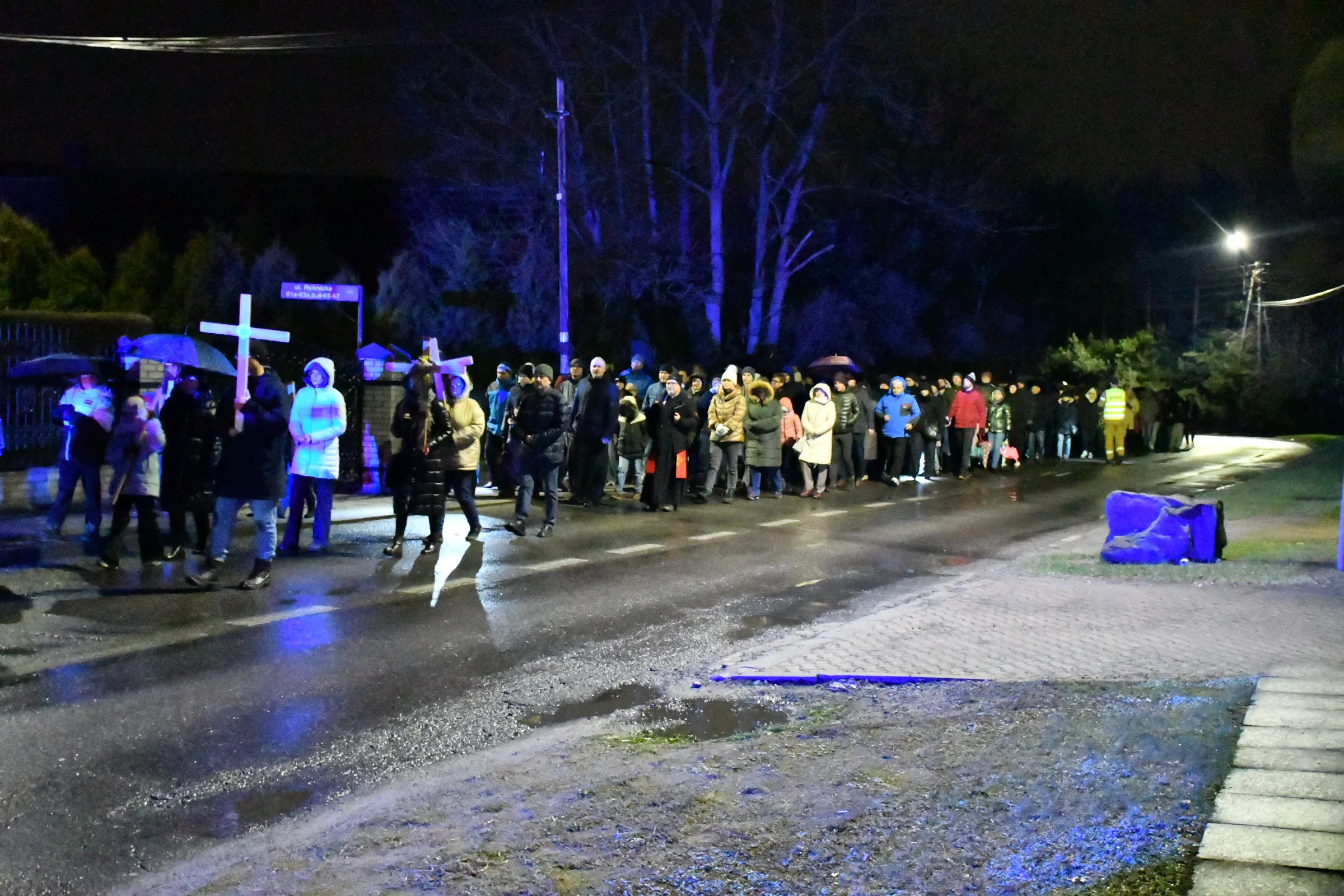 Wzdłuż trasy przemarszu, przebiegającej przede wszystkim w ciągu głównej części ul. Rybnickiej – jak zawsze – niosły się echa modlitwy i odczytywanych przez wiernych rozważań. Ich słowa, wypowiadane w skupieniu i ciszy wieczoru, tworzyły dającą się łatwo odczuć atmosferę wspólnoty i zadumy, zaś stała obecność krzyży, a także blask świec niesionych przez wiernych, nadały całości jeszcze bardziej refleksyjny wymiar.