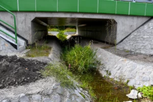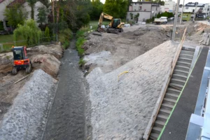 1. Przy nowym moście nad ciekiem „S” – Młynówka (obiekt M1) na początku miesiąca zamontowano barierki na murze oporowym oraz balustrady przy schodach monolitycznych po obu stronach. W kolejnych tygodniach finalizowano prace przy umacnianiu koryta po stronie zachodniej, a pod koniec miesiąca zakończono ciągnące się od dłuższego czasu działania związane z naprawą dylatacji kapy chodnikowej po stronie wschodniej.