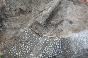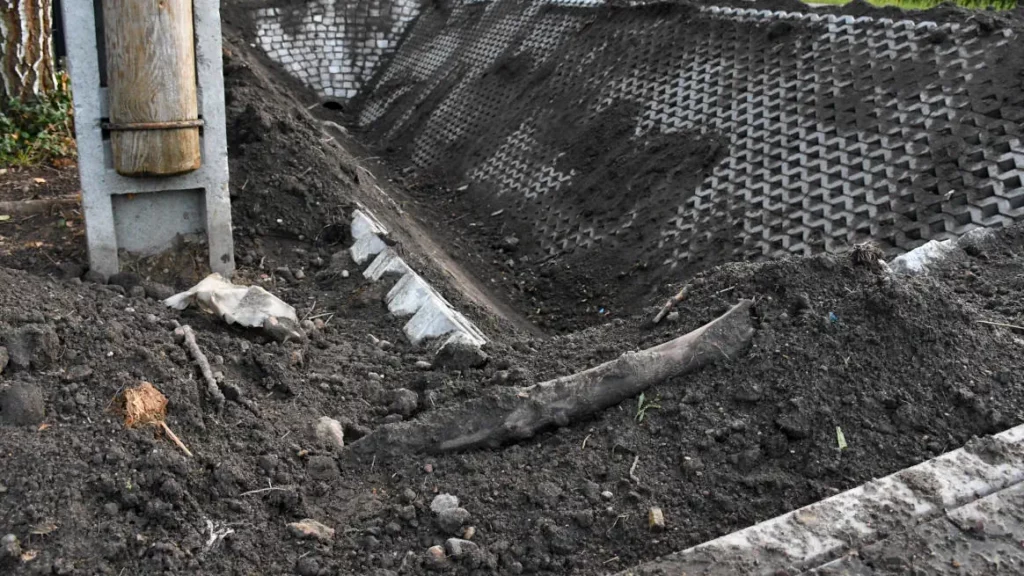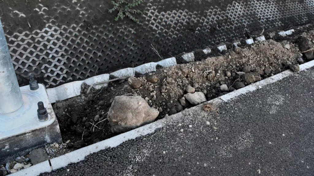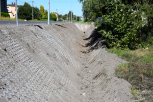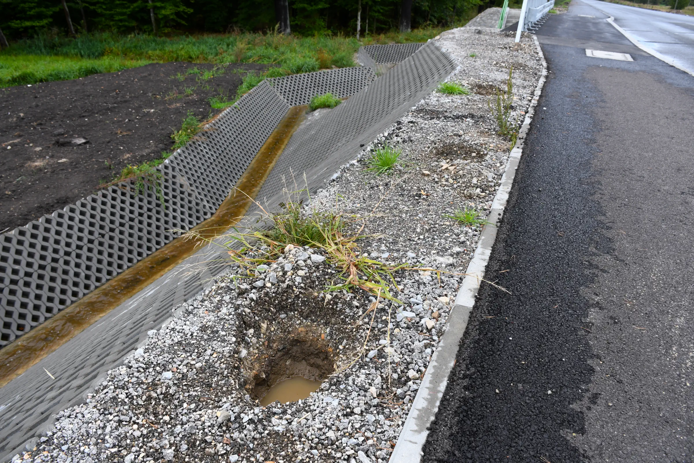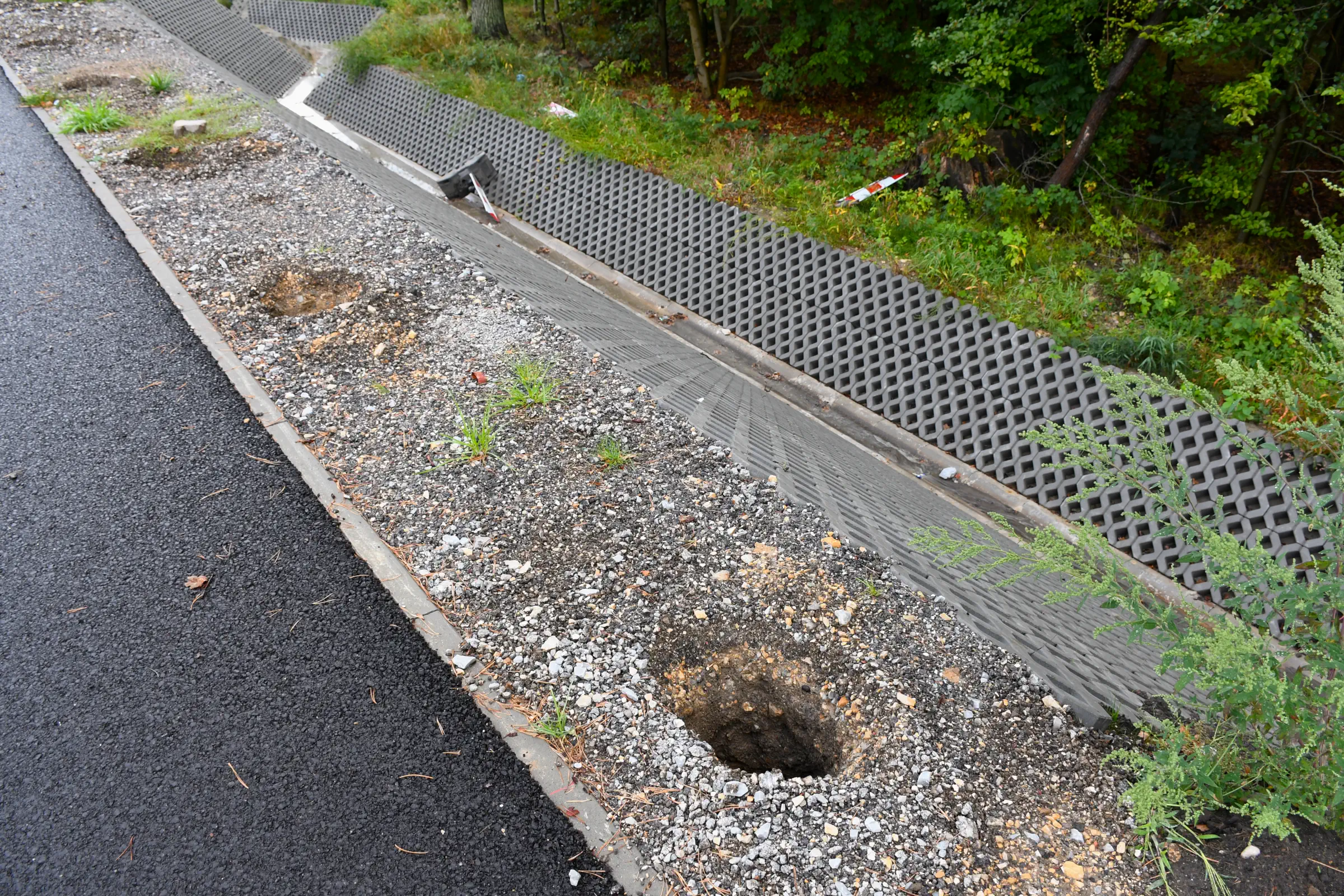 15. 17 września (środa) wykonawca rozpoczął zasypkę płyt ażurowych, którymi wcześniej na wybranych odcinkach wzmocnił koryta rowów melioracyjnych biegnących wzdłuż drogi. Na odcinku w okolicy zjazdu na ul. Łuczników, wbrew wcześniejszym zapowiedziom kierownika budowy, który zapewnił, że pobocza obsypane zostaną wcześniej odpowiednio przesianą ziemią, dokonał tego z użyciem mocno zanieczyszczonego materiału, którym zatkał istniejące przepusty. Zwieziona do Gostyni ziemia, oprócz zdrewniałych elementów pochodzenia roślinnego, zawierała także różnego typu odpady budowlane i bytowe – m.in. fragmenty cegieł i całe cegły, betonowe odłamki, kamienie różnej wielkości, szklane butelki, jednorazowe woreczki, przewody oraz niewielkie pręty. Tego samego dnia mieszkańcy skierowali skargę na działania wykonawcy do Zarządu Dróg Wojewódzkich w Katowicach i zawiadomili o wszystkim Marszałka Województwa Śląskiego.