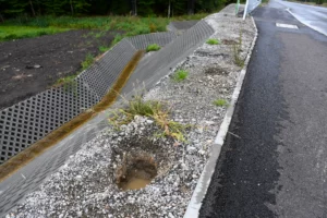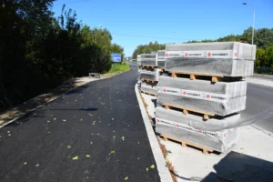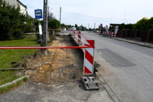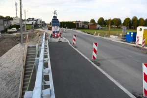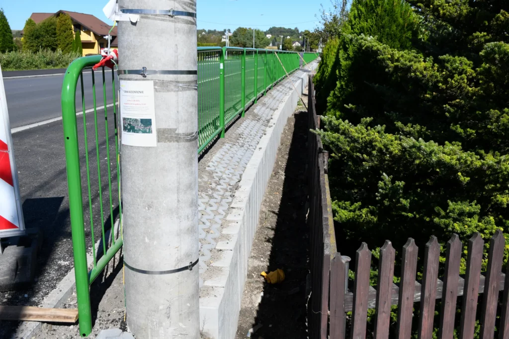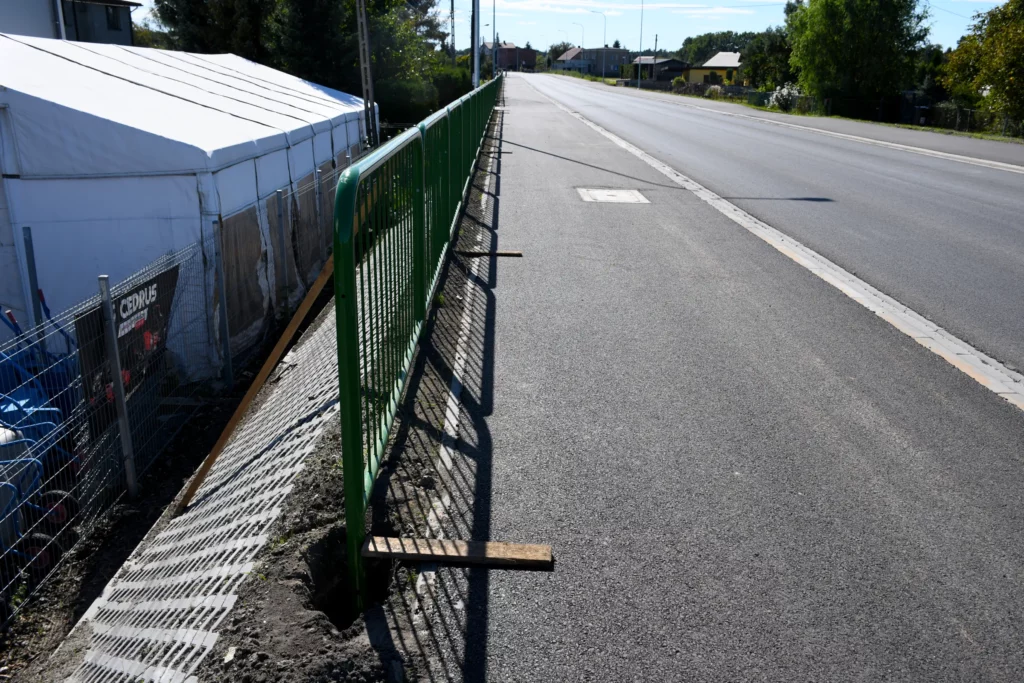 14. Na odcinku od przystanku „Gostyń Pszczyńska” do granicy z Wyrami zamontowano barierki drogowe po stronie zachodniej – wzdłuż zbudowanej w ubiegłym miesiącu palisady. Dokończono ponadto budowę zjazdów na drogi boczne (warstwa ścieralna).