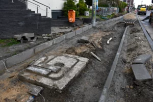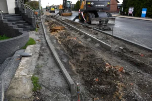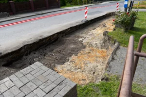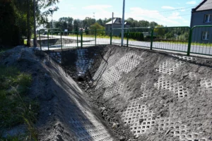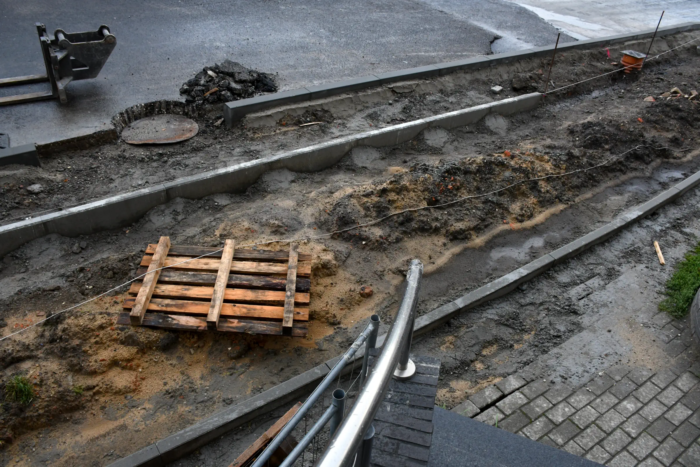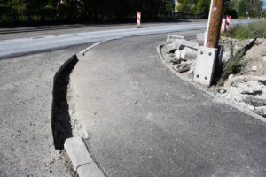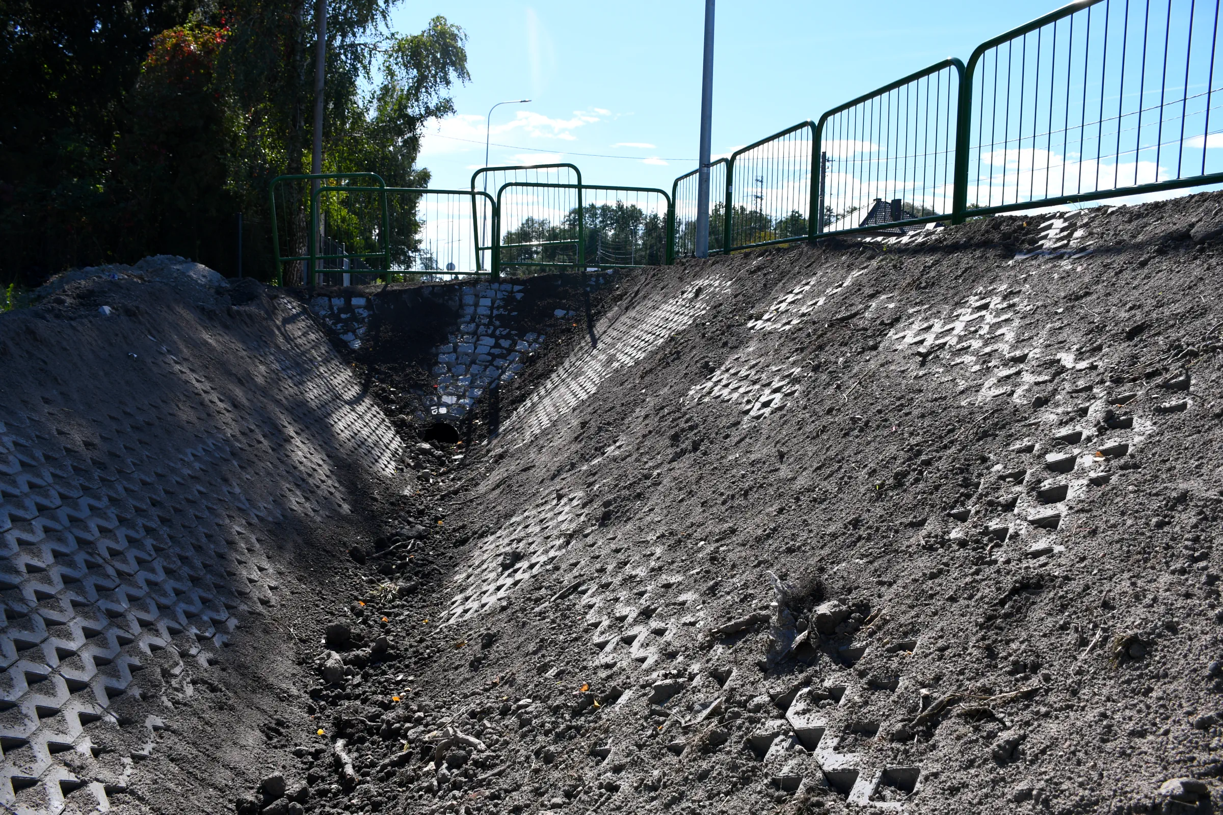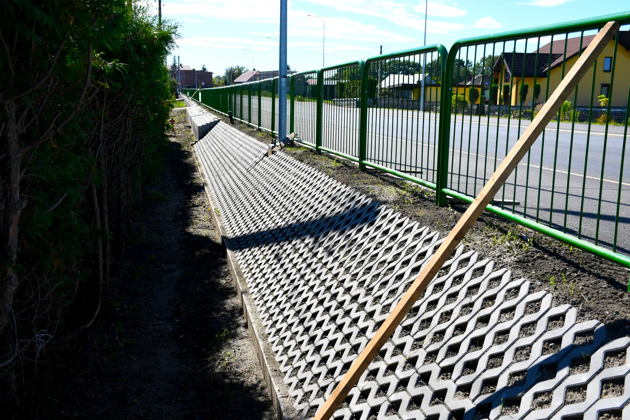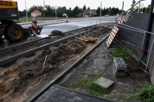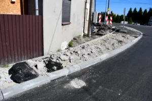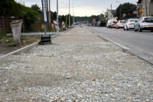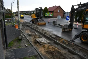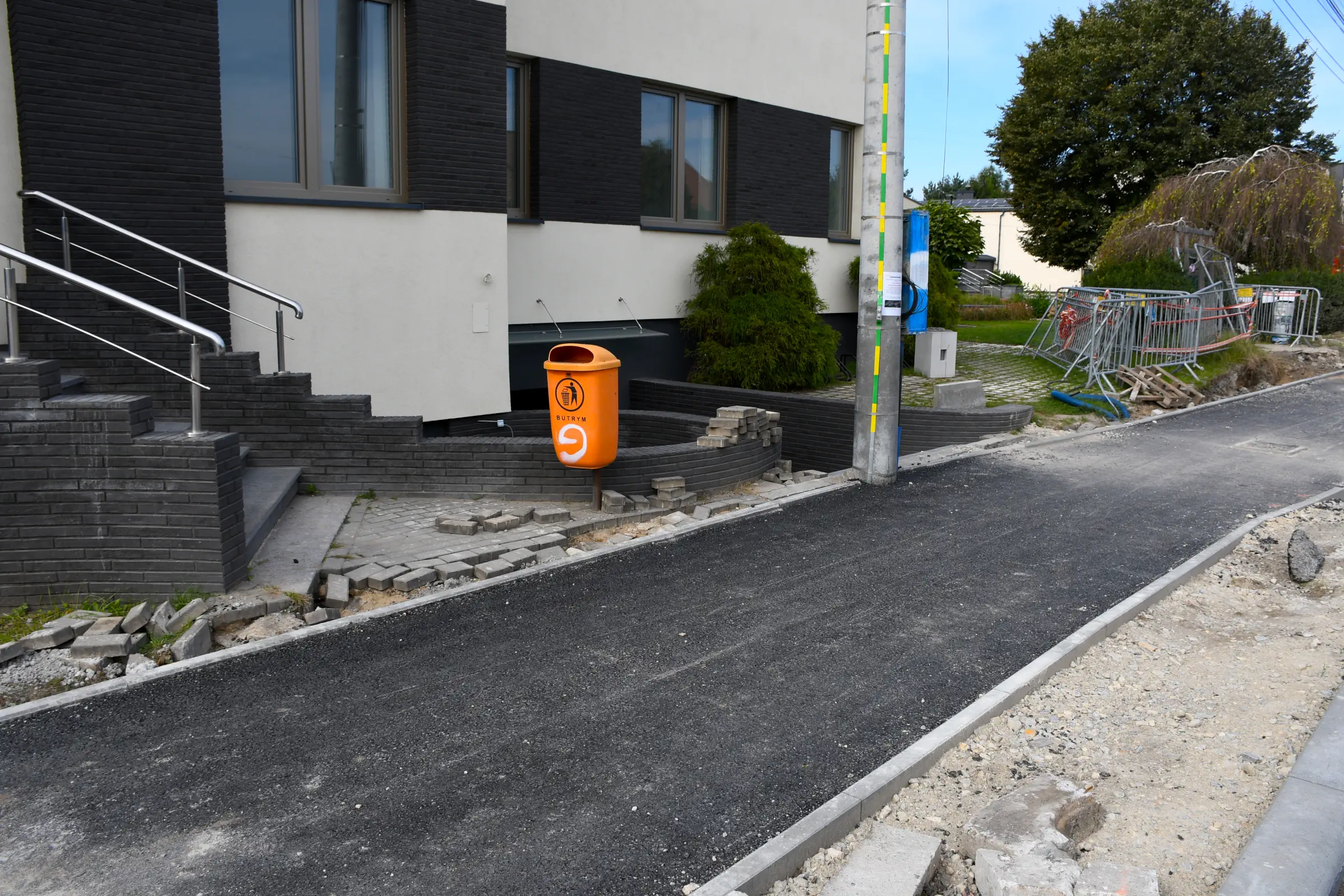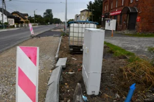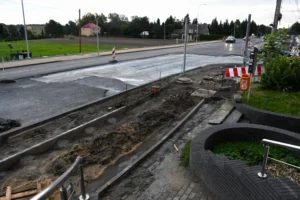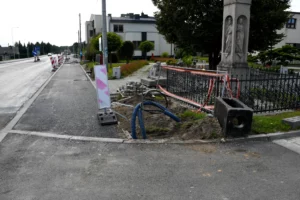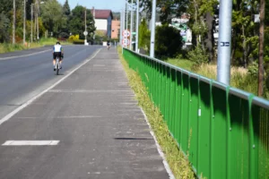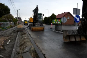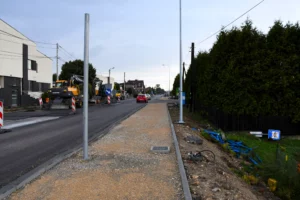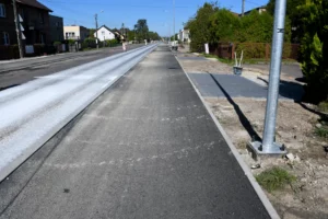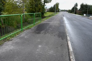 9. Na odcinku pomiędzy domem kultury a ul. Franciszka Fityki kontynuowano budowę ciągów pieszo-rowerowych – wykonano warstwę wiążącą. Prowadzono ponadto przygotowania do wykonania na tym odcinku warstwy ścieralnej.