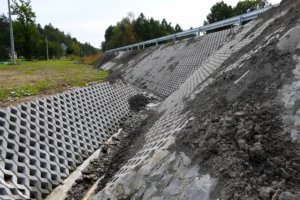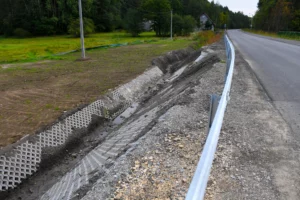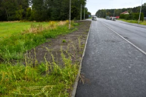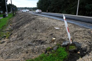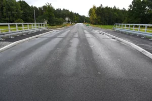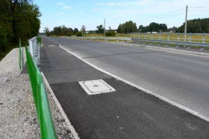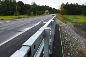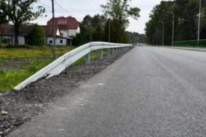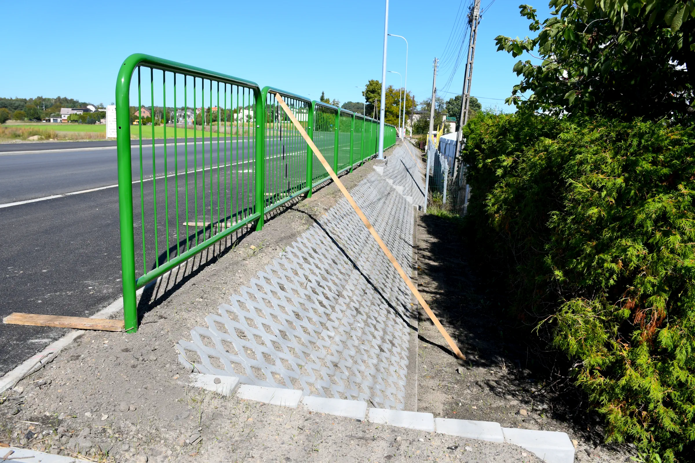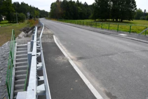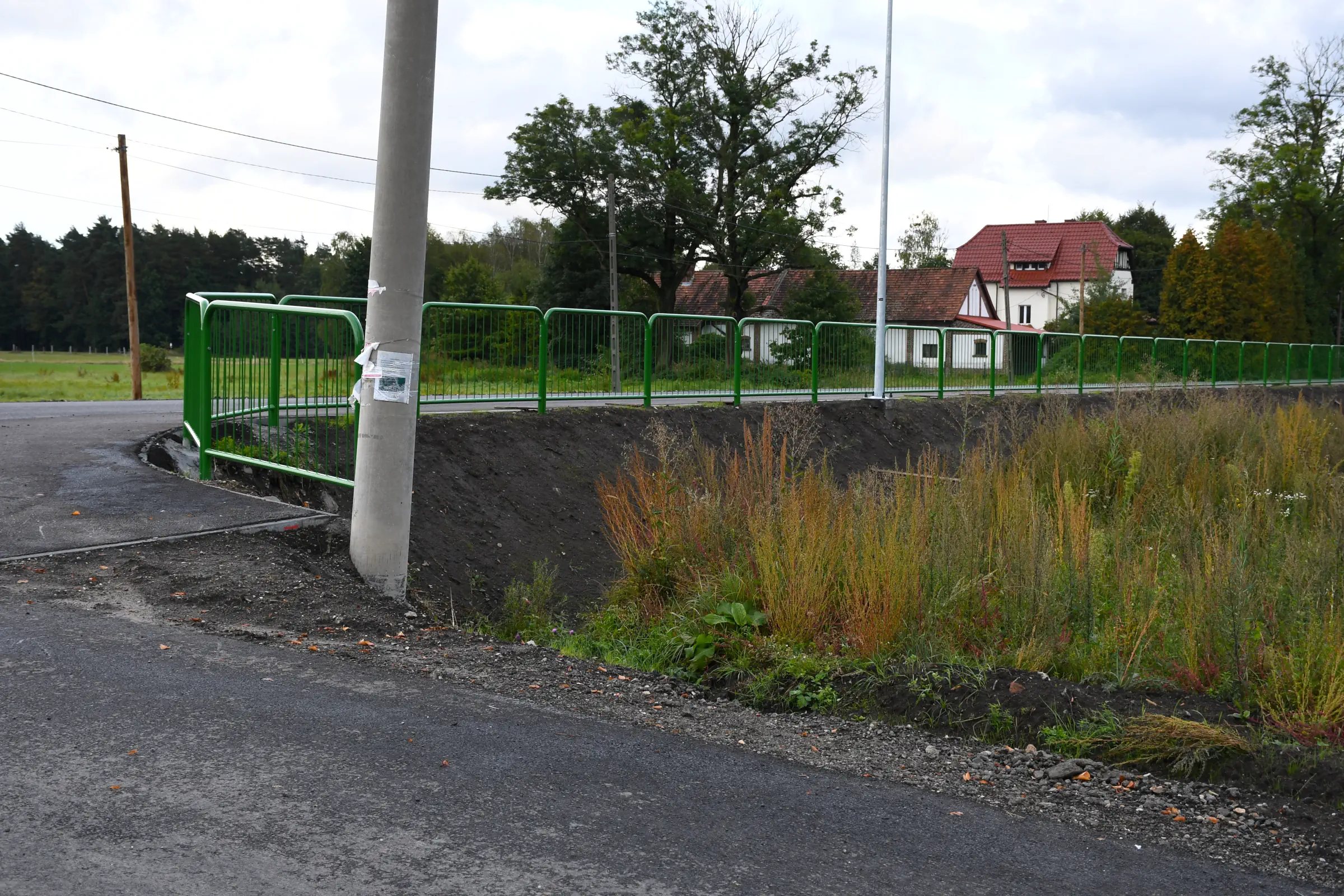 12. Na odcinku od granicy z lasem Jastrzębiec do okolic przystanku „Gostyń Pszczyńska” zamontowano barierki drogowe po stronie wschodniej – tj. od strony lasu i rowu melioracyjnego – i dokończono budowę zjazdów na drogi boczne (warstwa ścieralna).