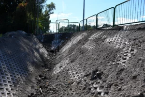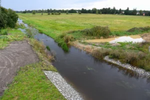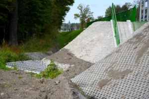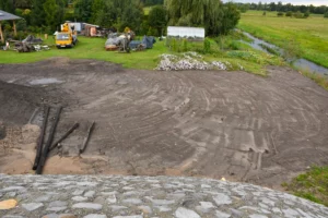 2. W obrębie mostu nad rzeką Gostynką (obiekt M2) nadal kontynuowano prace porządkowe związane z rozbiórką nasypu drogi objazdowej i rekultywacją terenu.