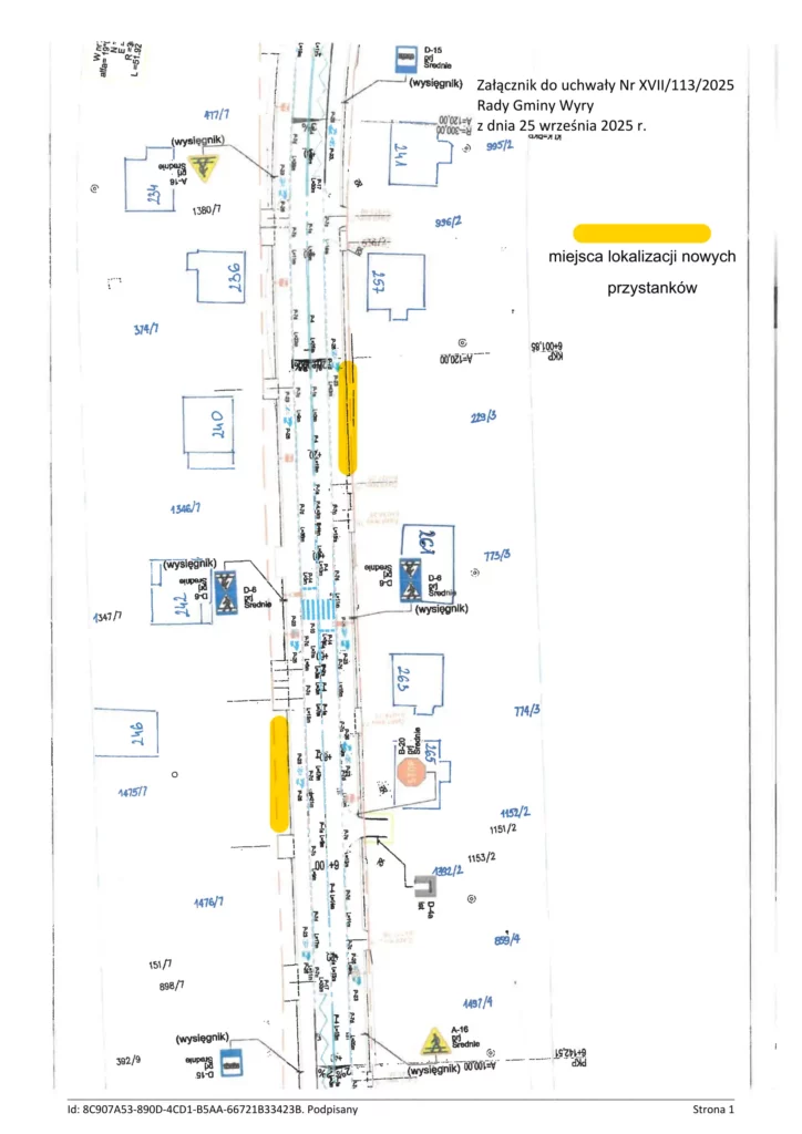 Rada podjęła ponadto uchwałę w sprawie wskazania wstępnych miejsc lokalizacji nowych przystanków komunikacyjnych przy drodze wojewódzkiej nr 928 w gminie Wyry, wskazując na miejsca w obrębie nowego przejścia dla pieszych.