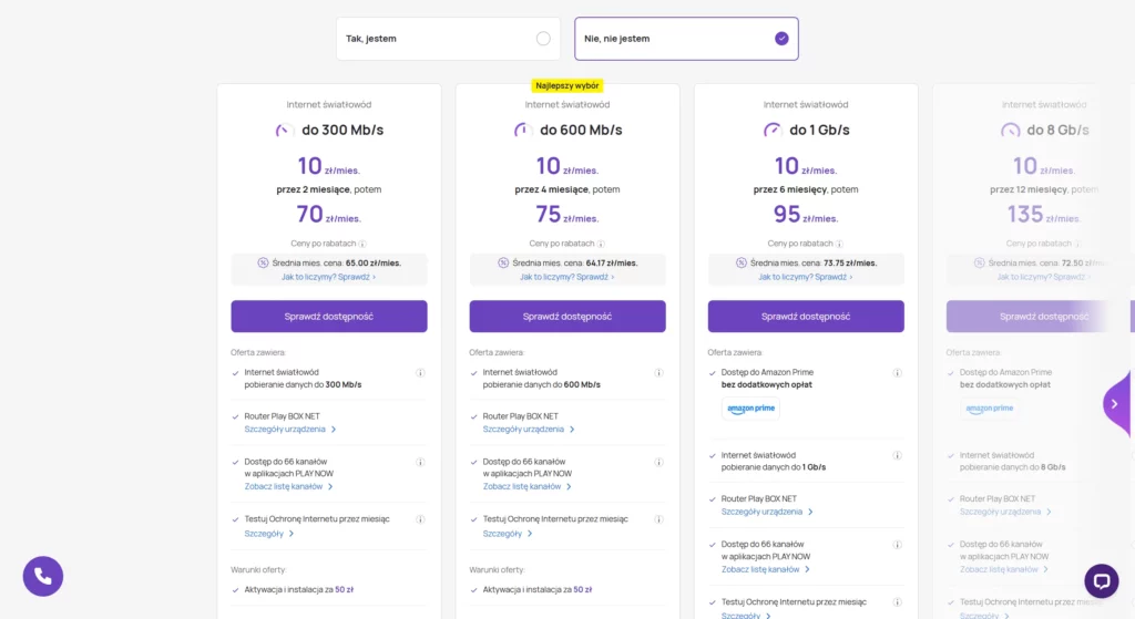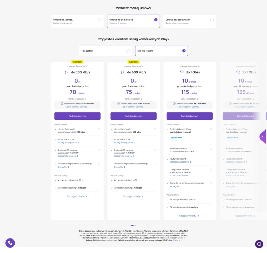 Dotychczasowi klienci multimetro tak jak na stronie Play mają do dyspozycji pakiety od 300 Mb/s do 5 Gb/s3, ale nie są pytani o inne usługi w Play4 i mogą liczyć na 3 miesiące bez opłat na start niezależnie od wybranego pakietu5.
