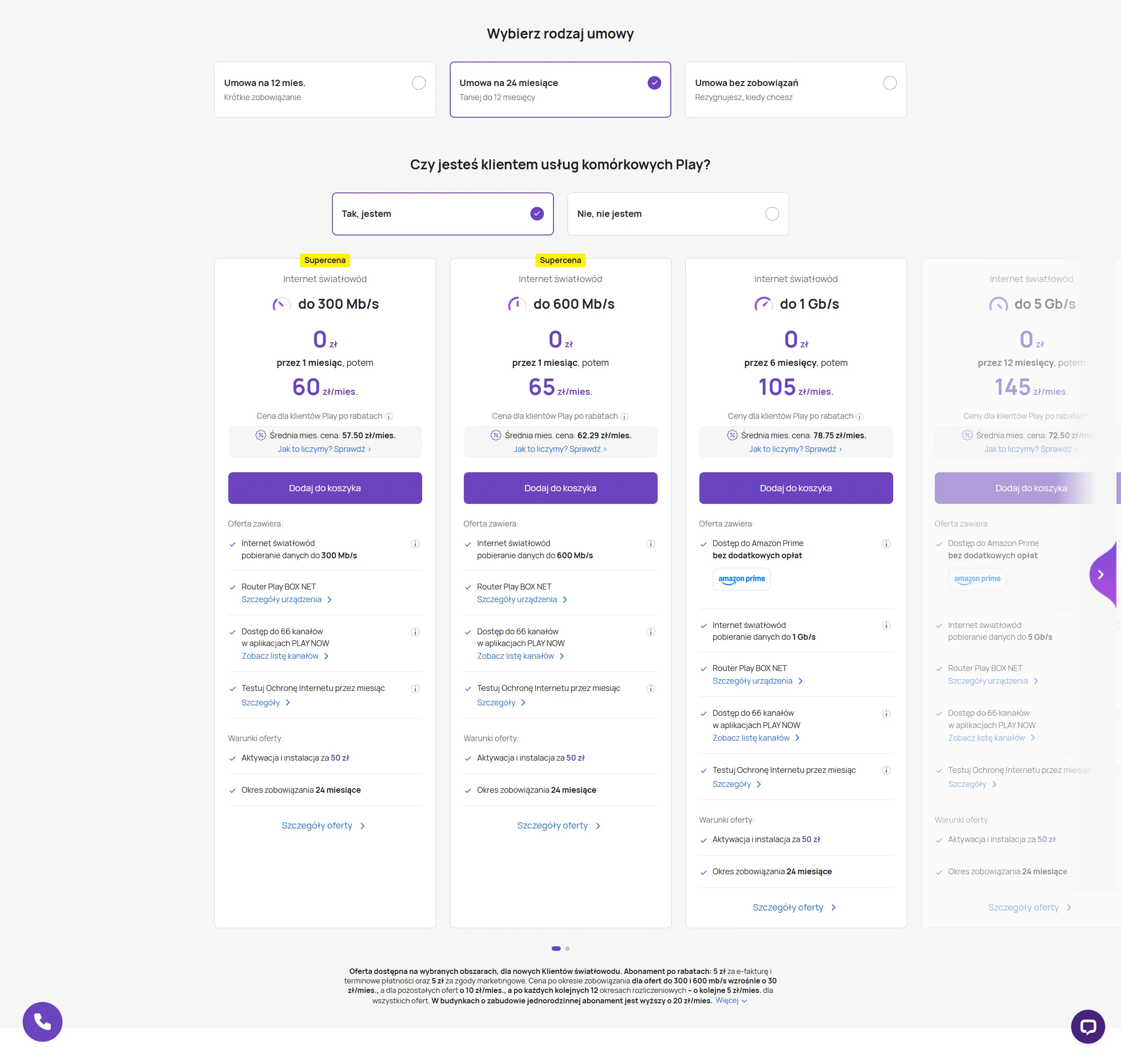 Dotychczasowi klienci multimetro tak jak na stronie Play mają do dyspozycji pakiety od 300 Mb/s do 5 Gb/s3, ale nie są pytani o inne usługi w Play4 i mogą liczyć na 3 miesiące bez opłat na start niezależnie od wybranego pakietu5.