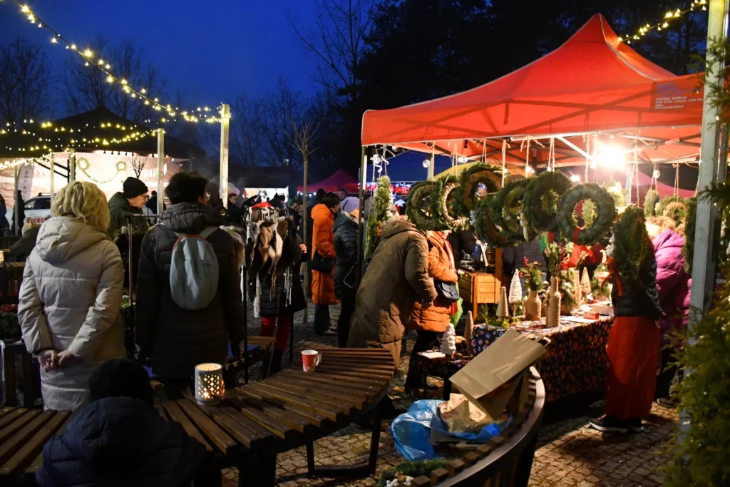 Na stoiskach rozstawionych wokół sceny plenerowej można było nabyć m.in. ozdoby choinkowe, stroiki świąteczne, ozdoby z makramy, biżuterię, świeczki z wosku pszczelego, czapki i szaliki, lampy pokojowe, ale też wędliny i wyroby z piernika, a w punktach gastronomicznych różne jarmarkowe specjały, w tym tradycyjny grzaniec.