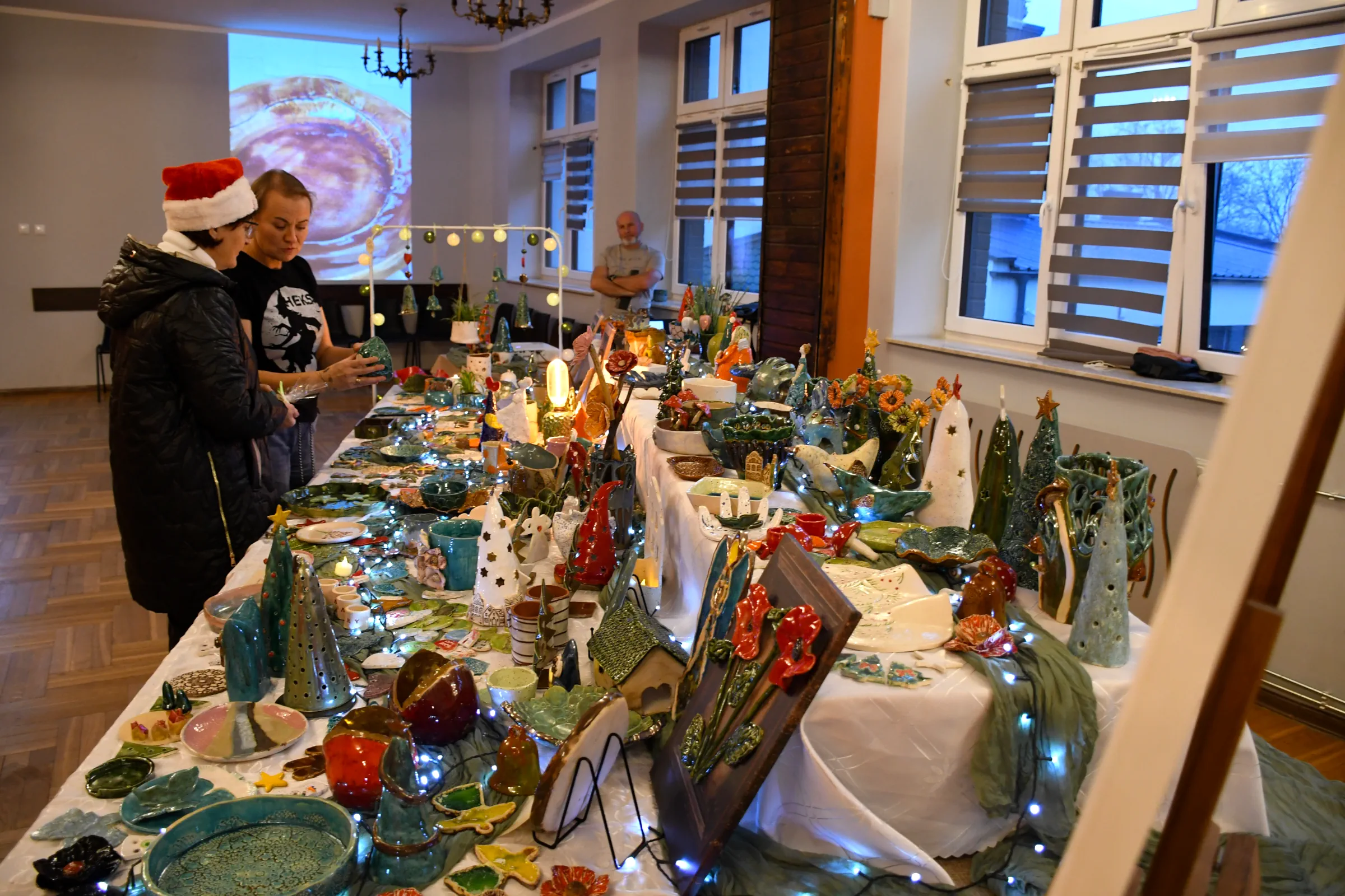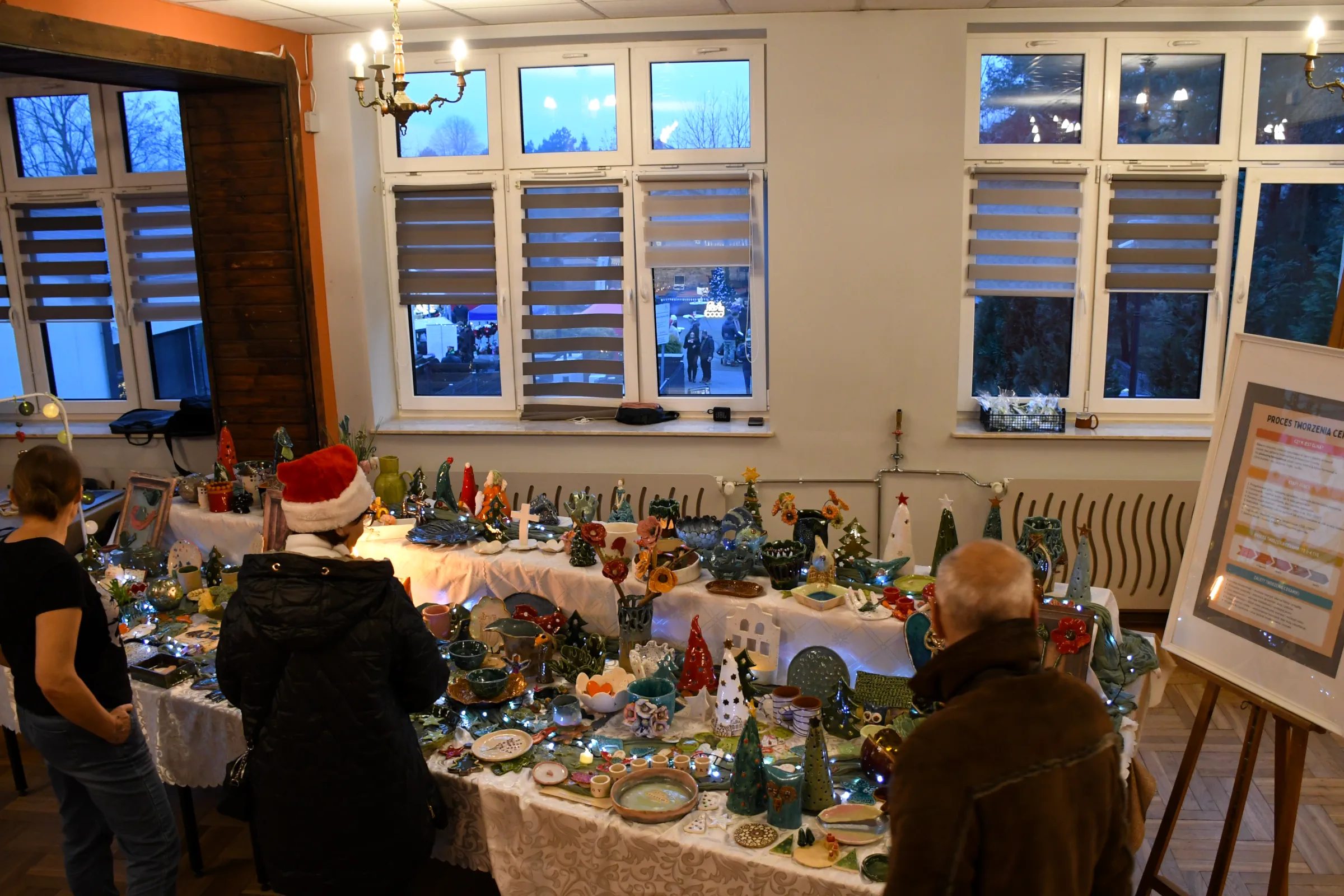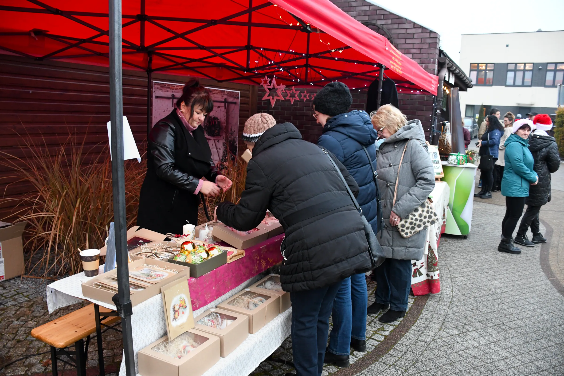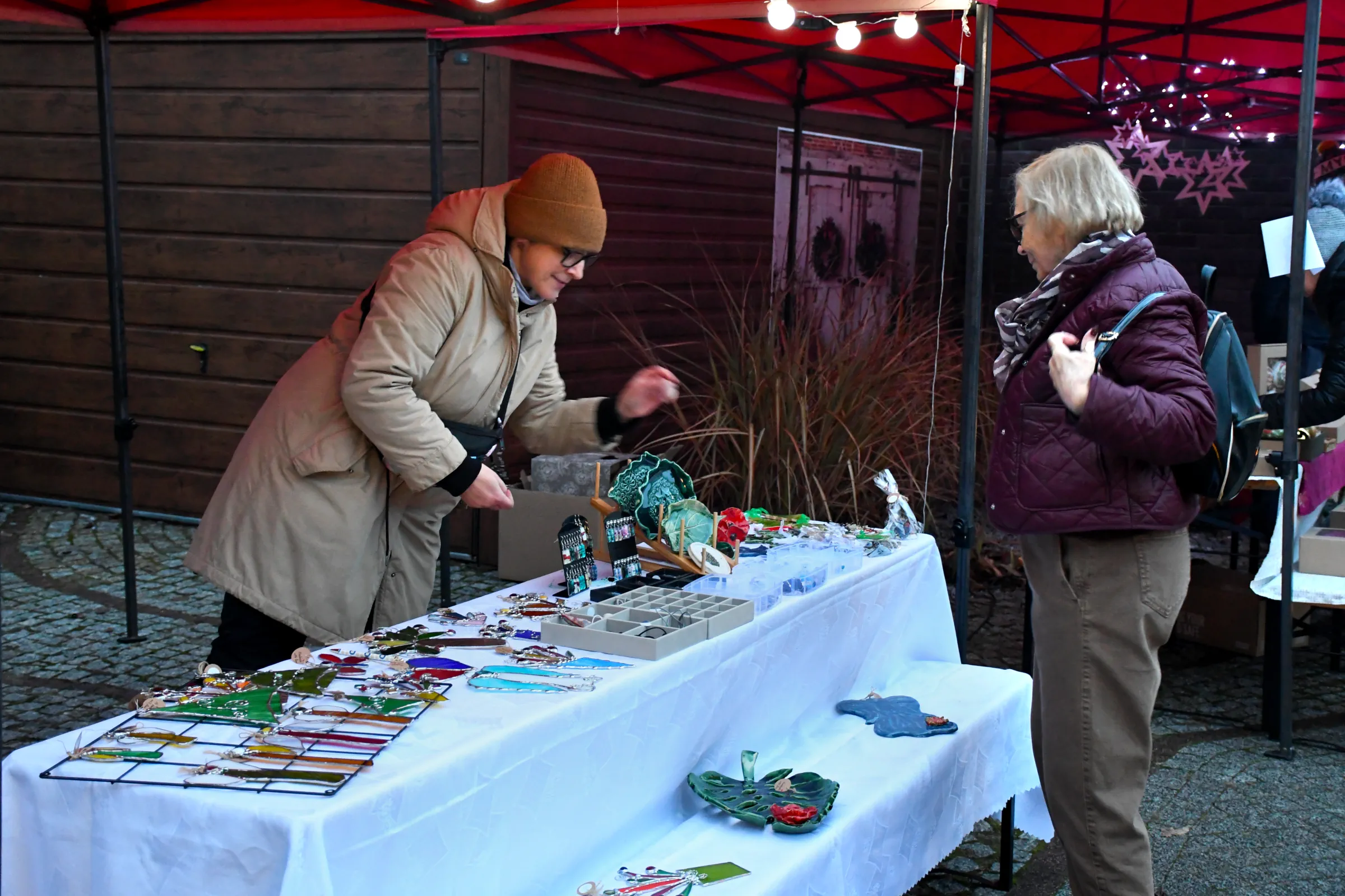 Na stoiskach rozstawionych wokół sceny plenerowej można było nabyć m.in. ozdoby choinkowe, stroiki świąteczne, ozdoby z makramy, biżuterię, świeczki z wosku pszczelego, czapki i szaliki, lampy pokojowe, ale też wędliny i wyroby z piernika, a w punktach gastronomicznych różne jarmarkowe specjały, w tym tradycyjny grzaniec.