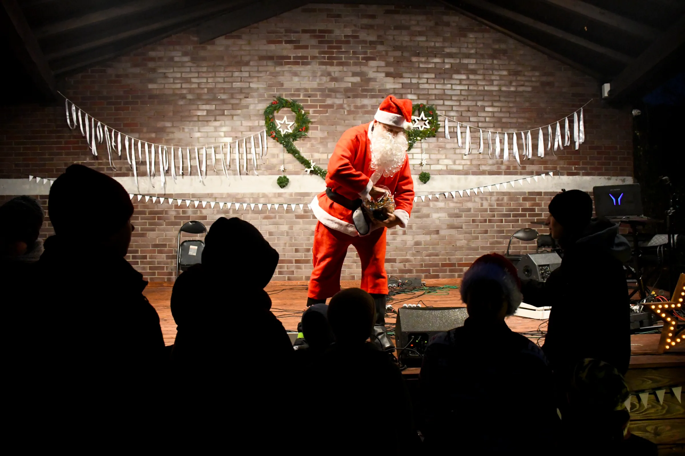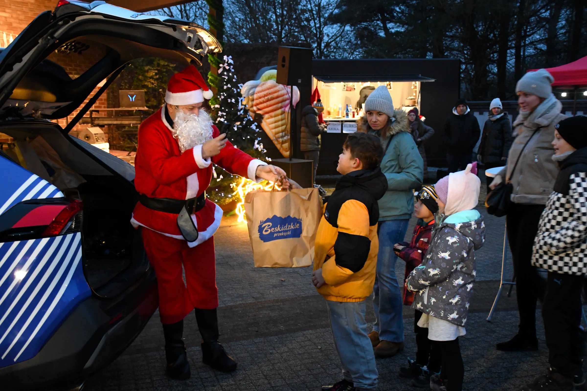 Wiele uśmiechów przyniosła również wizyta Radiowego Mikołaja z Radia Express 92,3 FM – Sławka „Rybki” Rybczyńskiego, który przyjechał do Zagrody Śląskiej z wielkim workiem pełnym upominków nie tylko dla najmłodszych. Wśród prezentów znalazły się zarówno słodkości, jak i gadżety mające przypominać o bezpieczeństwie pieszych – opaski odblaskowe, w które stacja wyposaża mieszkańców w ramach akcji „Świeć przykładem”, zachęcając do noszenia elementów odblaskowych i poprawy widoczności na drodze.