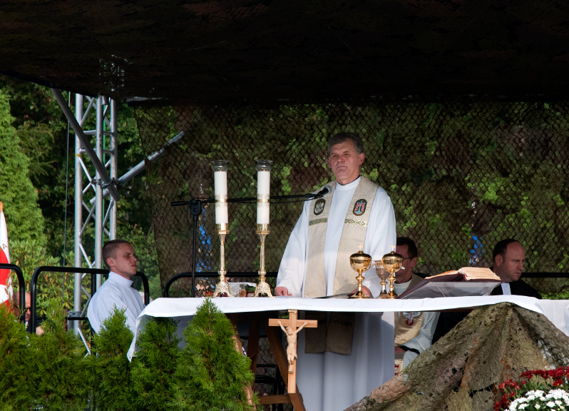 Po oficjalnym powitaniu gości, rozpoczęła się uroczysta msza polowa celebrowana przez ks. prob. Jana Podsiadło z parafii pw. św. Apostołów Piotra i Pawła w Gostyni, podczas której homilię nawiązującą do genezy II wojny światowej wygłosił ks. płk. Mirosław Sułek. W ramach kazania kilka słów do zebranych skierował również ks. Kornel Undas z parafii Ewangelicko-Augsburska w Mikołowie. Mszę świętą koncelebrowali też pozostali proboszczowie gminnych parafii: ks. Rafał Październiok z parafii pw. Podwyższenia Krzyża Św. w Gostyni, ks. Aleksander Wojtala z parafii pw. Najświętszego Serca Pana Jezusa w Wyrach oraz emerytowany proboszcz ks. Jerzy Hojka, rezydujący w parafii Miłosierdzia Bożego w Orzeszu-Zazdrości.
