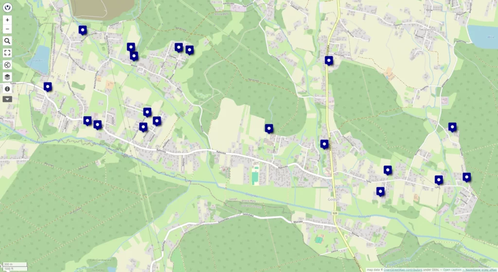 Z tego samego rejestru wynika, że w Gostyni było 1377 domów jednorodzinnych i 2 domy wielorodzinne, a w Wyrach 1148 domów jednorodzinnych i 13 domów wielorodzinnych.